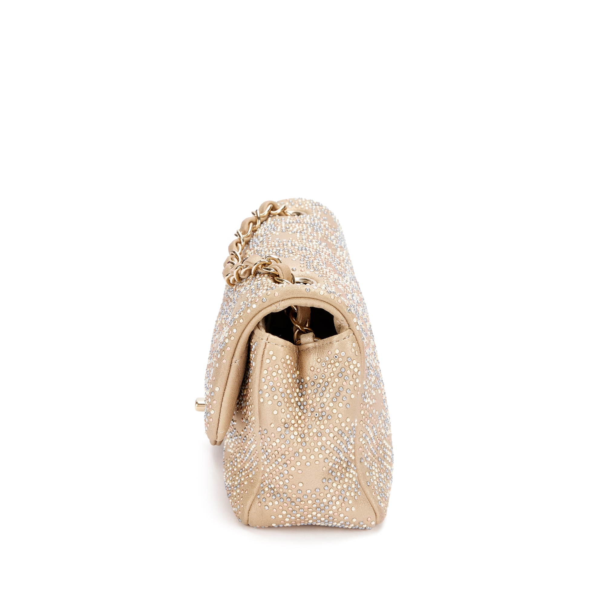 Chanel Gold, Pink and Blue Beads and Calfskin Flap Bag Gold Hardware, 2012-13The interior is lined with Gold textile materialIncludes dust bagThis item is final sale and not eligible for return