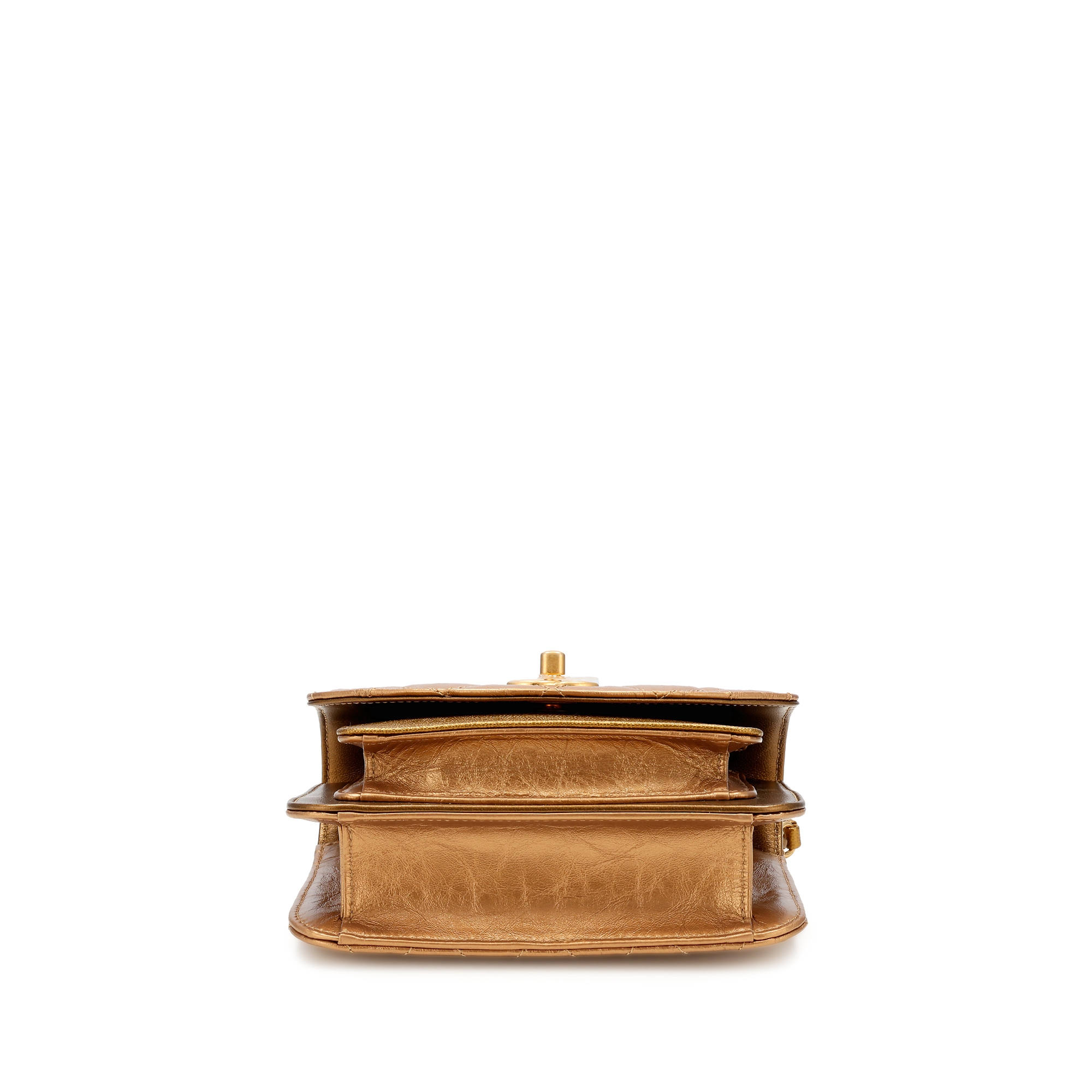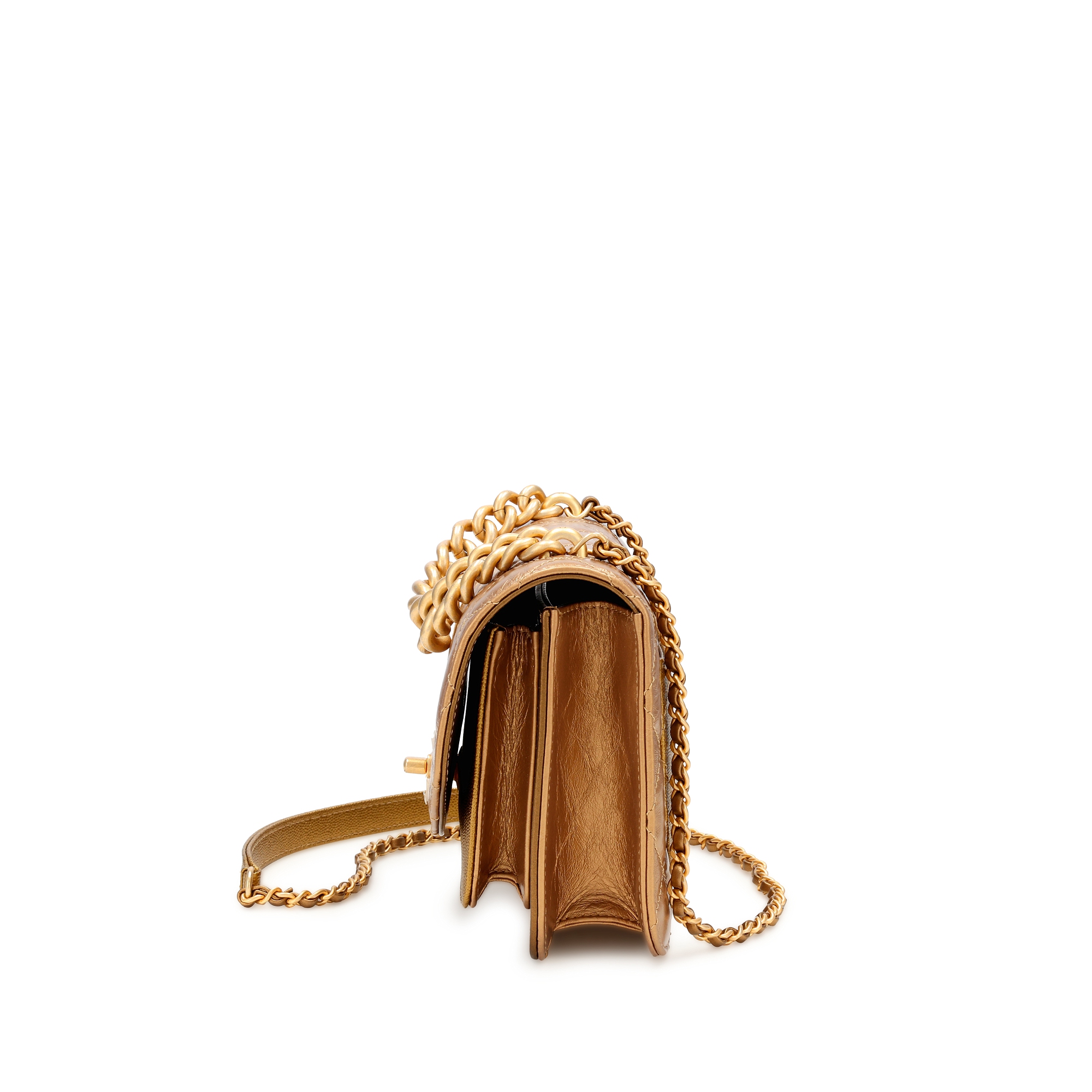 Chanel Gold Quilted Calfskin and Caviar Mini Chain Handle Flap Gold Hardware, 2019The interior is lined in a black textile materialThis piece was featured during the 2019 Autumn/Winter Ready-To-Wear collectionIncludes tag, authenticity card, care booklet, ribbon, felt, dustbag and boxThis item is final sale and not eligible for return