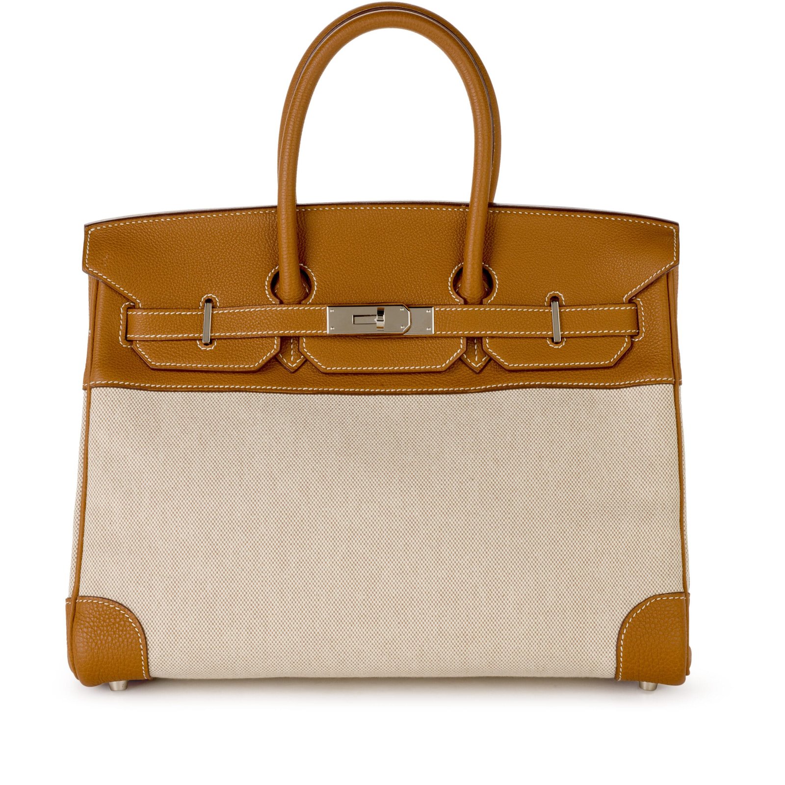 Hermès Gold Togo and Ecru Toile Birkin 35 Palladium Hardware, 2006The interior is lined in vermillion chèvre leatherIncludes dust bagThis item is final sale and not eligible for return
