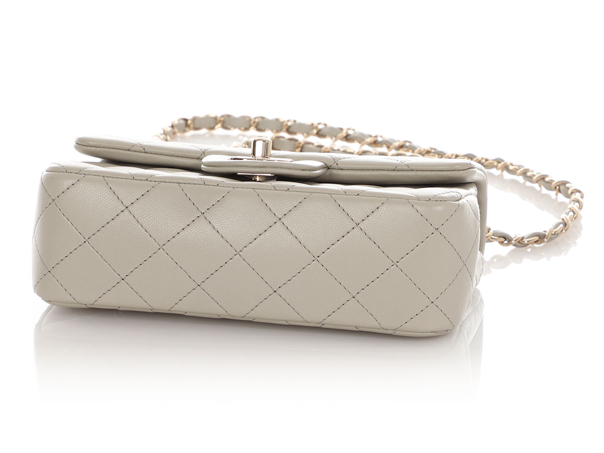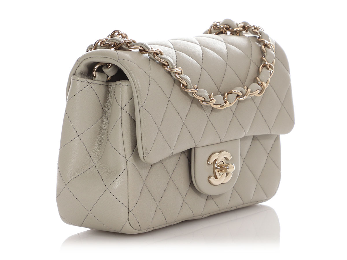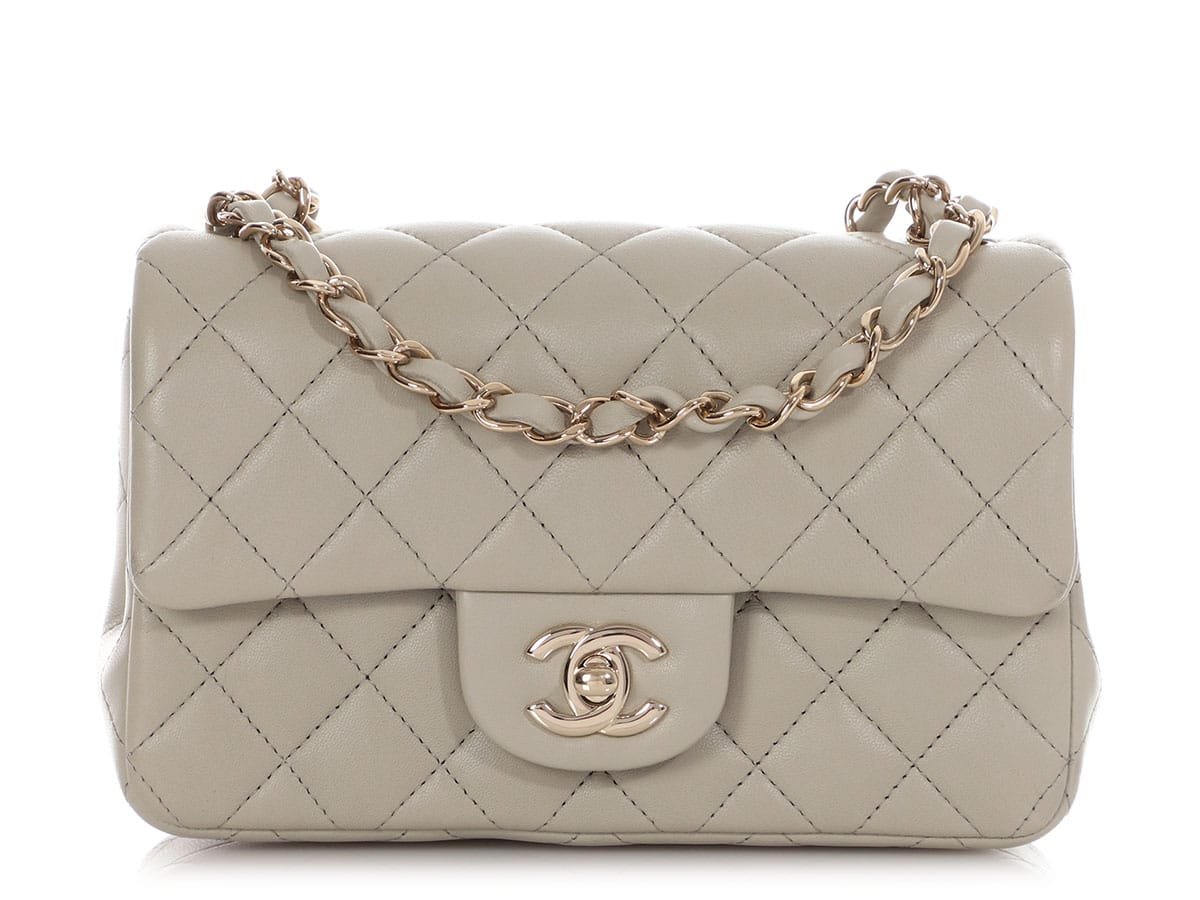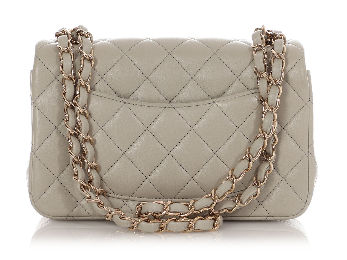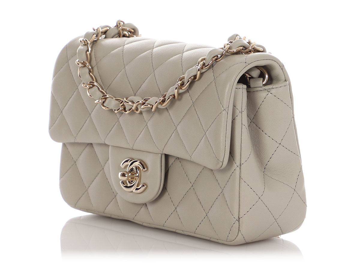 Gray Quilted Lambskin Mini Rectangular Classic Flap Bag Pale Gold Hardware, 2022