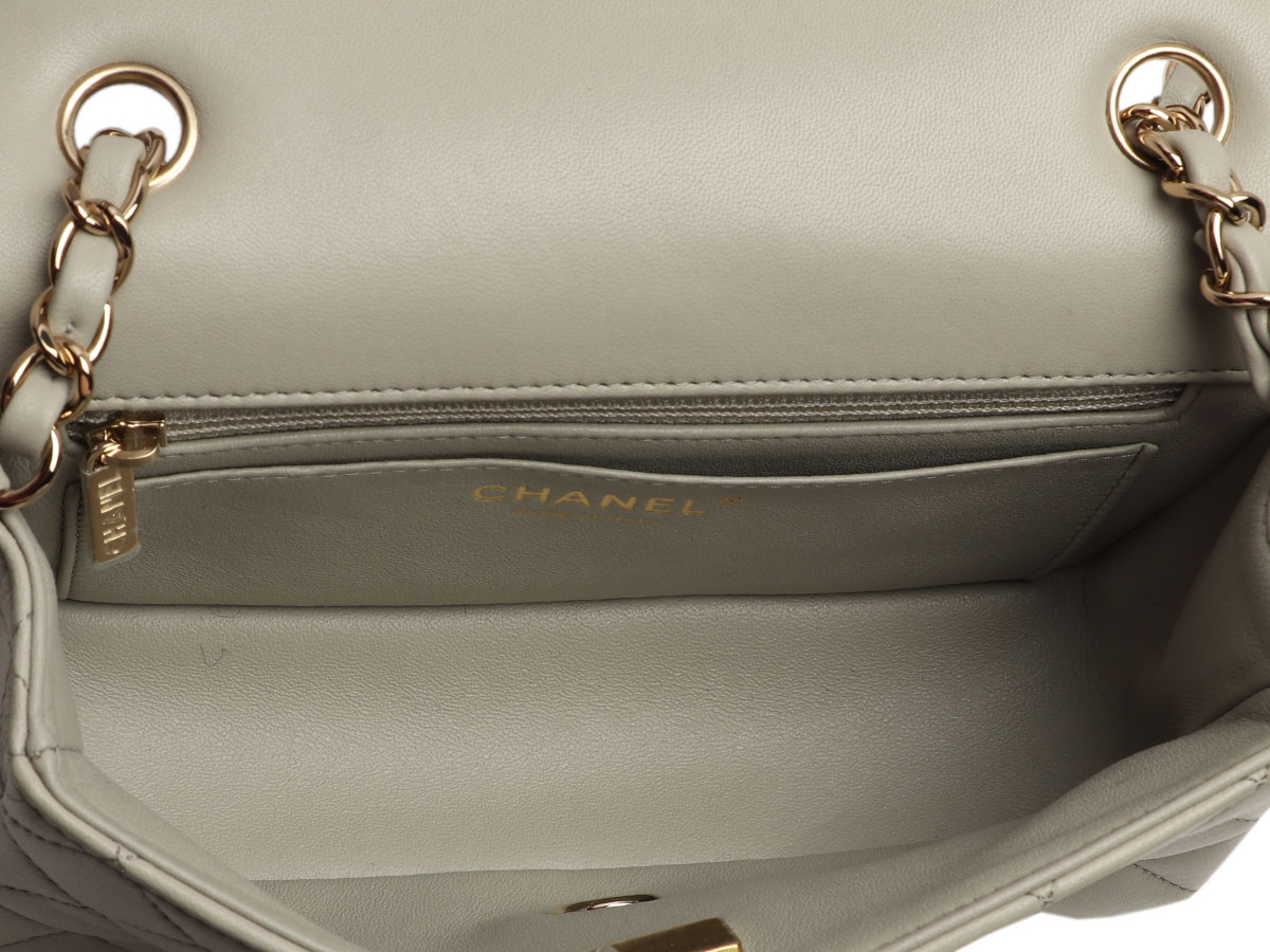 Chanel Gray Quilted Lambskin Mini Rectangular Classic Flap Bag Pale Gold Hardware, 2022The interior is lined in a tonal leatherIncludes dust bag and boxThis item is final sale and not eligible for return