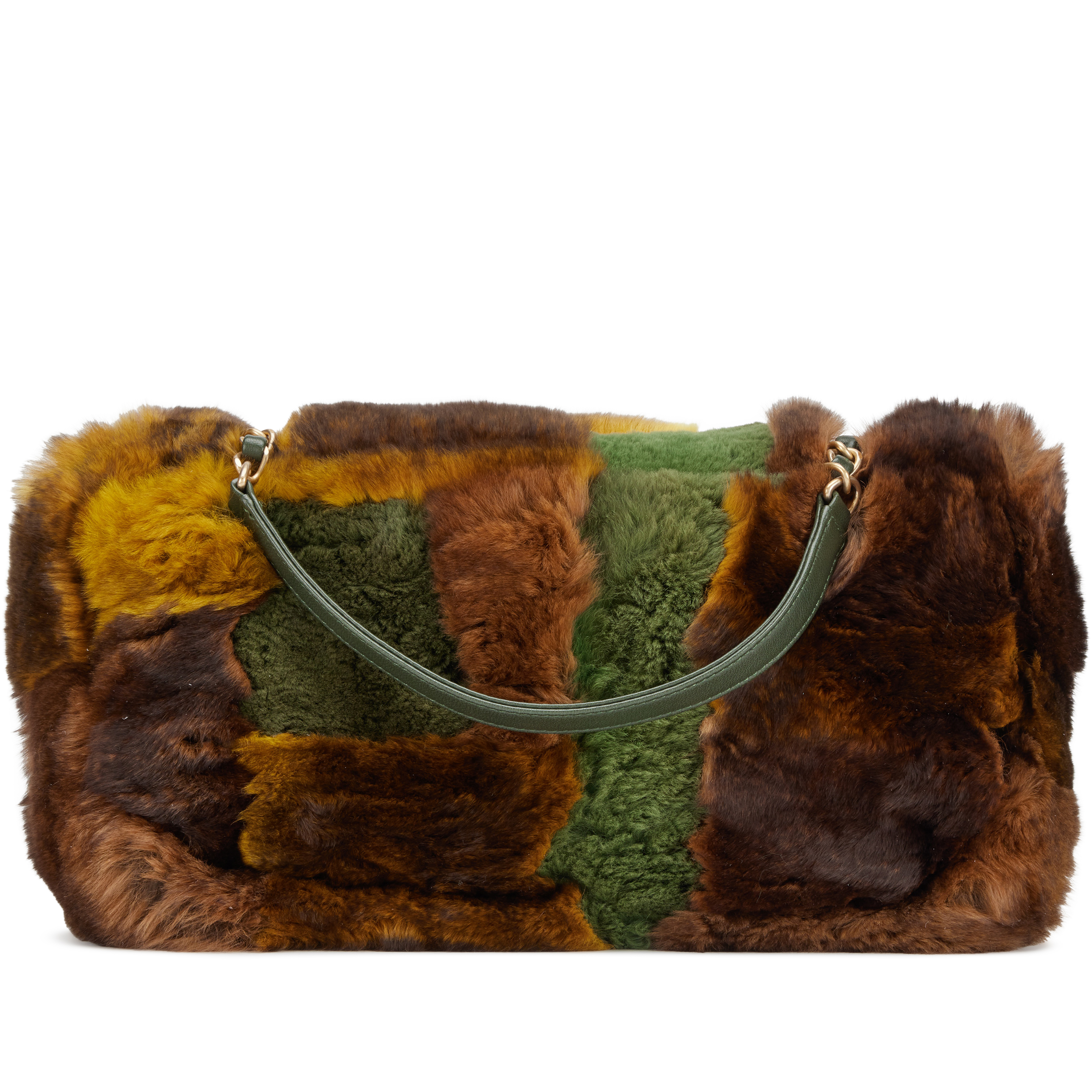 Green, Brown and Golden Yellow Patchwork Orylag Medium Flap Bag Aged Gold Hardware, 2018