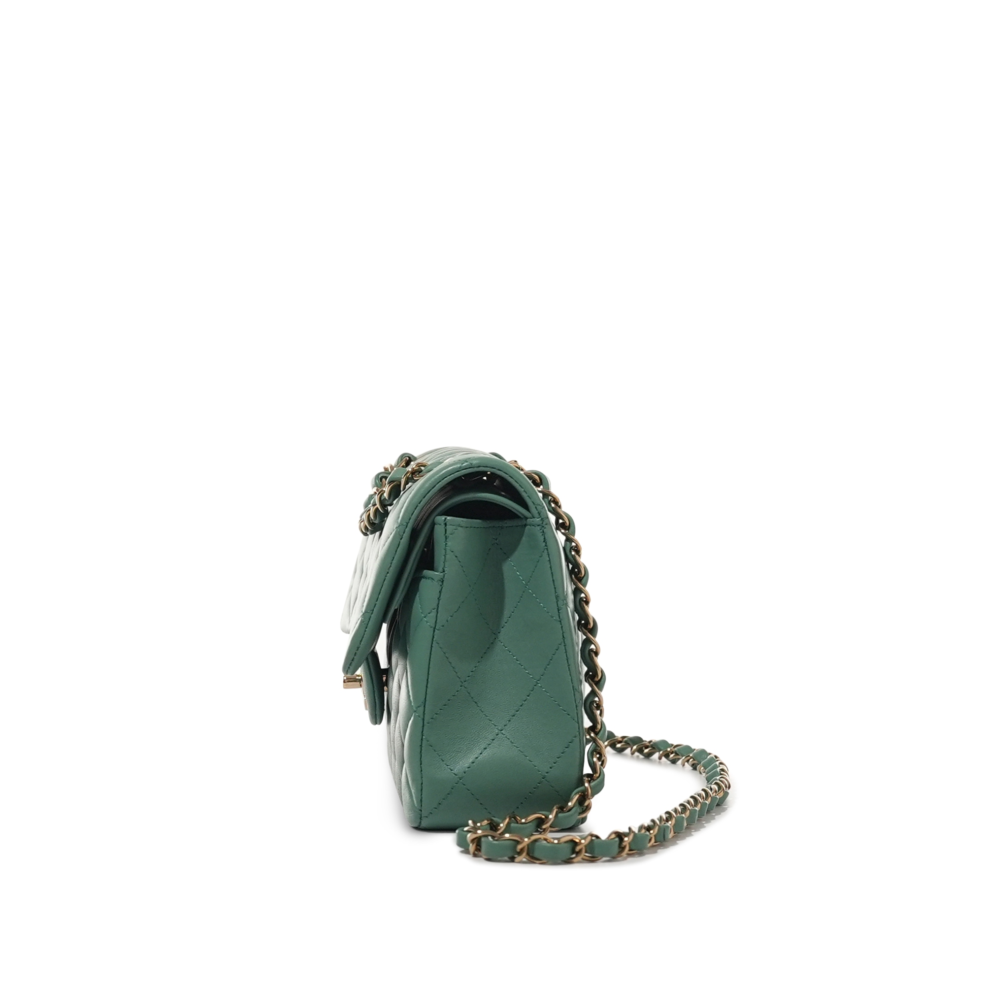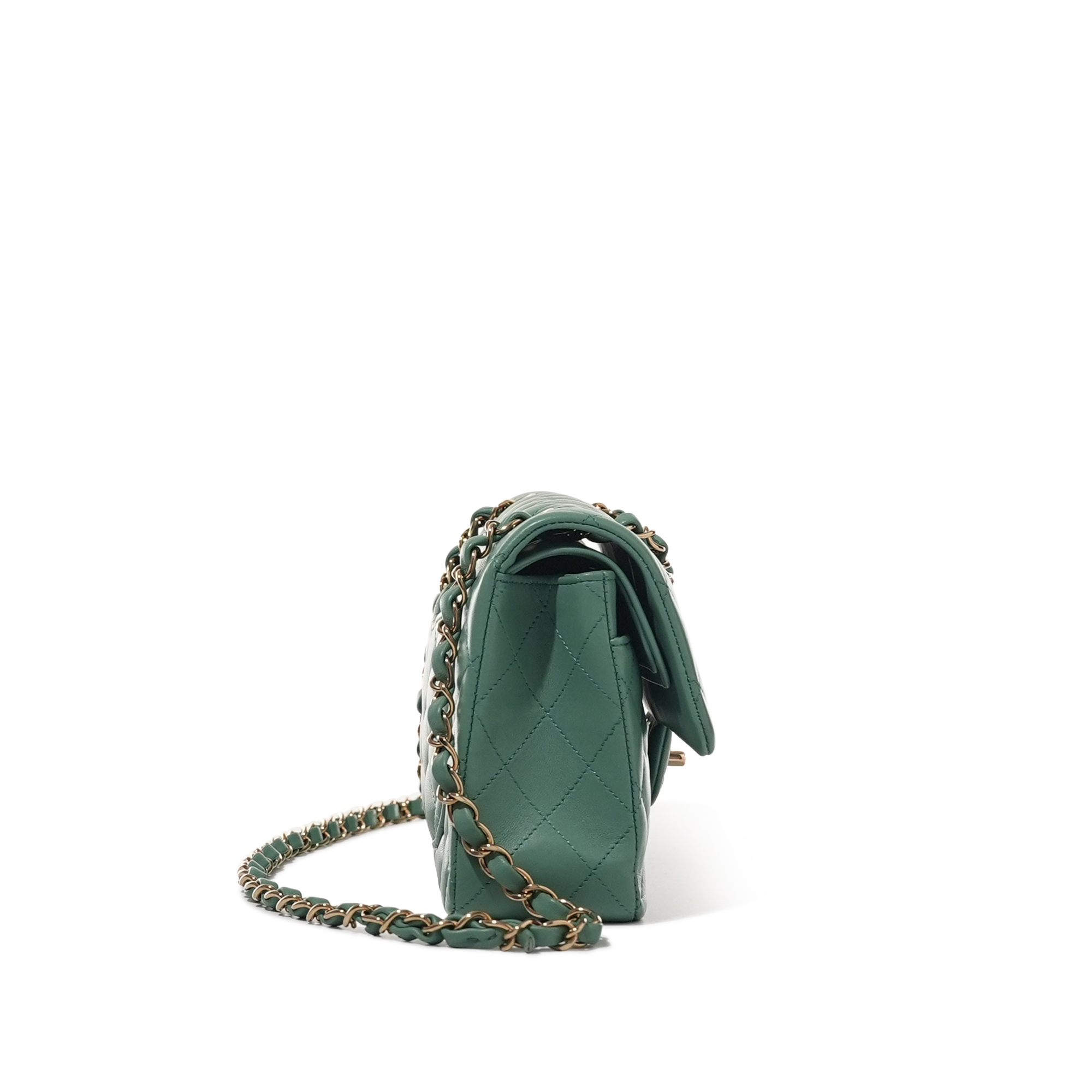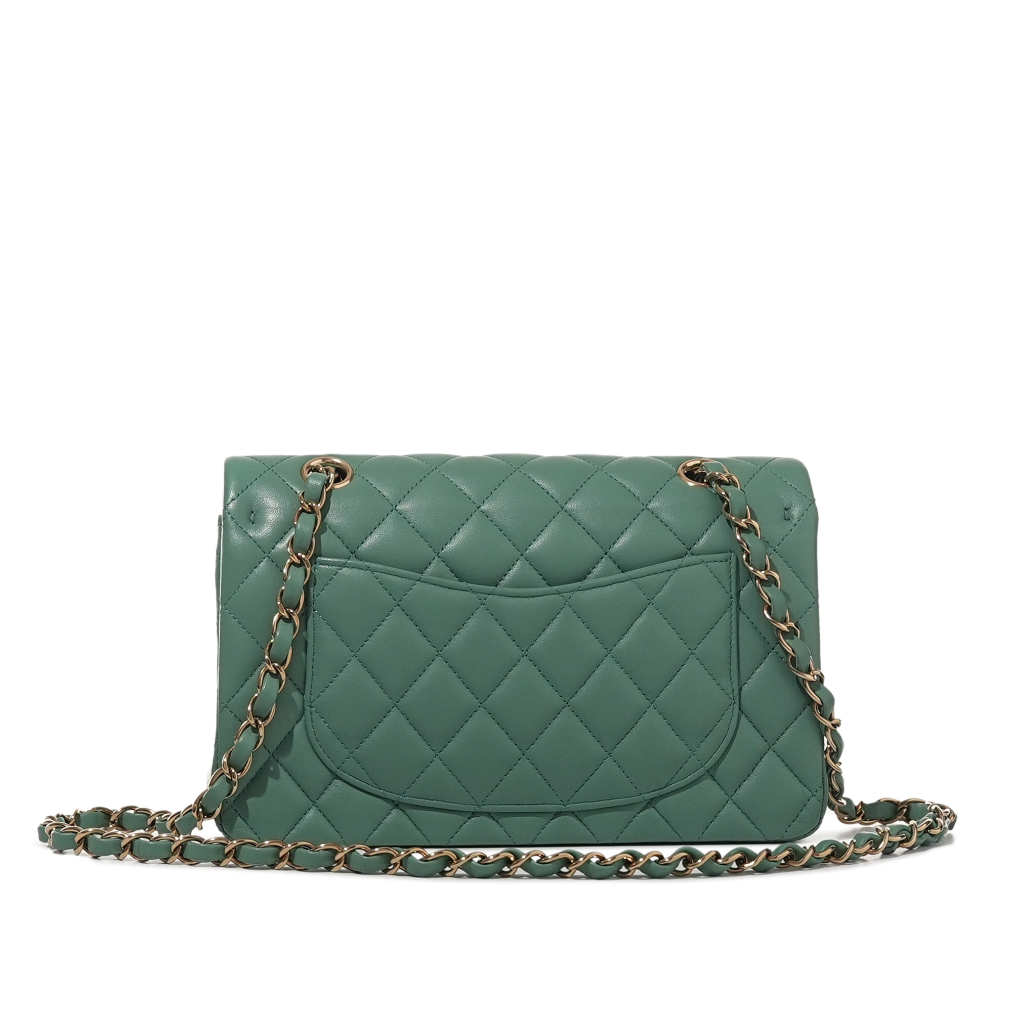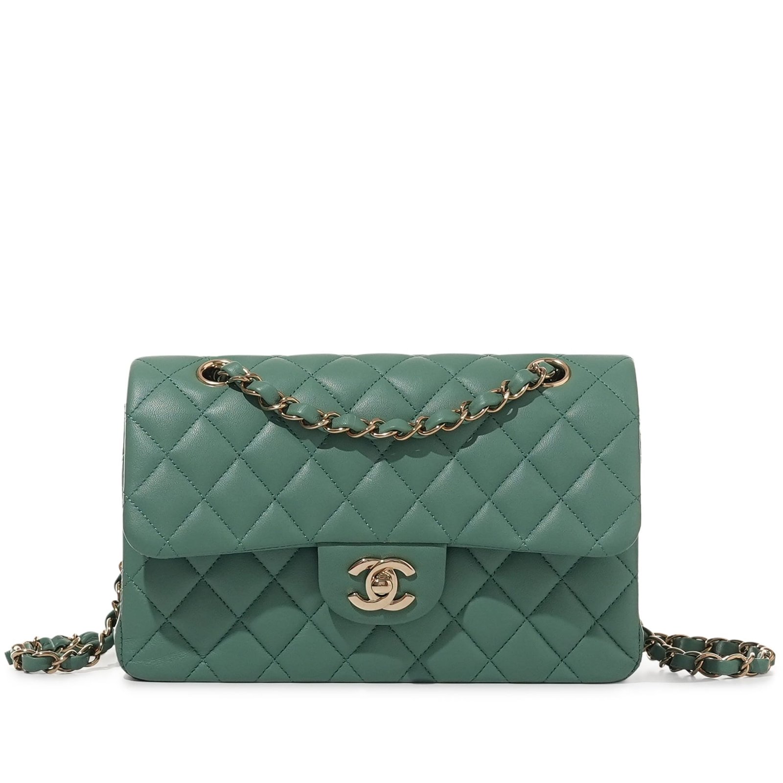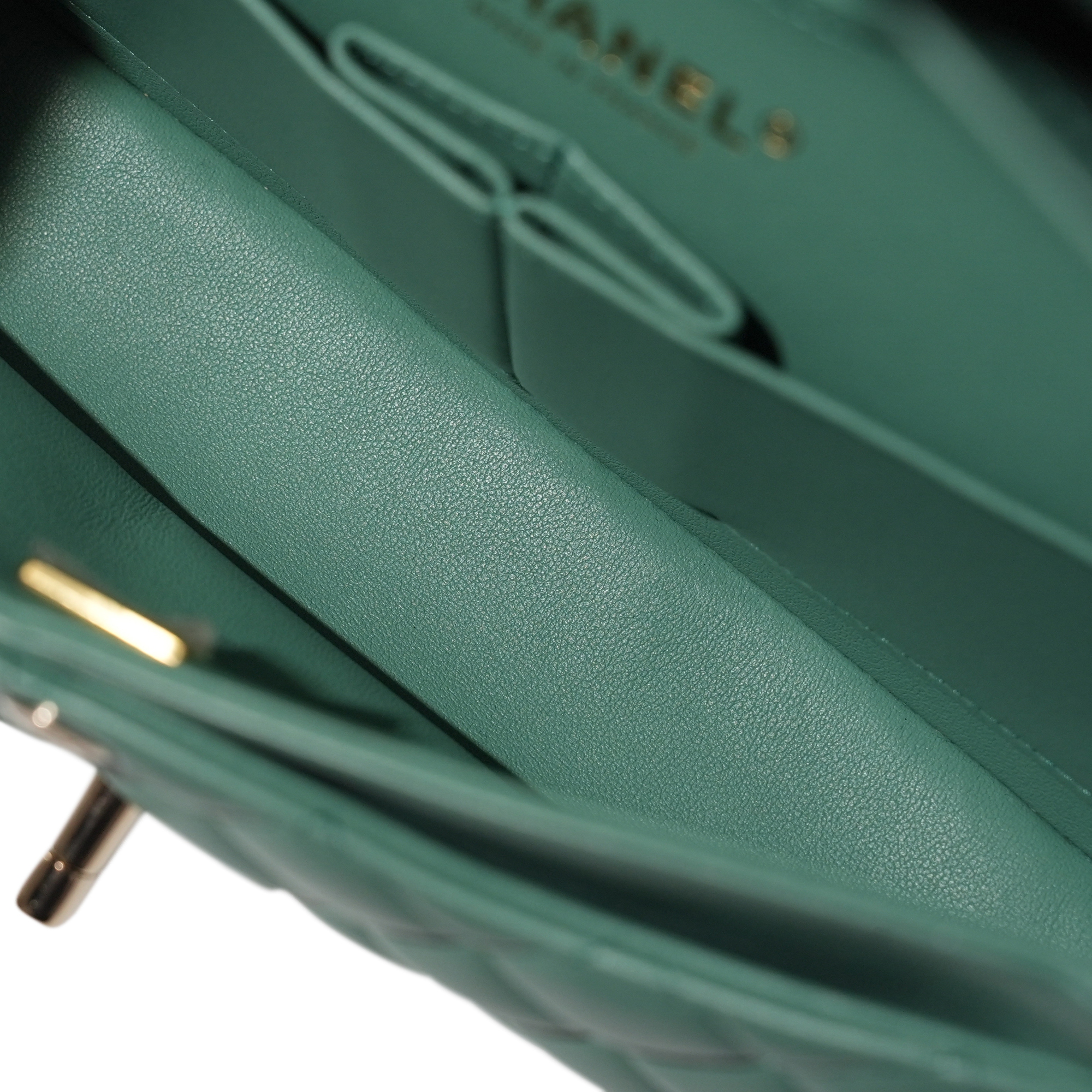 Chanel Green Quilted Lambskin Small Timeless Classic Double Flap Bag Pale Gold HardwareThe interior is lined with tonal leatherIncludes dust bagThis item is final sale and not eligible for return