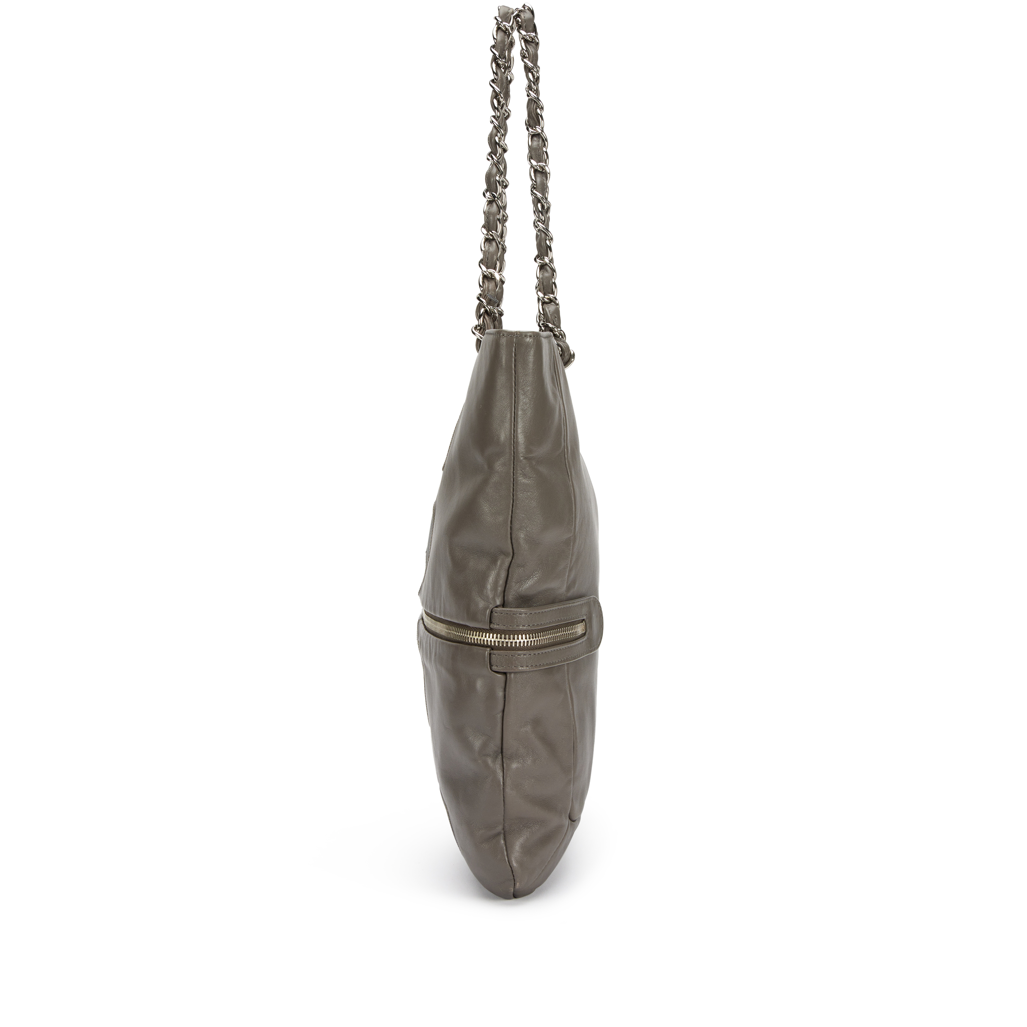 Grey Calfskin Large Expandable Paris London Tote Bag Silver Hardware, 2008