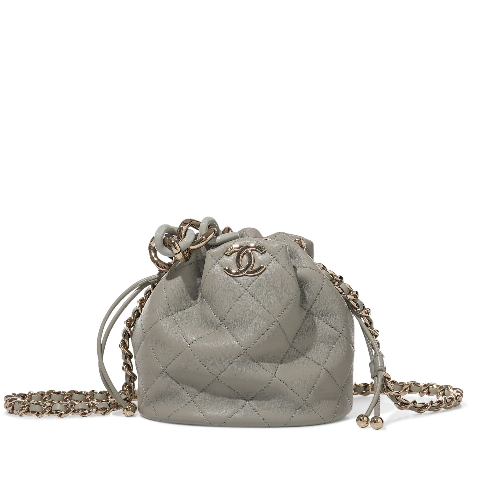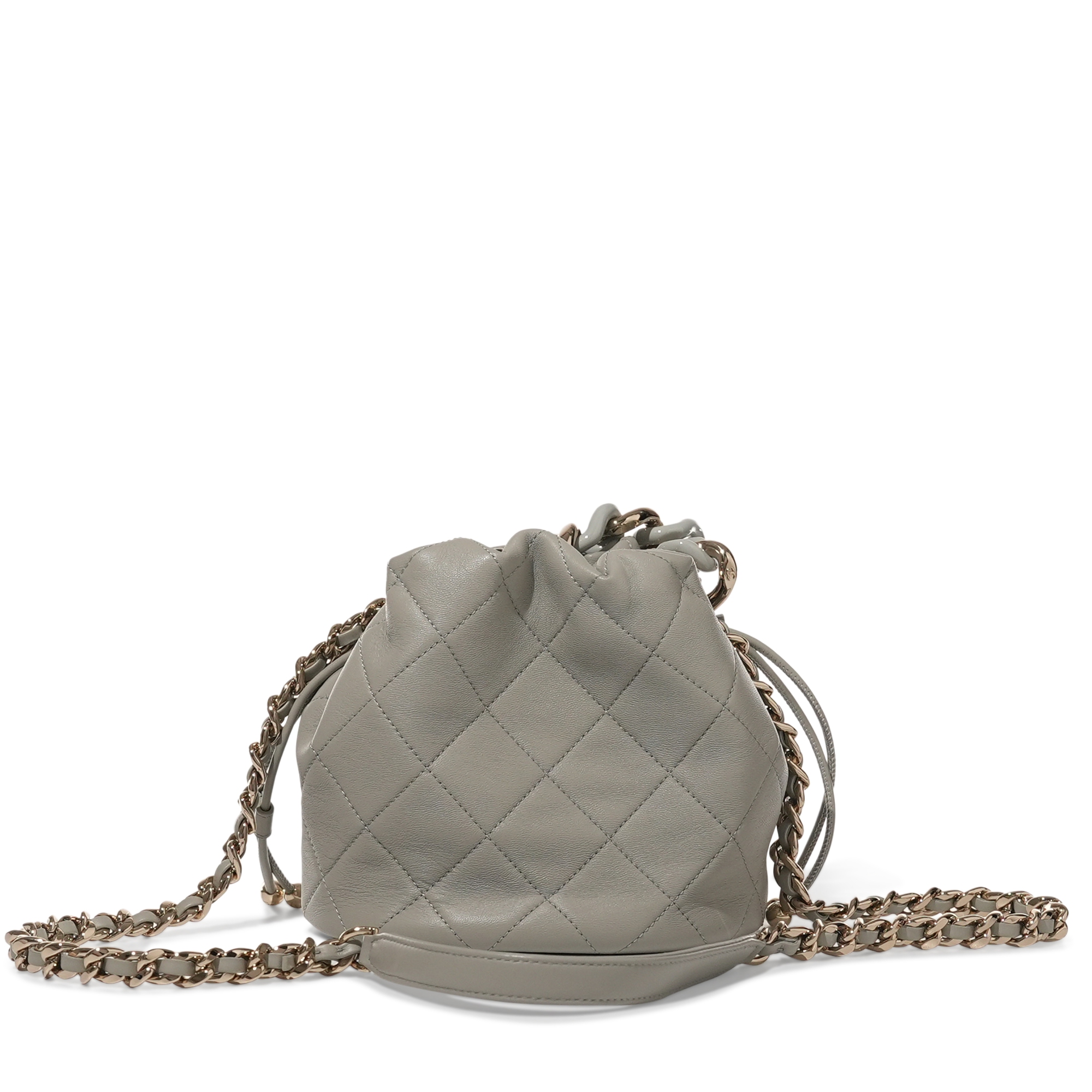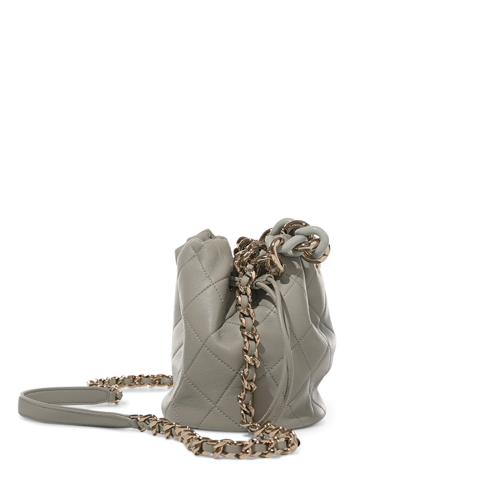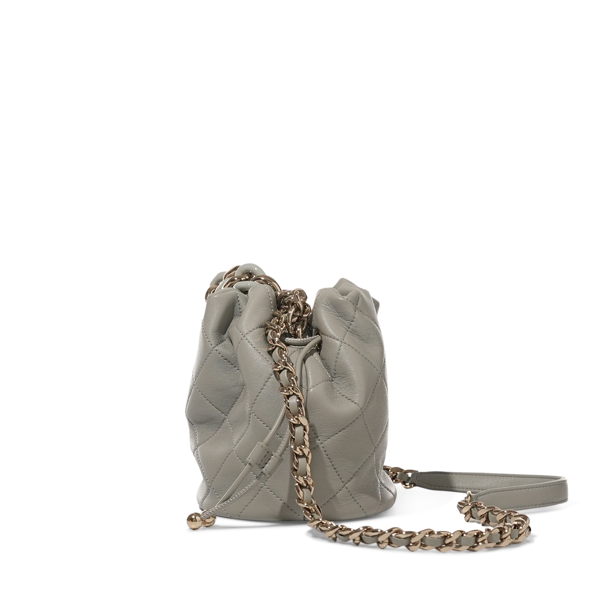 Grey Quilted Calfskin Bucket Bag Pale Gold Hardware, 2021