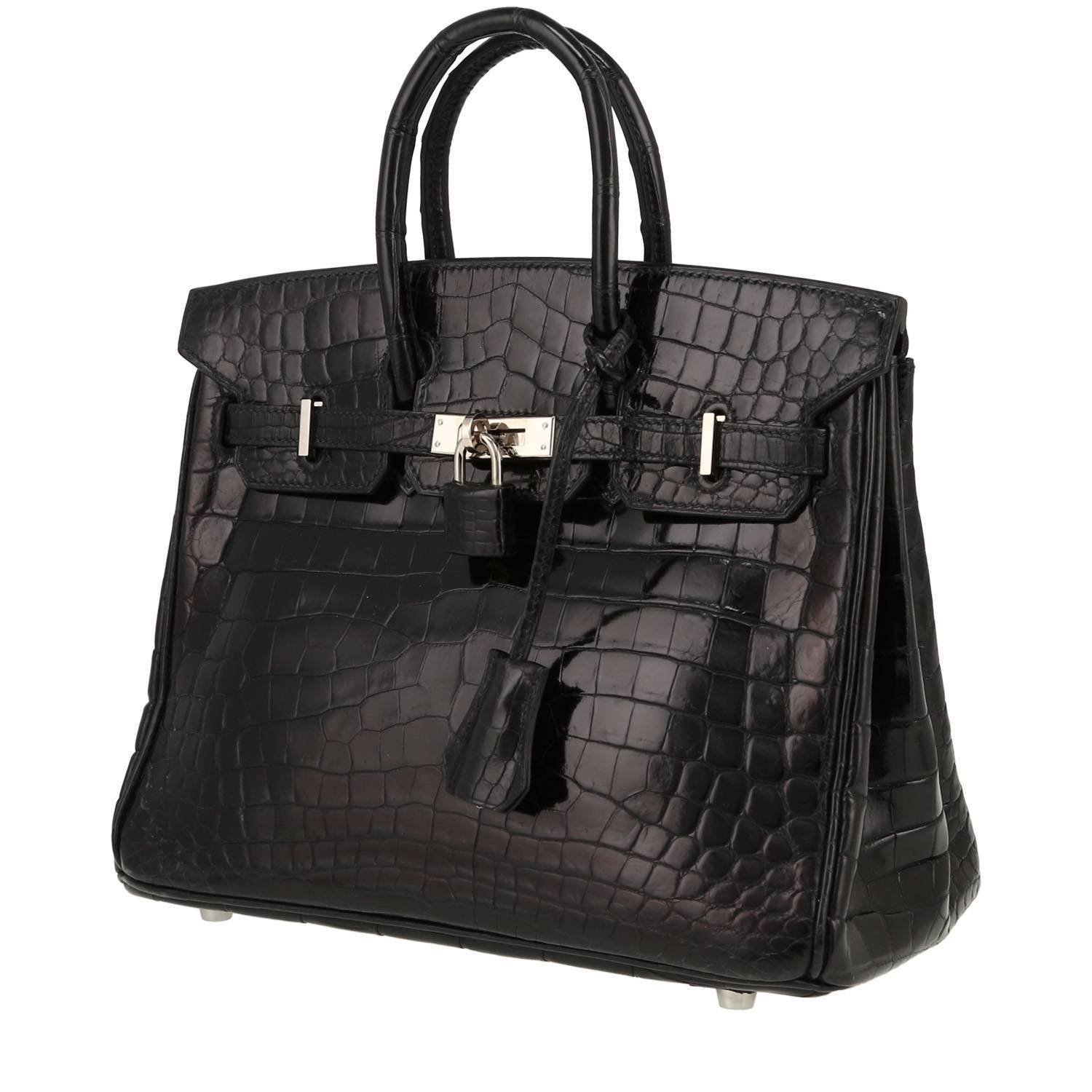 Wonderful Hermès Birkin 25 cm handbag in black niloticus crocodile, hardware in palladium metal, double handle in black crocodile allowing the bag to be worn in the hand.