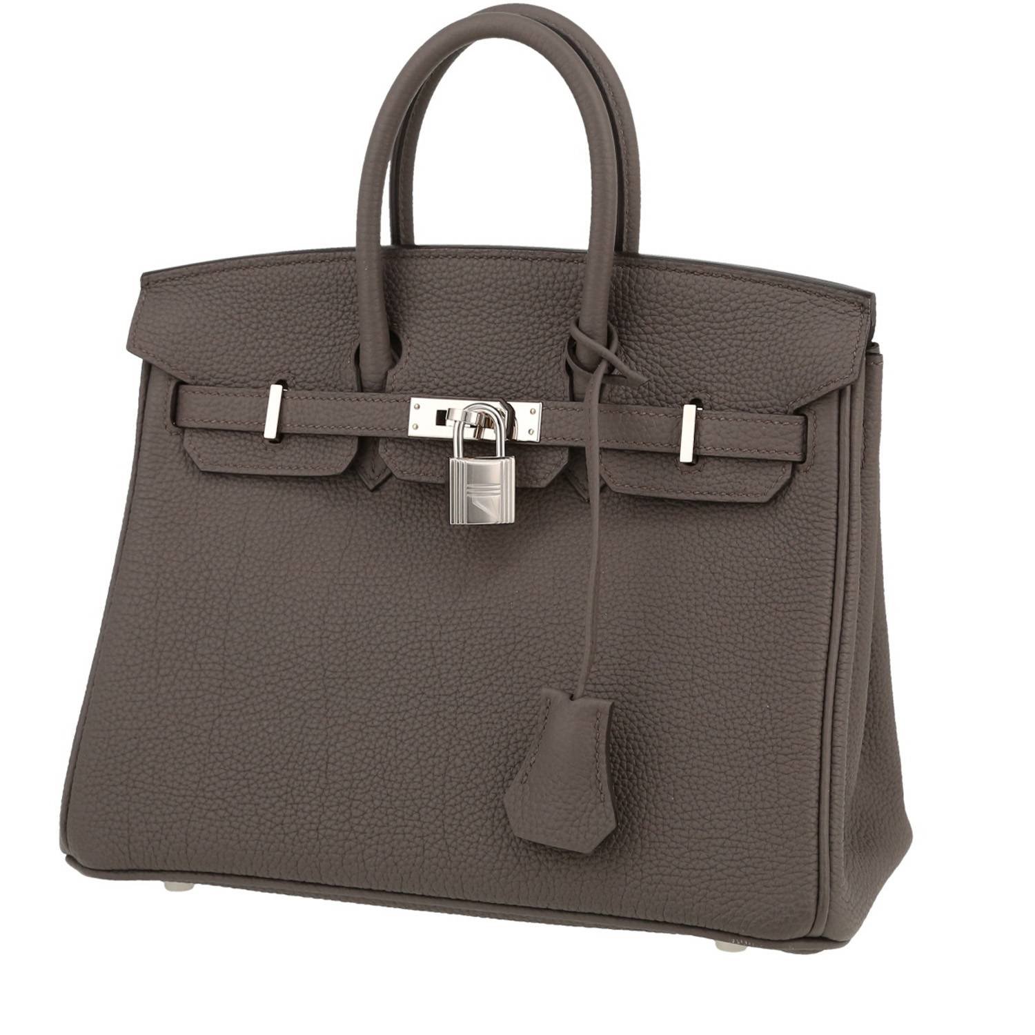 Wonderful Hermès Birkin 25 cm handbag in grey togo leather, hardware in palladium metal, double handle in grey leather allowing the bag to be worn in the hand.