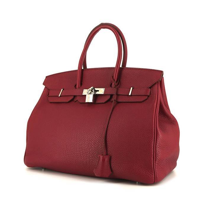 Superb Hermes Birkin 35 cm handbag in pink Tosca togo leather, hardware in palladium metal, double handle in pink Tosca leather allowing the bag to be worn in the hand.