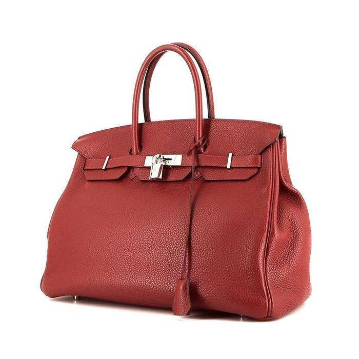 Hermes Birkin 35 cm handbag in red togo leather, hardware in palladium metal, double handle in red leather allowing the bag to be worn in the hand.