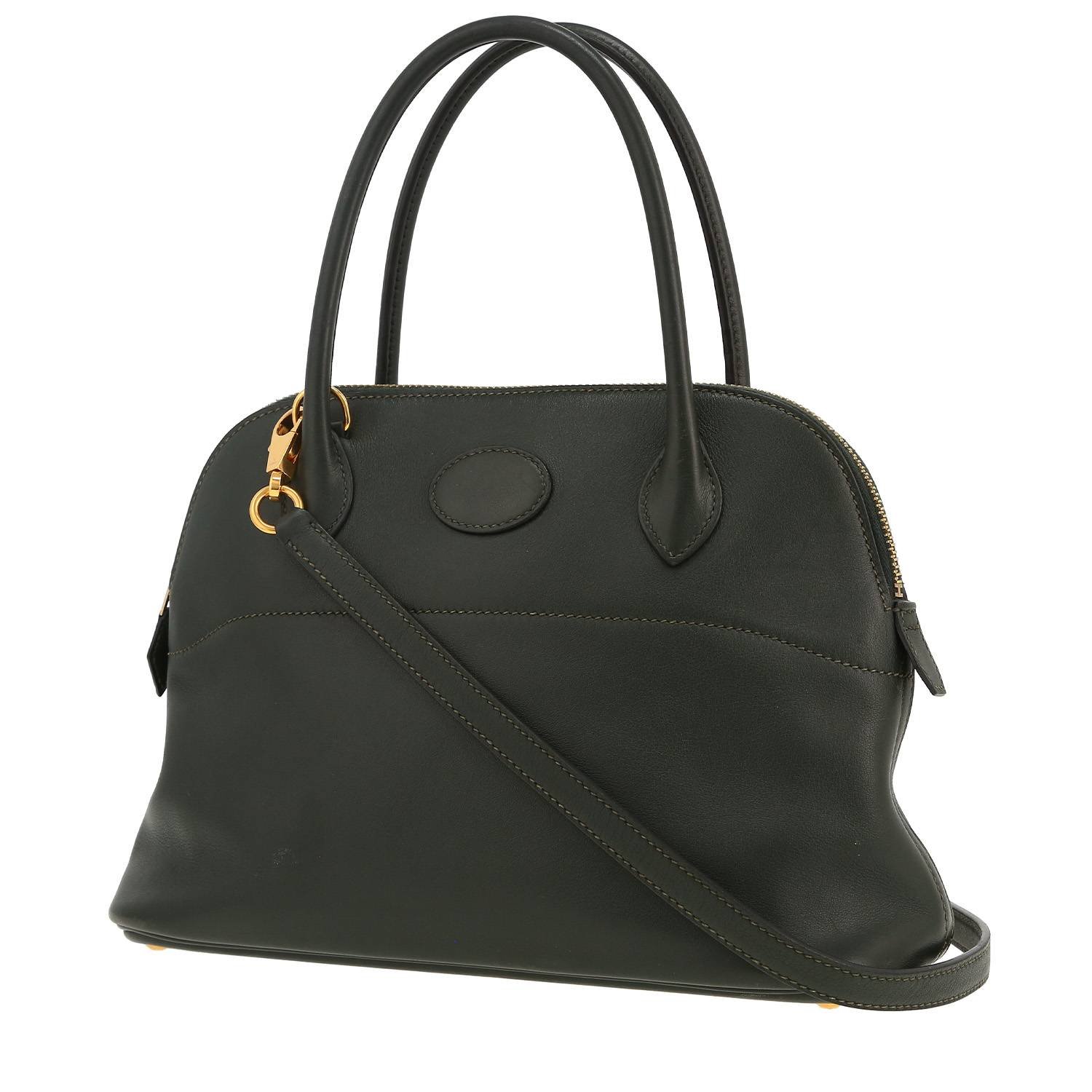 Nice Hermès Bolide 27 cm handbag in dark green Swift leather, hardware in gilt metal, double handle in dark green leather, one removable shoulder strap in dark green leather allowing the bag to be worn in the hand or on the shoulder or accross the body.