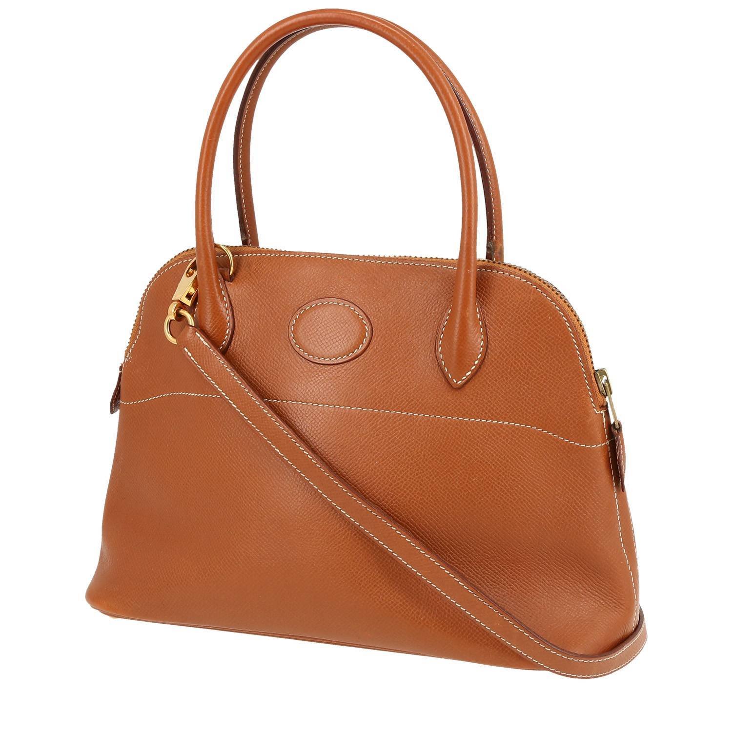 Nice Hermès Bolide 27 cm handbag in gold Courchevel leather, hardware in gilt metal, double handle in gold leather, one removable shoulder strap in gold leather allowing the bag to be worn in the hand or on the shoulder or accross the body.