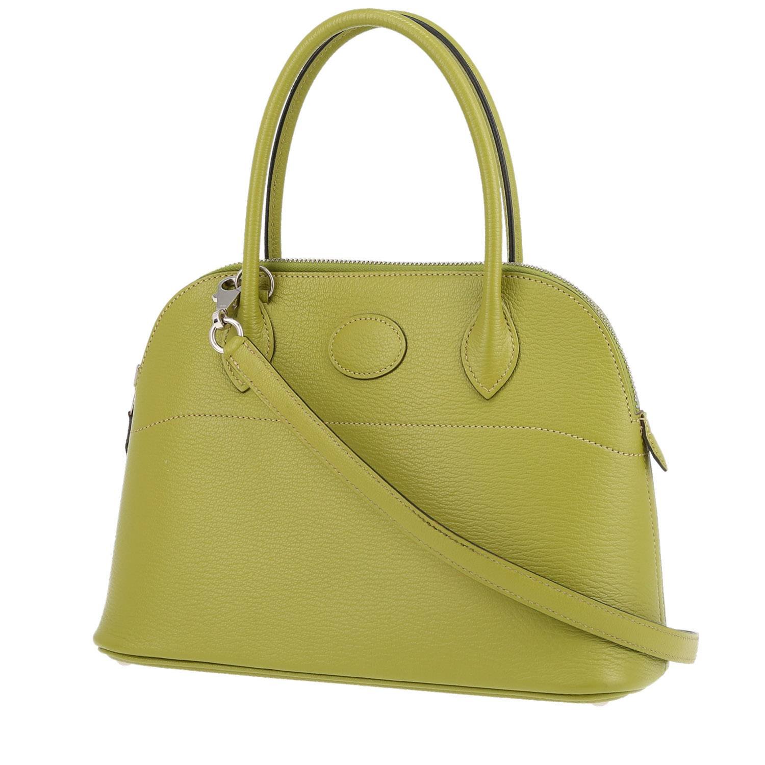 Nice Hermès Bolide 27 cm shoulder bag in anise green goat, hardware in palladium metal, double handle in green leather, one removable shoulder strap in green leather allowing the bag to be worn in the hand or on the shoulder or accross the body.