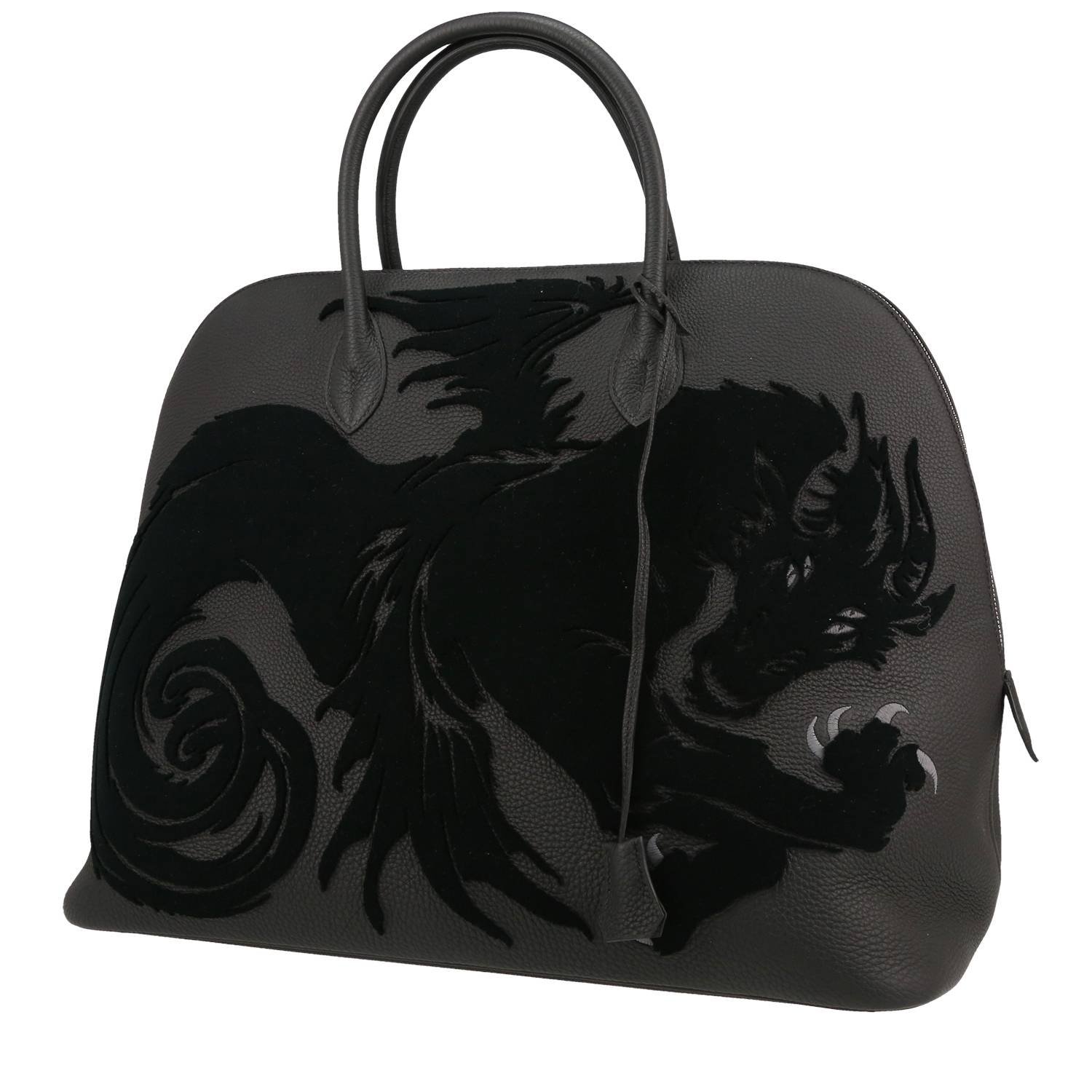Hermès Bolide large model travel bag in black togo leather and black velvet