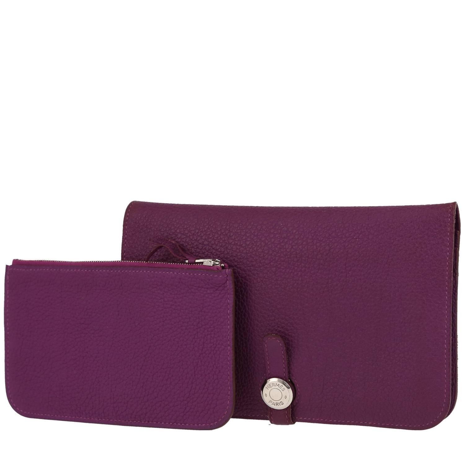 Magnificent Hermès Dogon wallet in purple Anemone togo leather, hardware in palladium metal allowing the bag to be worn in the hand.