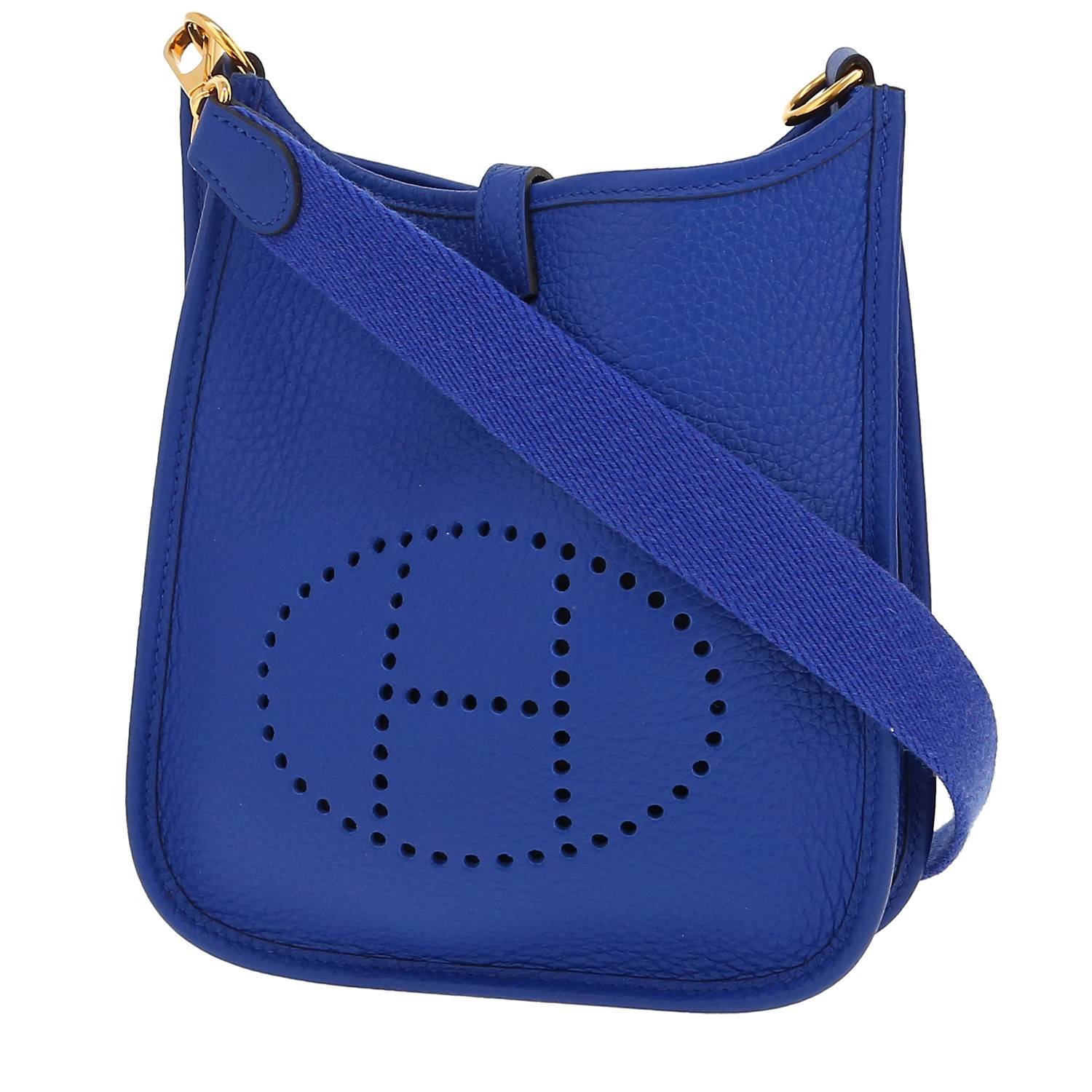 Elegant Hermès Evelyne shoulder bag in electric blue leather taurillon clémence, hardware in gilt metal, one removable shoulder strap in electric blue canvas allowing the bag to be worn in the hand or on the shoulder or accross the body.