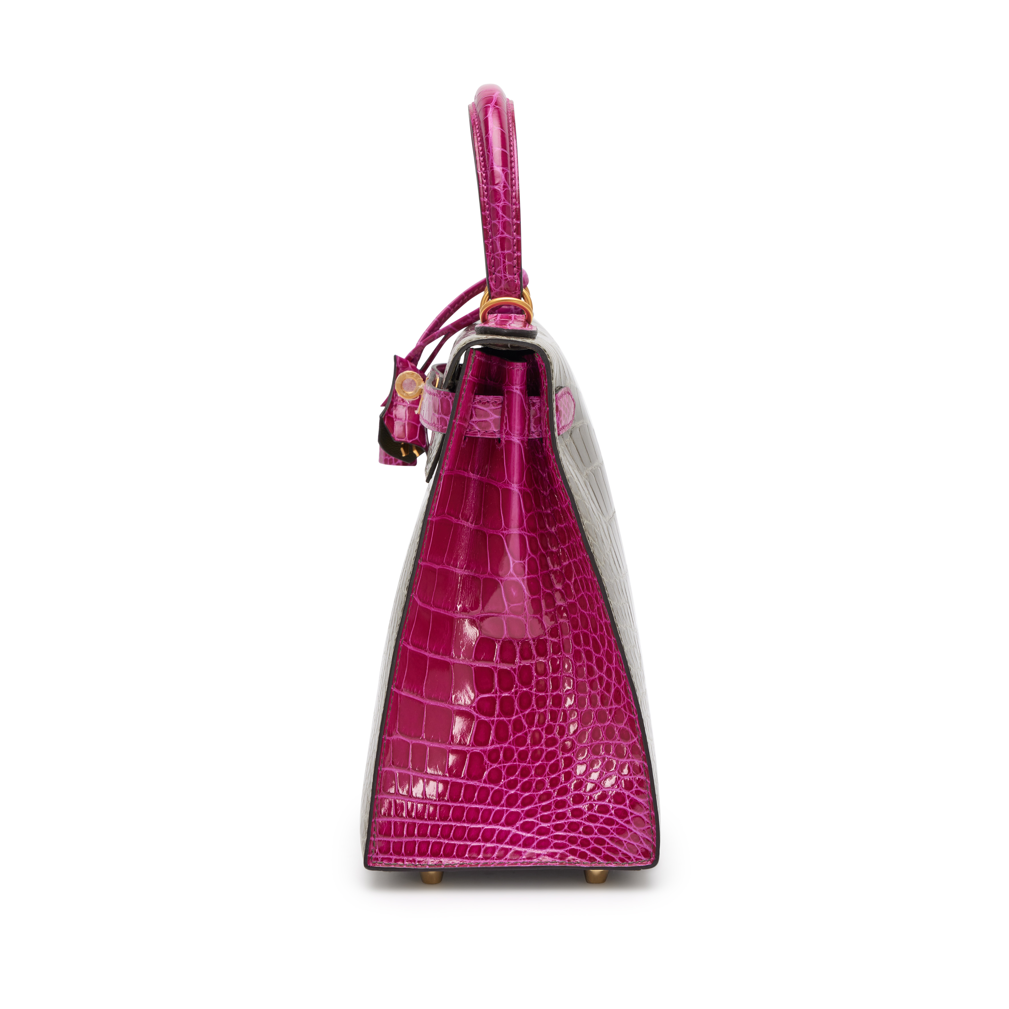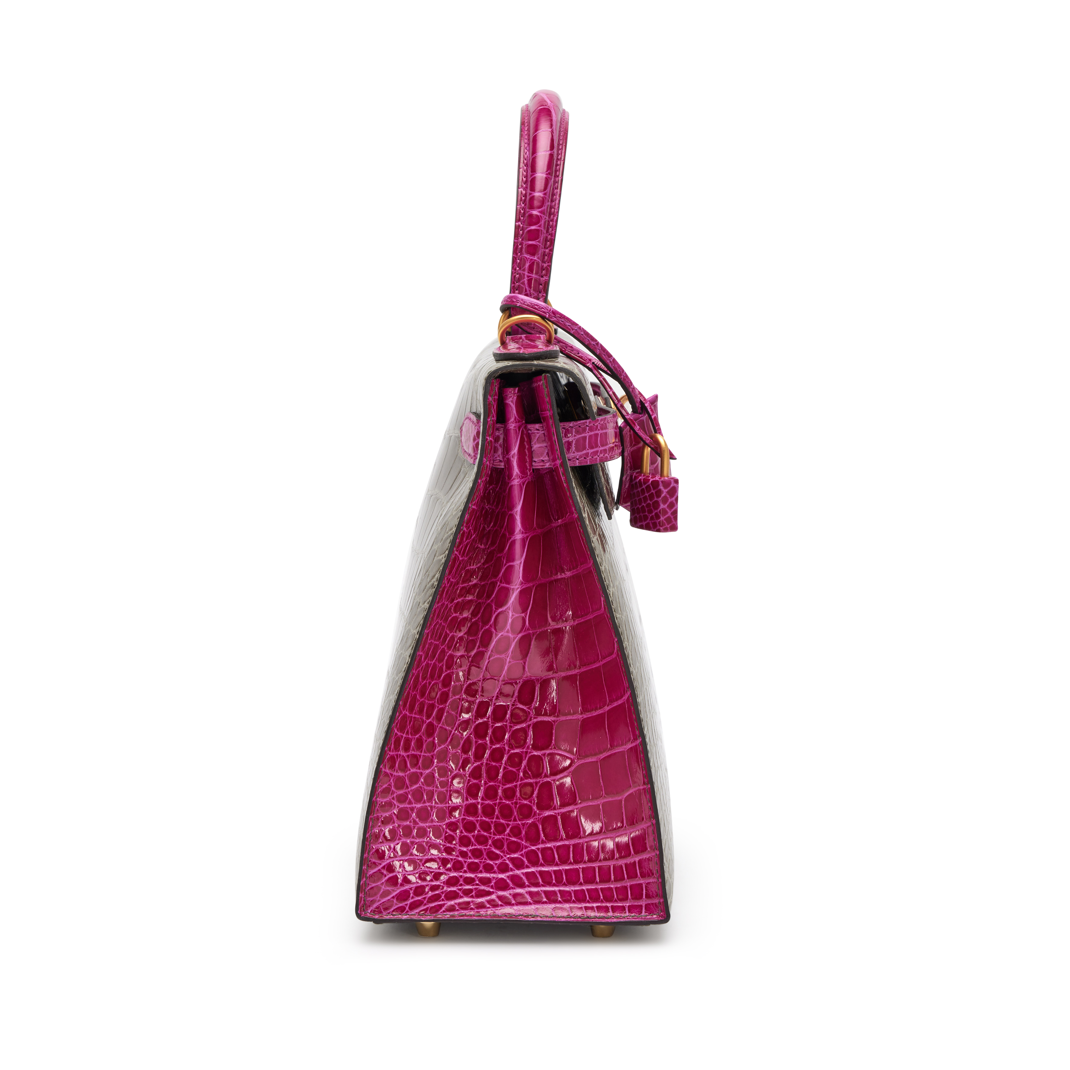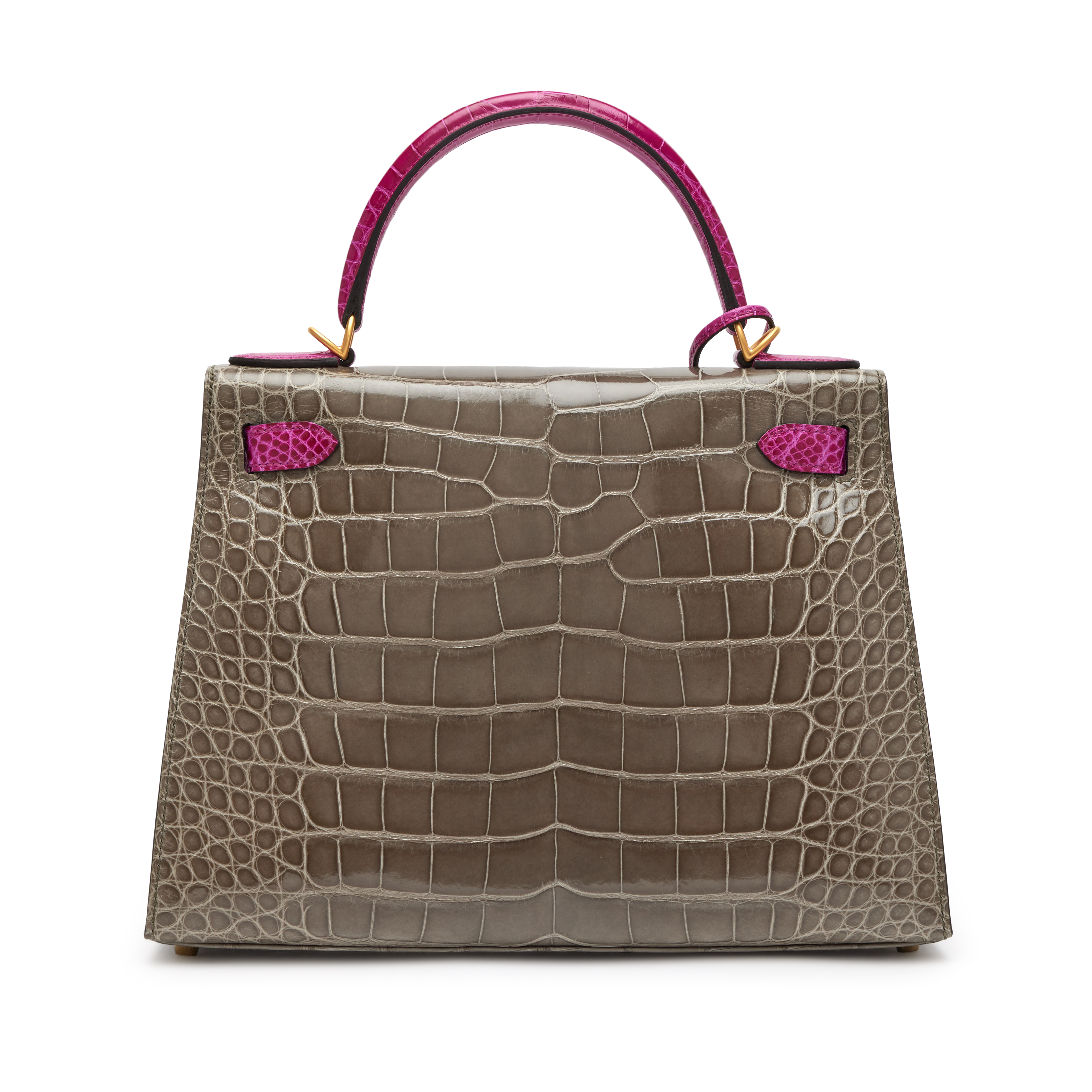 Hermès Gris Tourterelle and Rose Mexico Shiny Alligator HSS Sellier Kelly 28 Brushed Gold Hardware, 2020