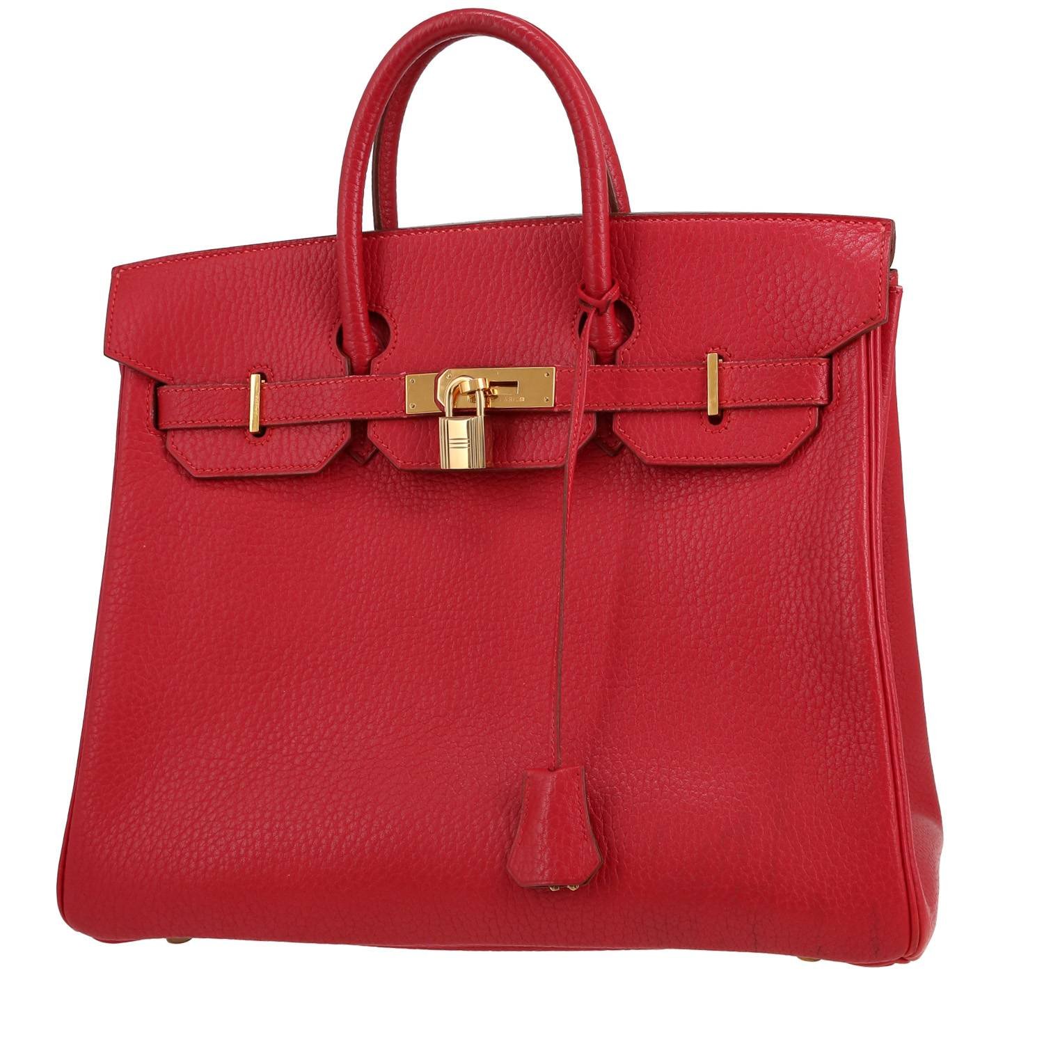 Wonderful Hermès Haut à Courroies handbag in red Vif Ardenne leather, hardware in gilt metal, double handle in red leather allowing the bag to be worn in the hand.