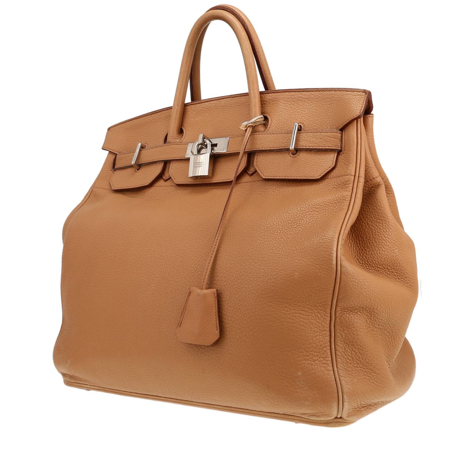 Beautiful Hermès Haut à Courroies weekend bag in brown togo leather, hardware in palladium metal, double handle in brown leather allowing the bag to be worn in the hand.