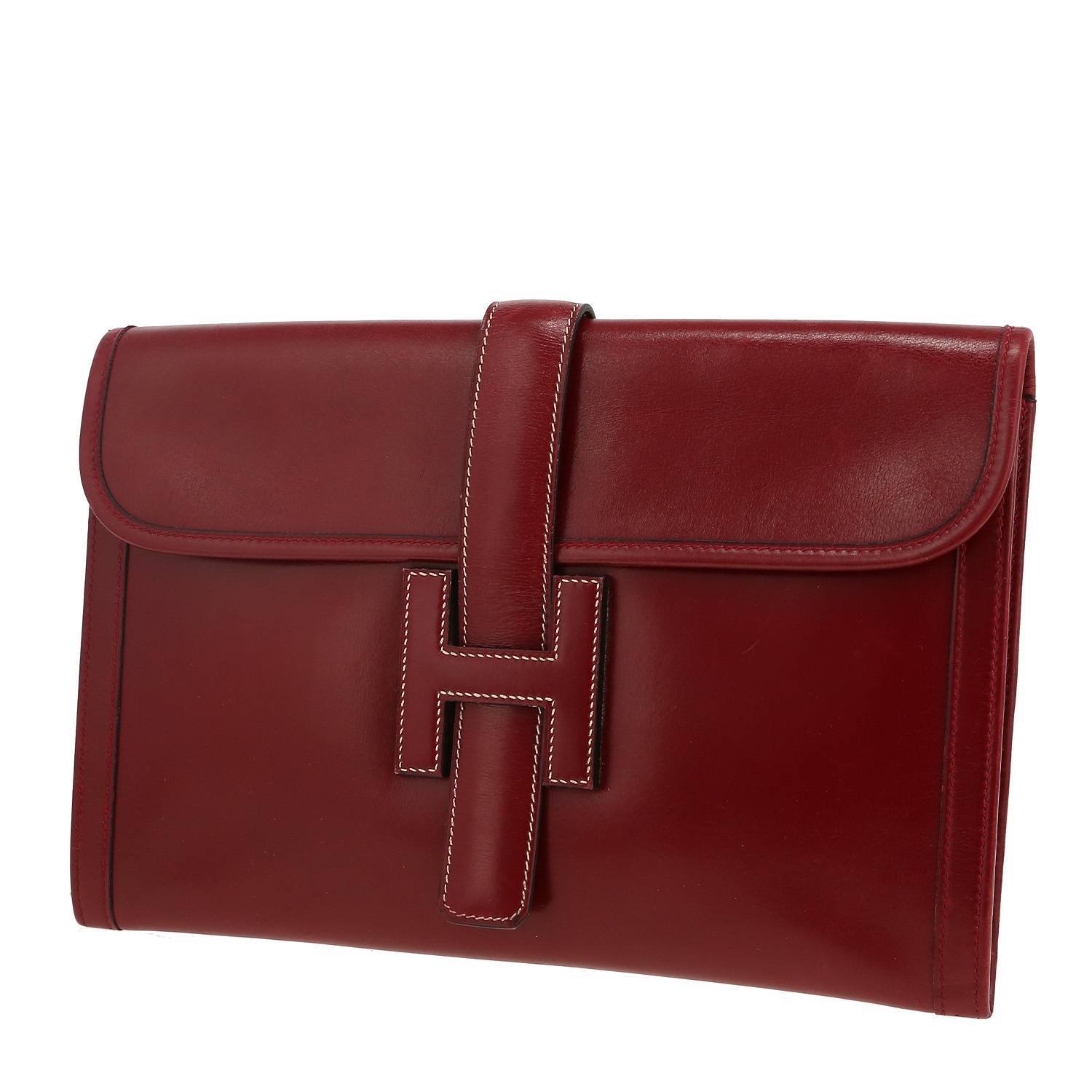 Wonderful Hermès Jige pouch in burgundy box leather.