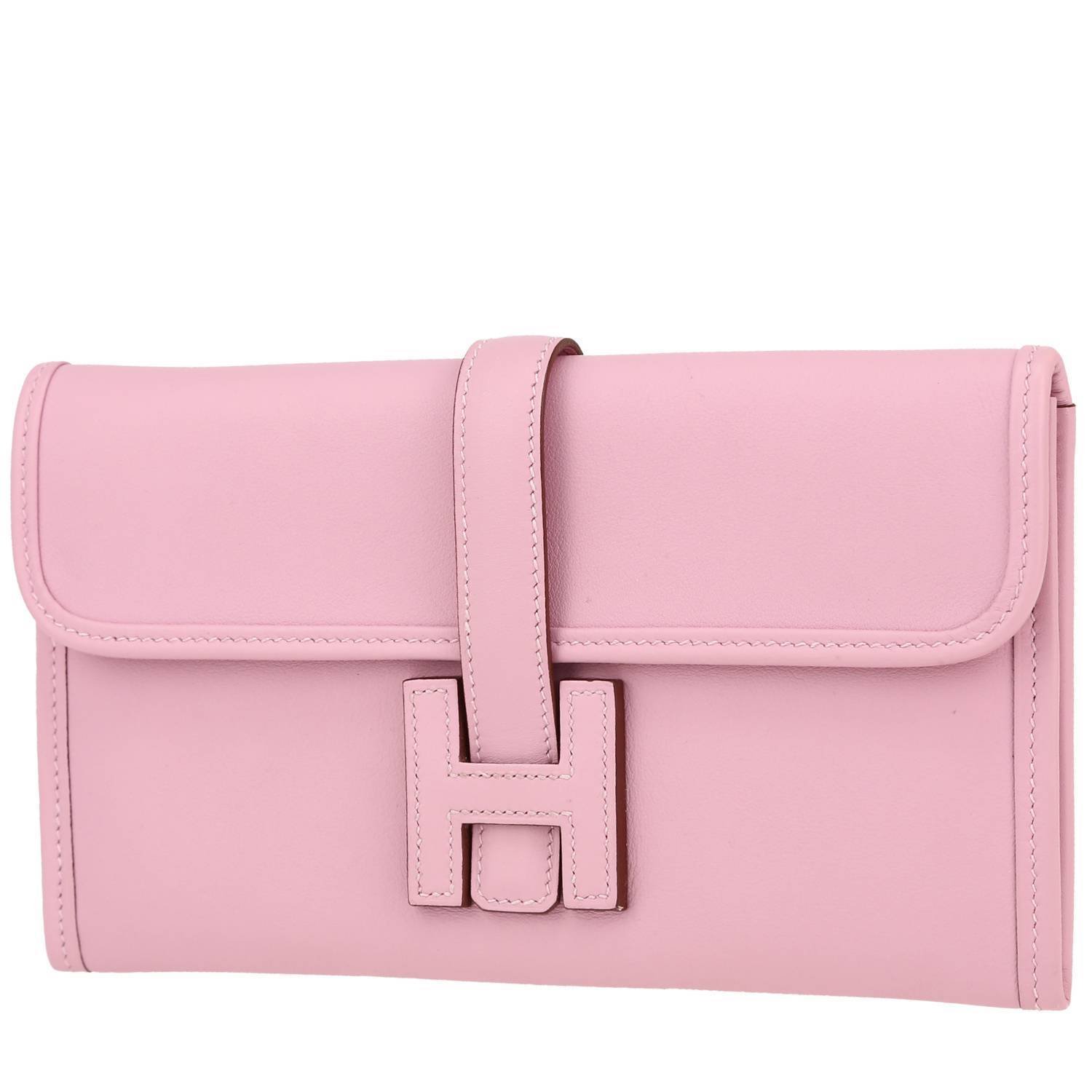 Wonderful Hermès Jige pouch in Rose Bubblegum Swift leather.