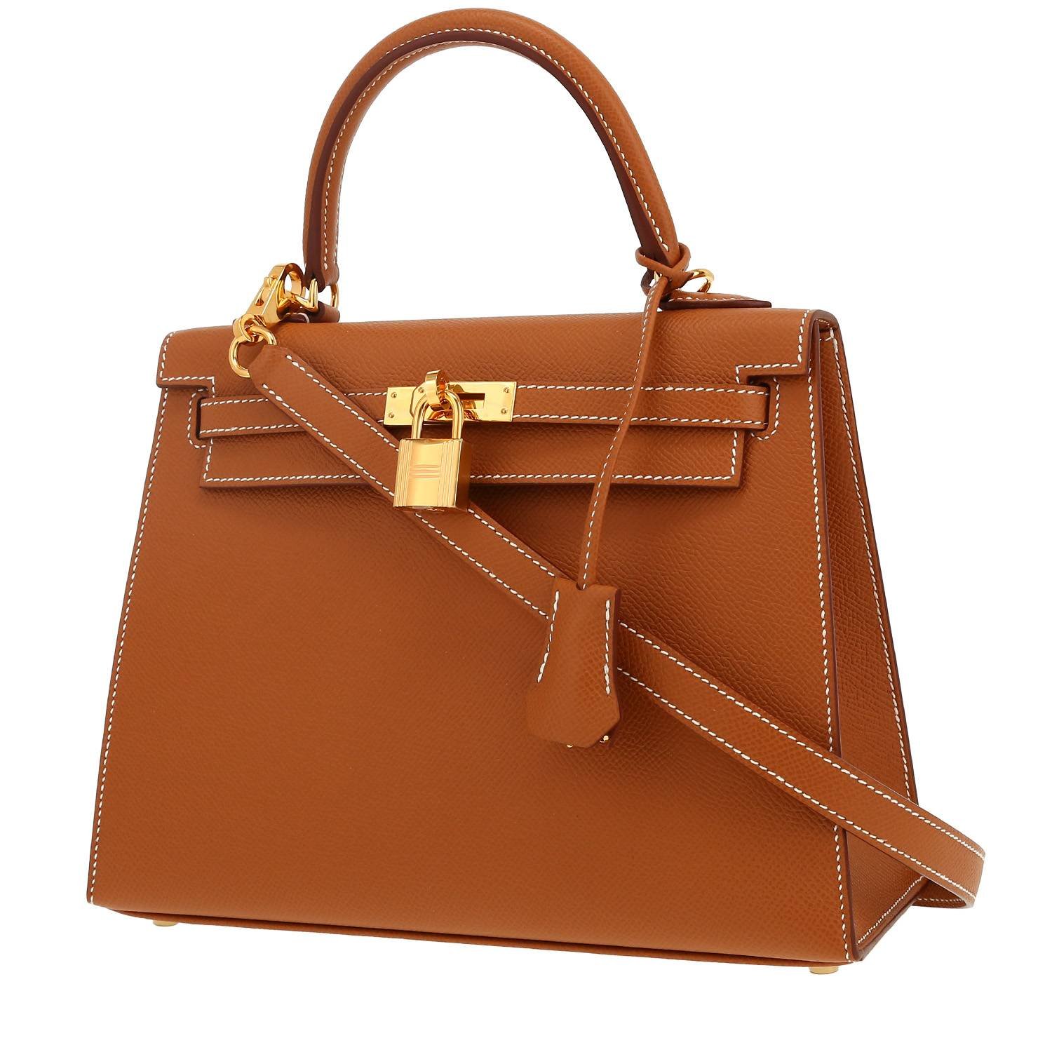 Magnificent Hermès Kelly 25 cm handbag in gold epsom leather, hardware in gilt metal, simple handle in gold leather, gold leather removable strap to be worn accross the body allowing the bag to be worn in the hand or on the shoulder.