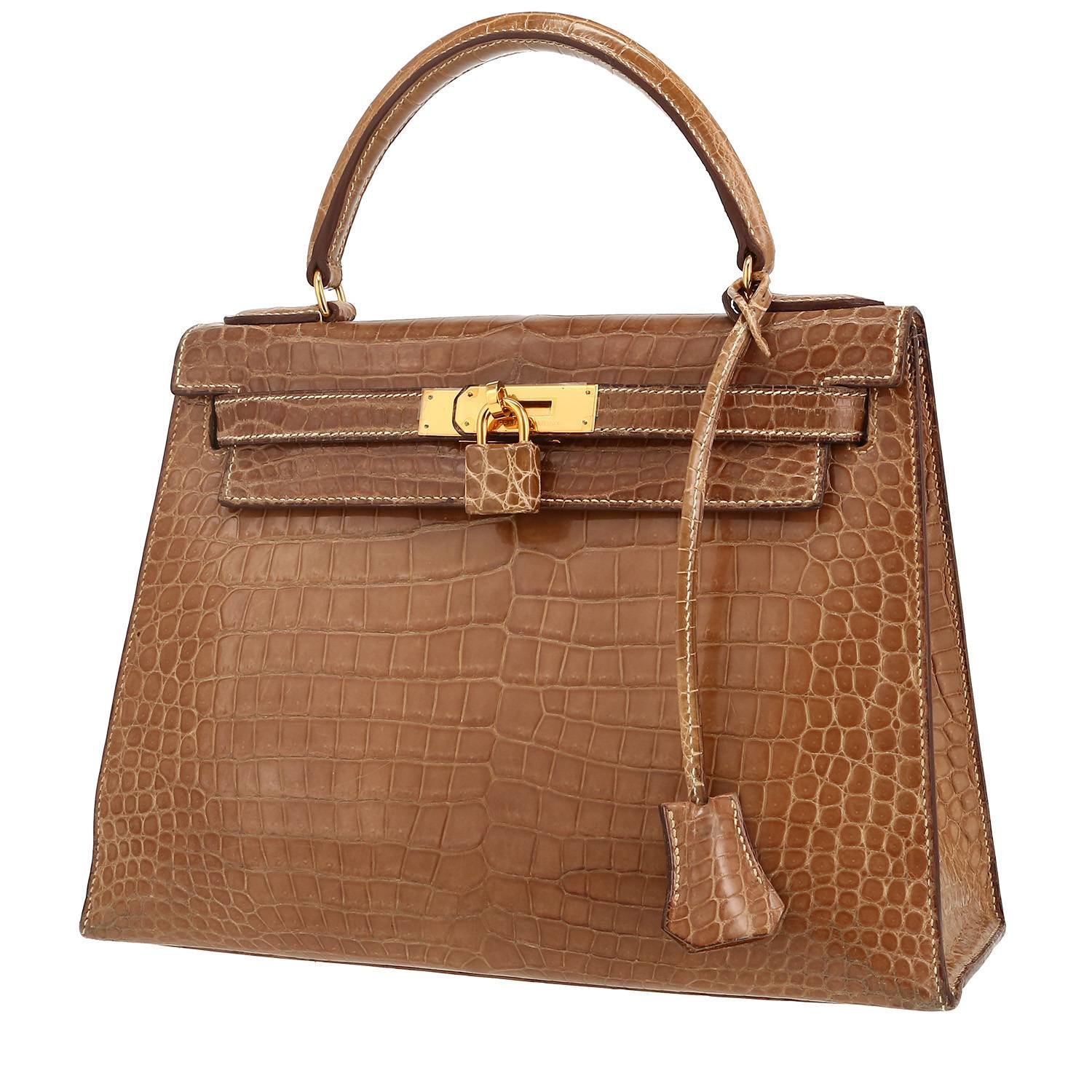 Elegant Hermès Kelly 28 cm handbag in Beige Ficelle crocodile, hardware in gilt metal, simple handle in Beige Ficelle crocodile allowing the bag to be worn in the hand.