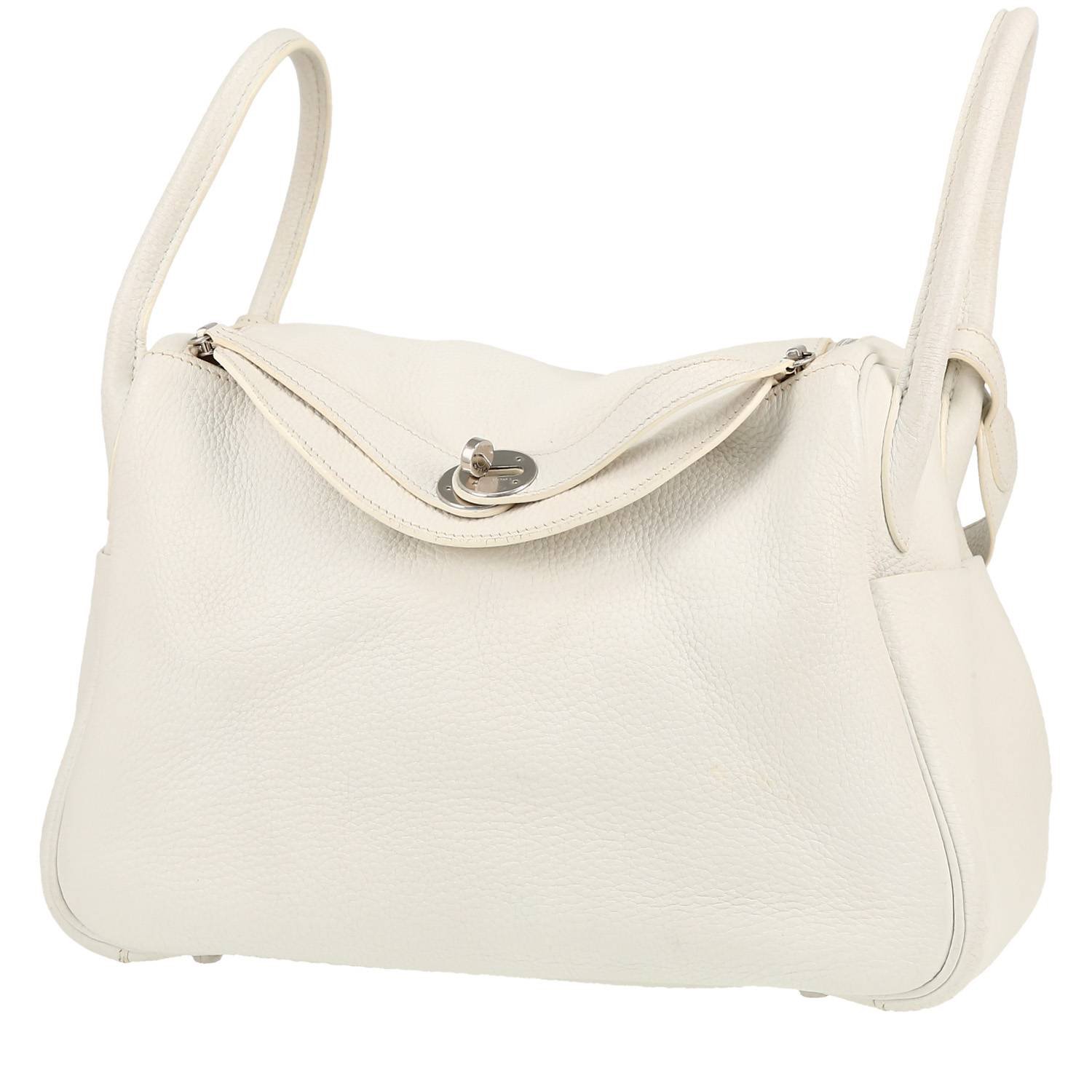 Charming Hermès Lindy 30 cm handbag in white togo leather, hardware in palladium metal, double handle in white leather, one handle in white leather allowing the bag to be worn in the hand or on the shoulder.