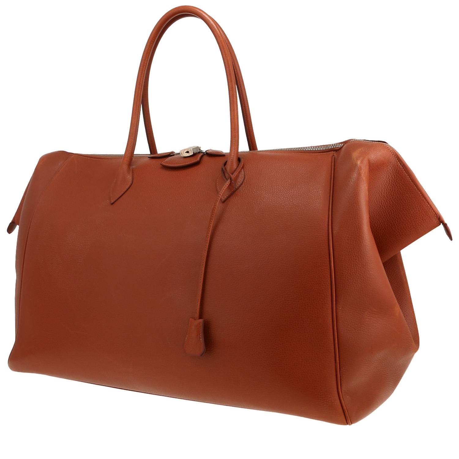 Beautiful and rare Hermès Paris-Bombay – Travel Bag travel bag in brown Evergrain leather, hardware in palladium metal, double handle in brown leather allowing the bag to be worn in the hand or on the shoulder.