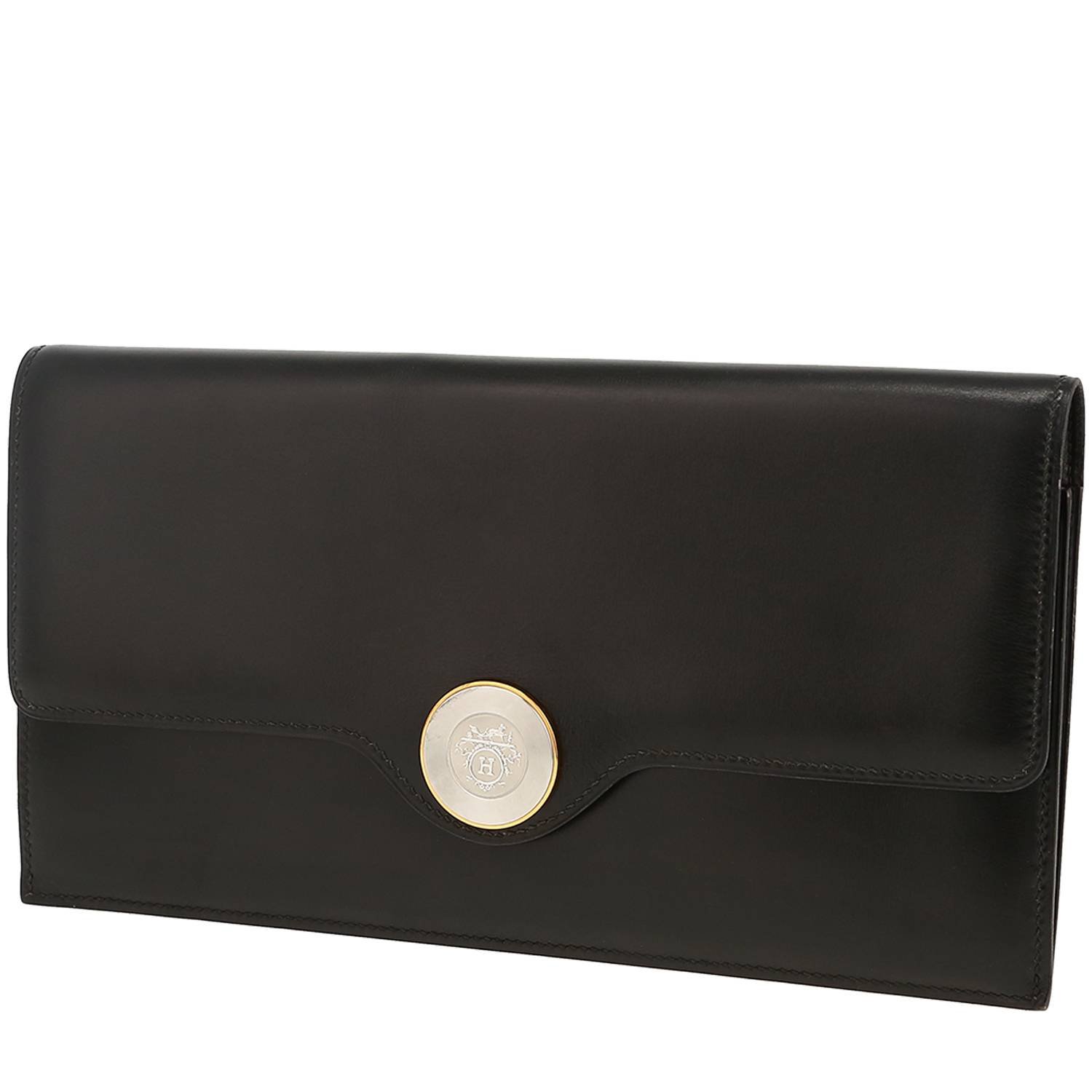 Wonderful Hermès Vintage pouch in black box leather, hardware in gilt and silver metal.