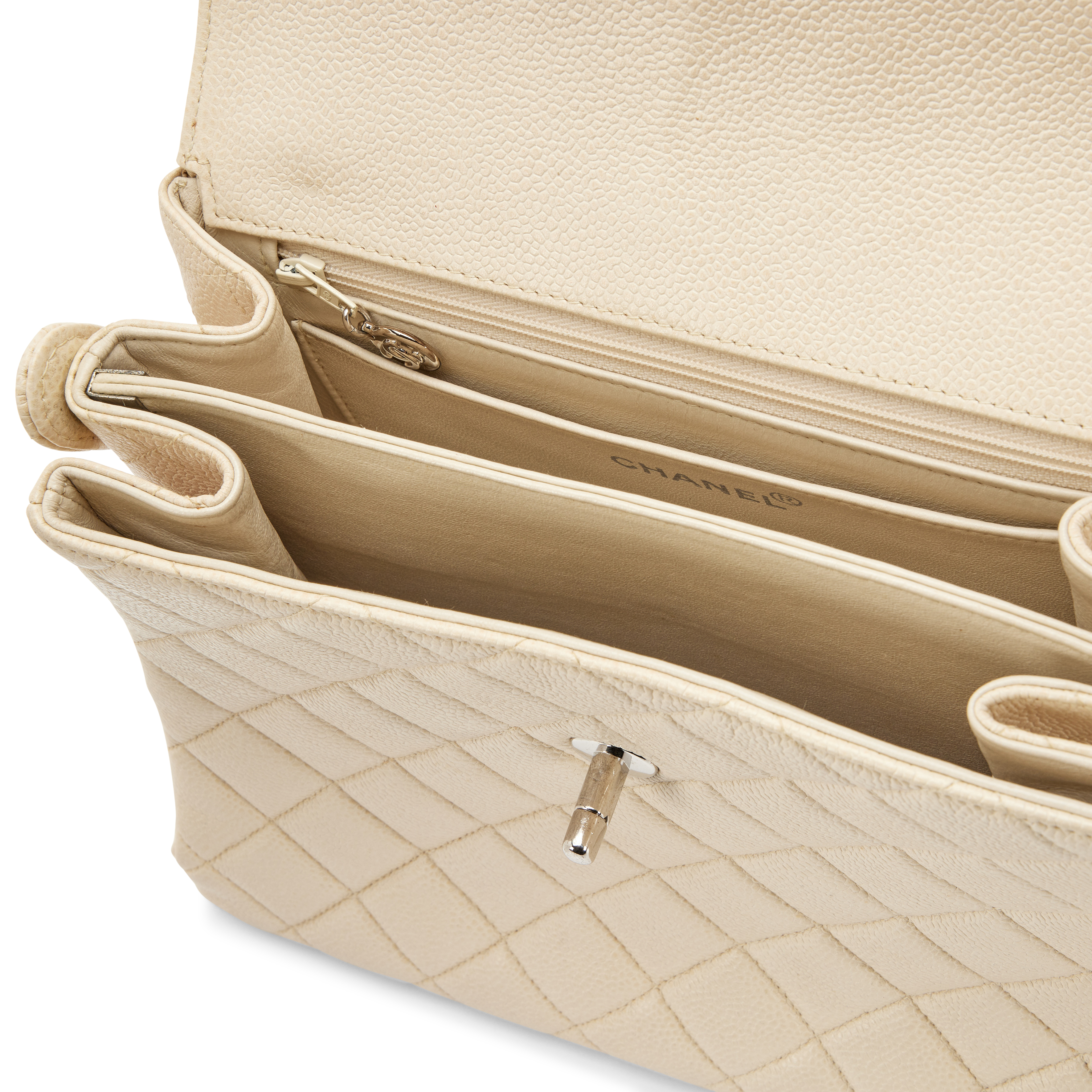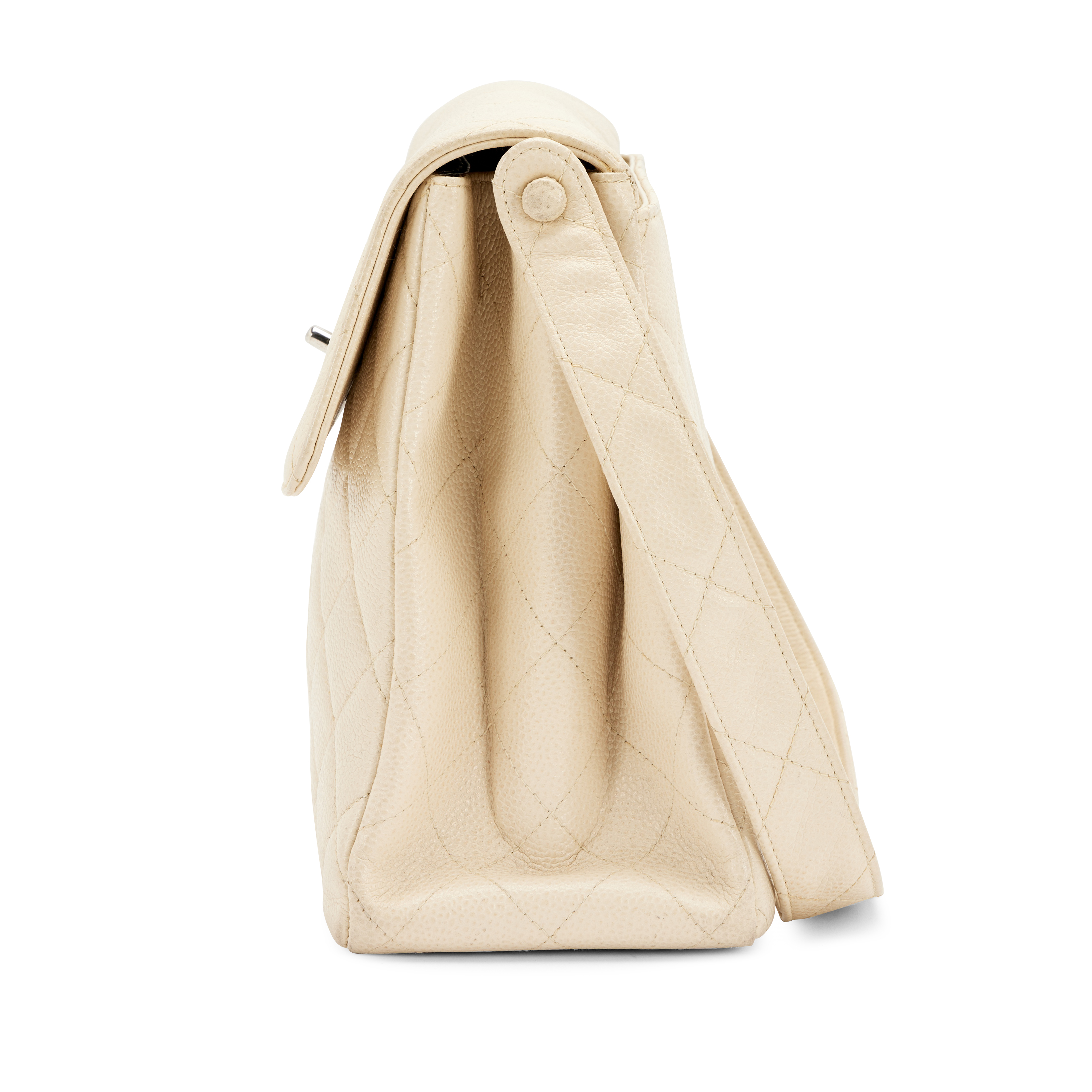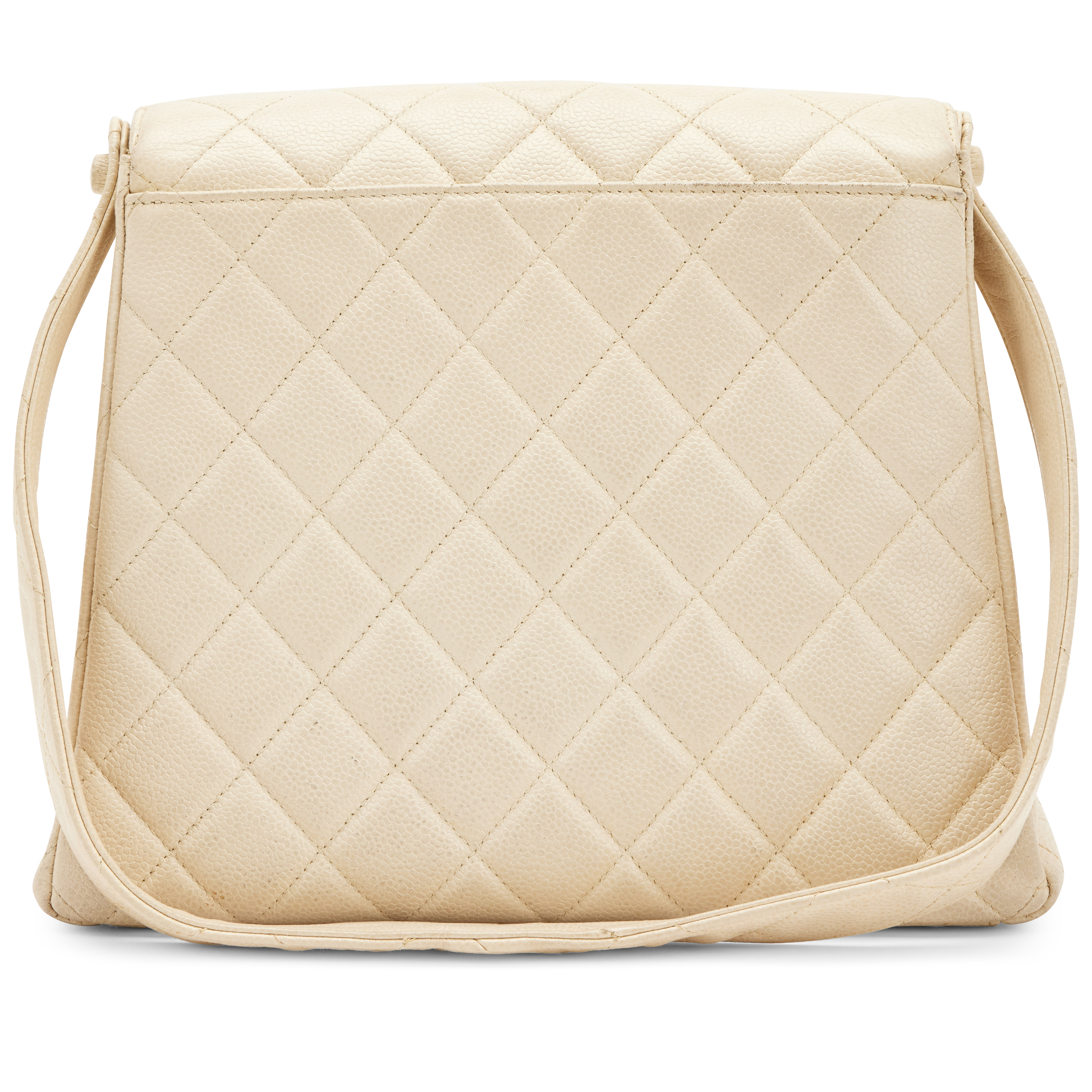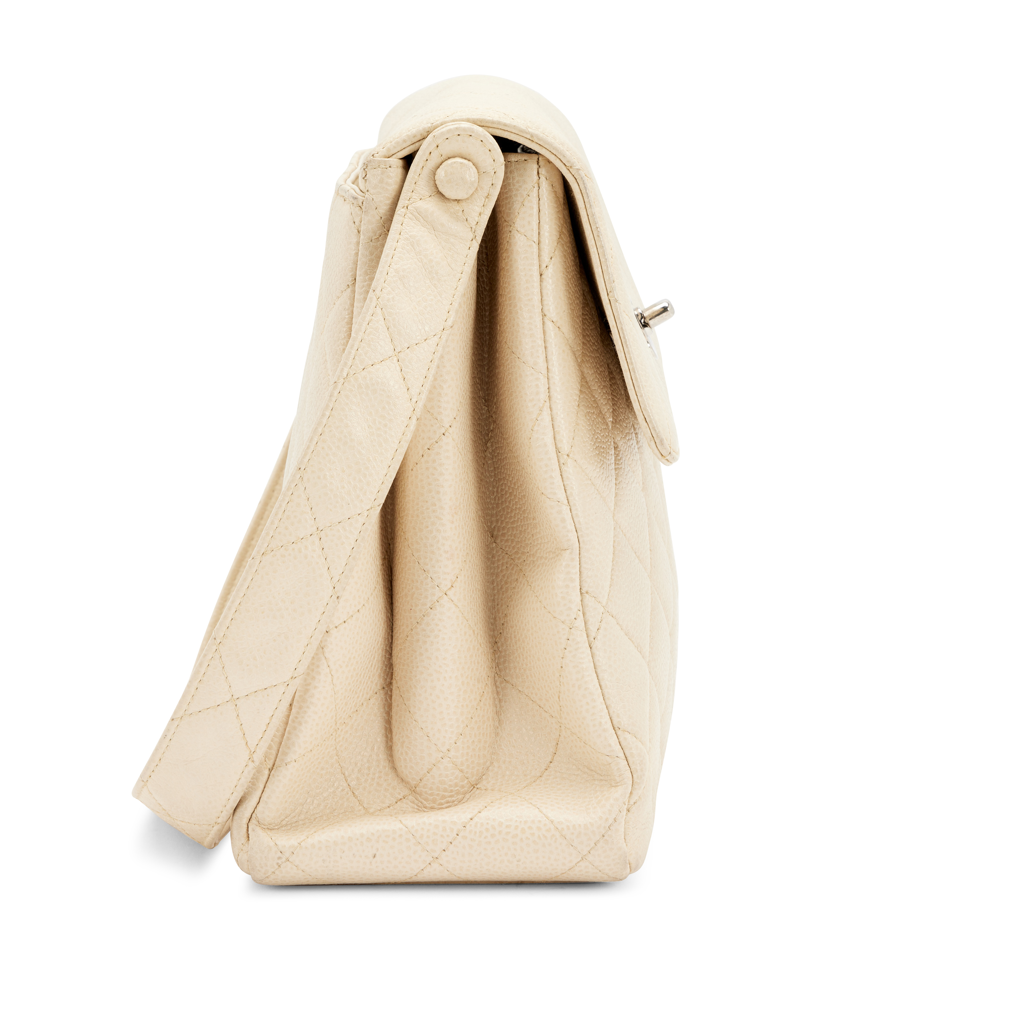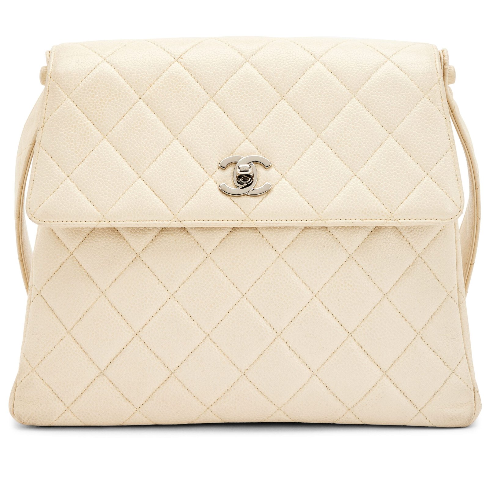 Chanel Ivory Quilted Caviar Matelasse Turn Lock Flap Bag Silver Hardware, 1996-1997The interior is lined in a tonal leatherIncludes authenticity card, dust bag, and boxThis item is final sale and not eligible for return