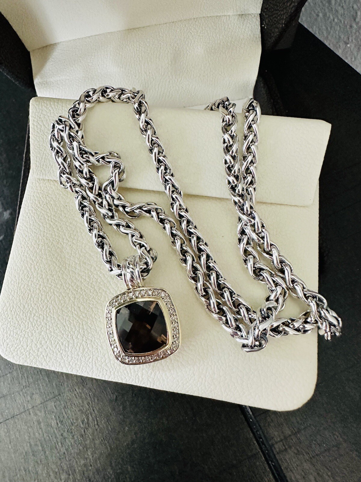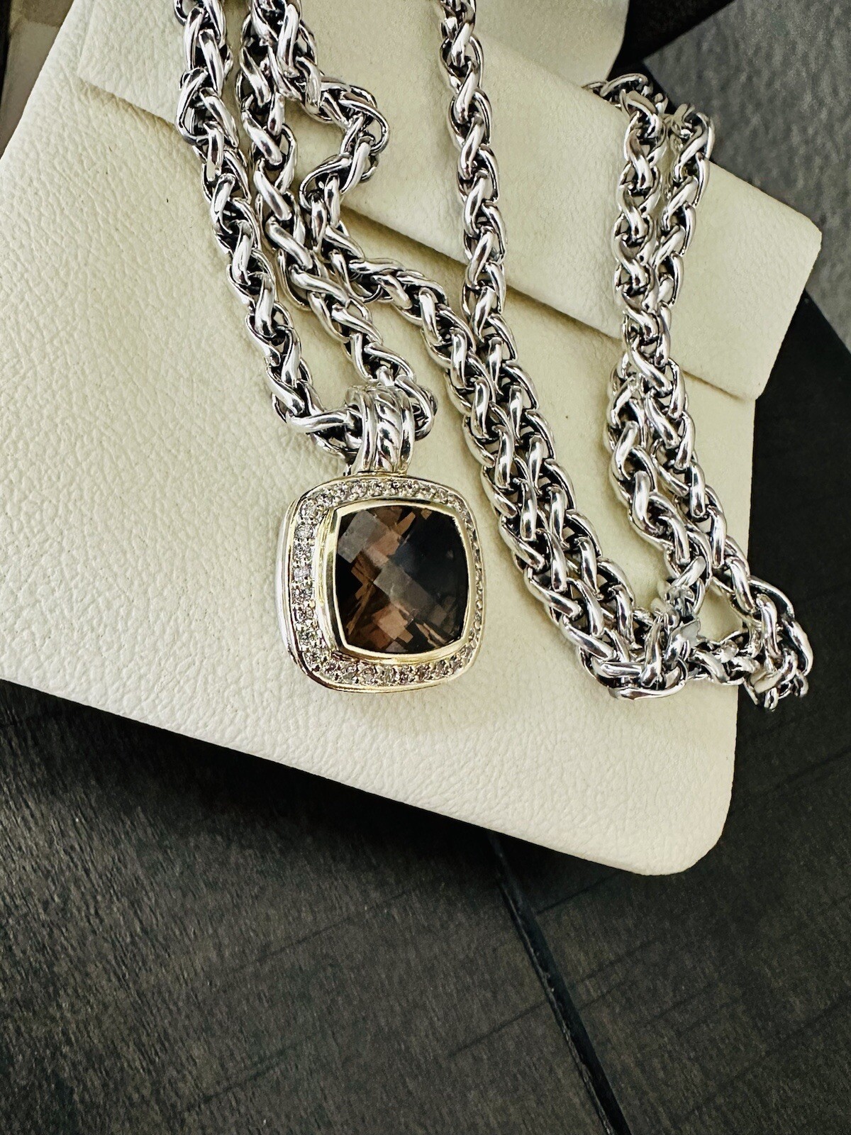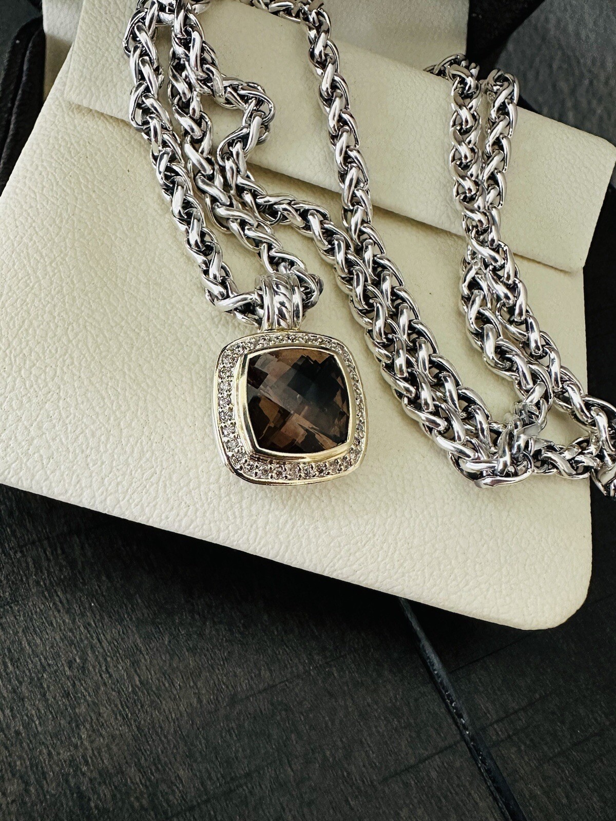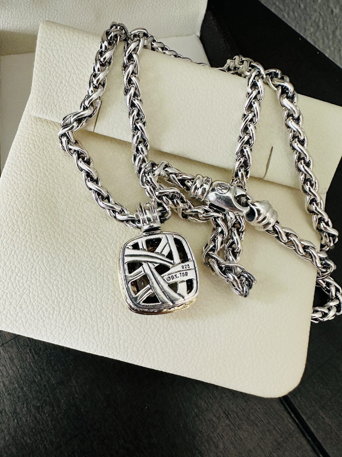 Ladies 18k Yellow Gold & Sterling David Yurman Smoky Quartz & Diamond necklace