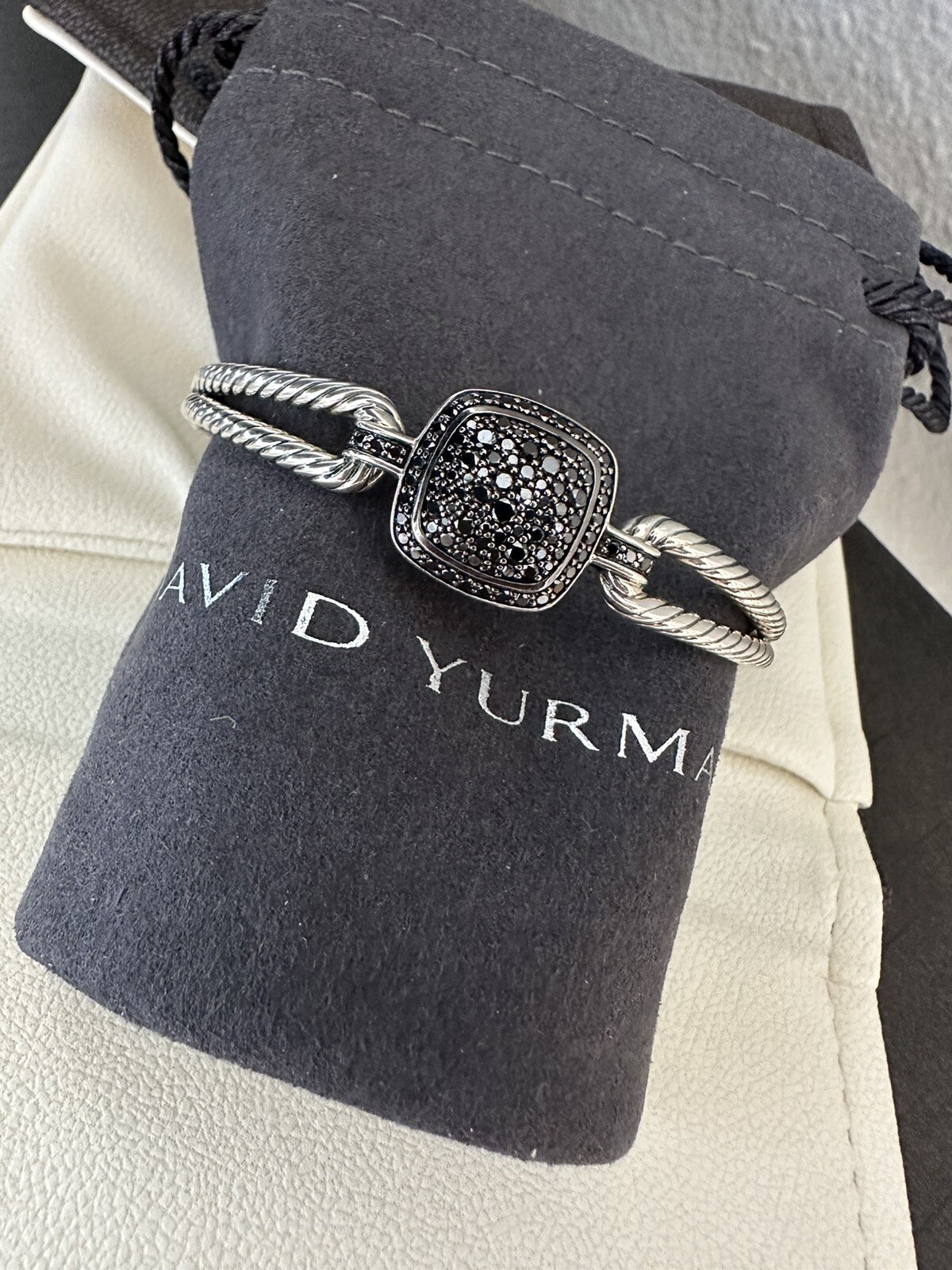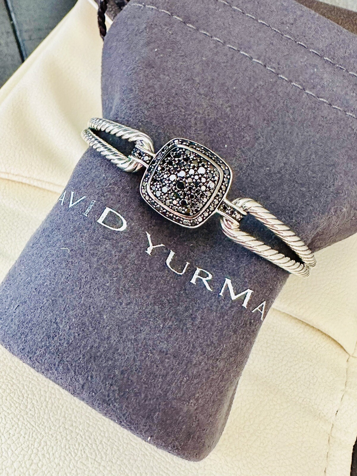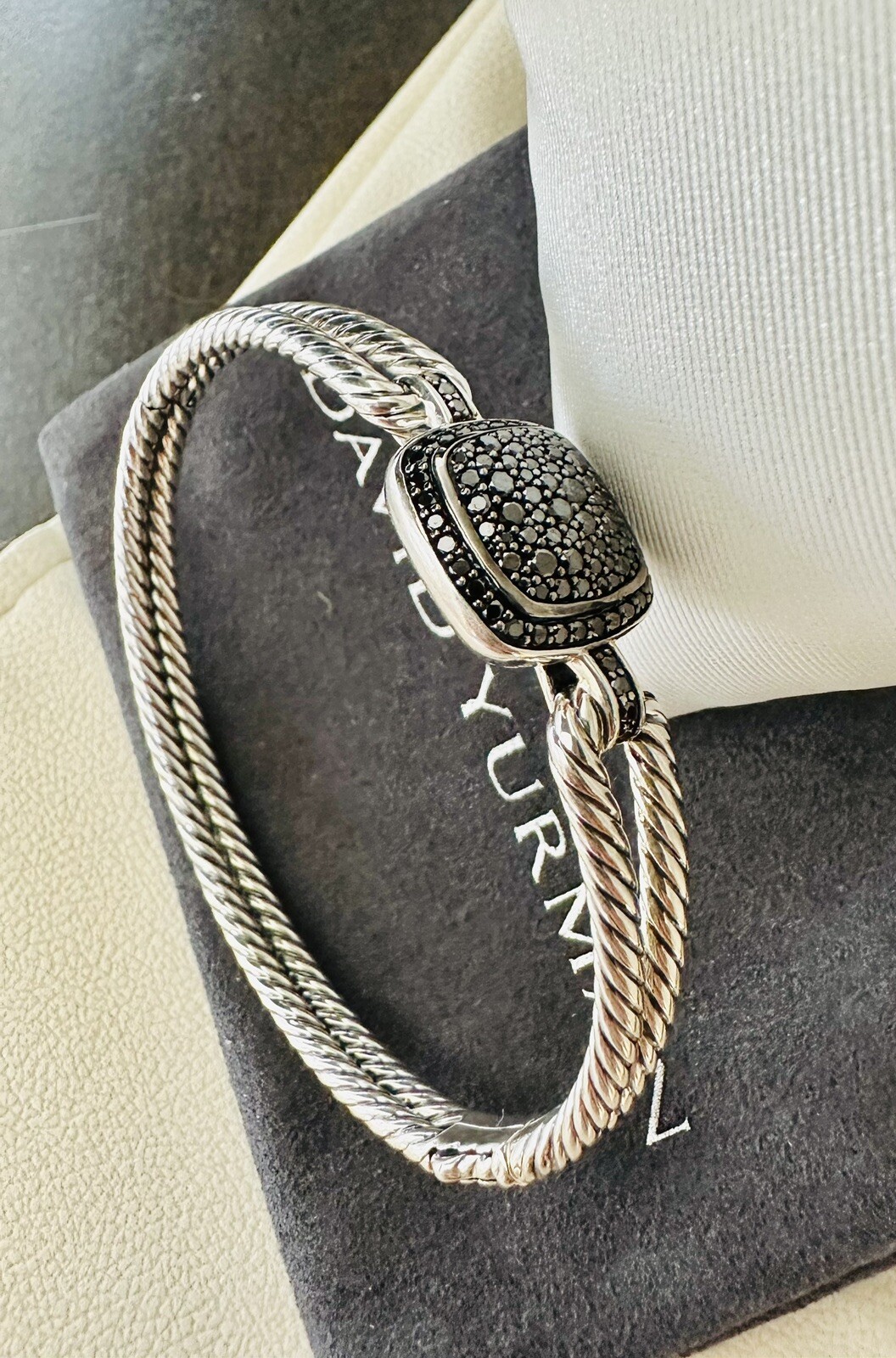 Ladies David Yurman Sterling Albion Bracelet Cuff With Black Diamond ~ 0.73cts