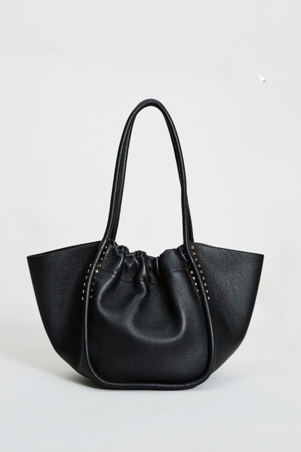 Italian Nappa Leather Tote Bag with Top Ruching & Gold Stud accents.