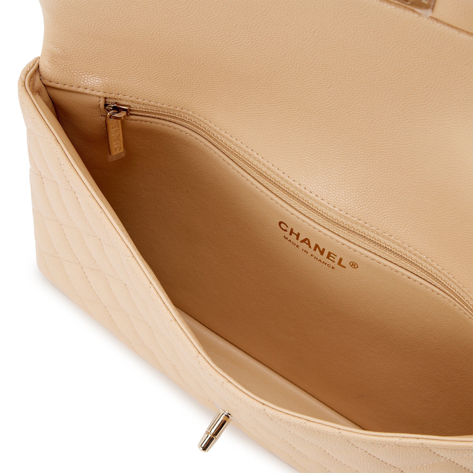 Chanel Light Beige Clair Quilted Caviar Classic Clutch Gold Hardware, 2019The interior is lined in a beige leatherIncludes authenticity card, original tag and dust bagThis item is final sale and not eligible for return