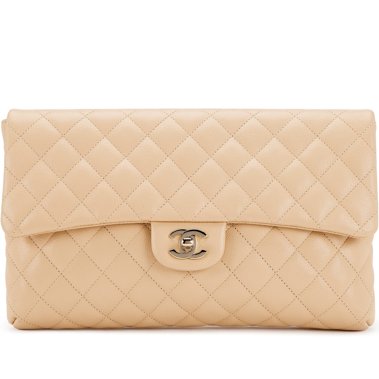 Light Beige Clair Quilted Caviar Classic Clutch Gold Hardware, 2019