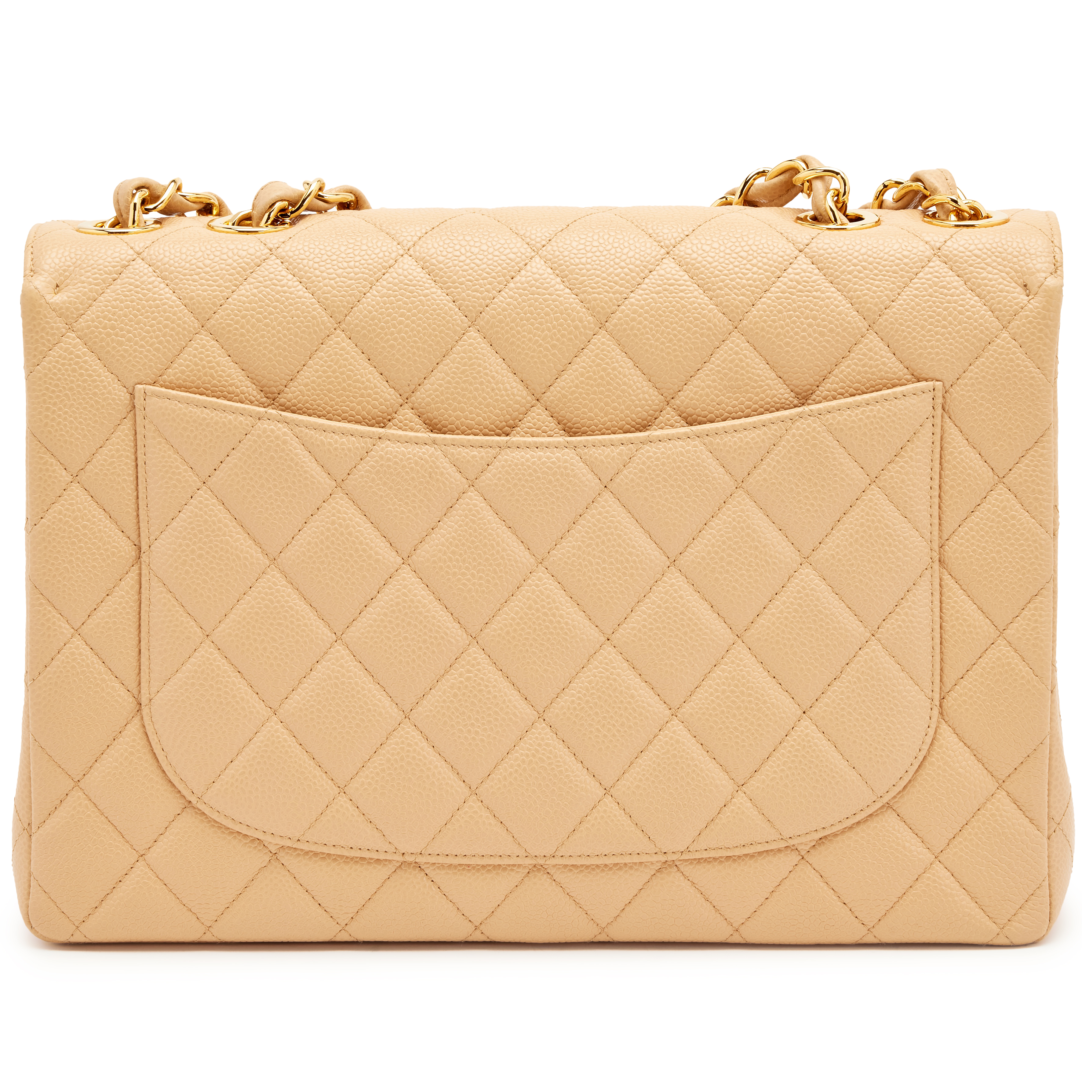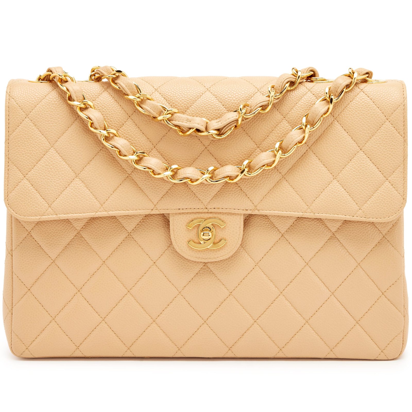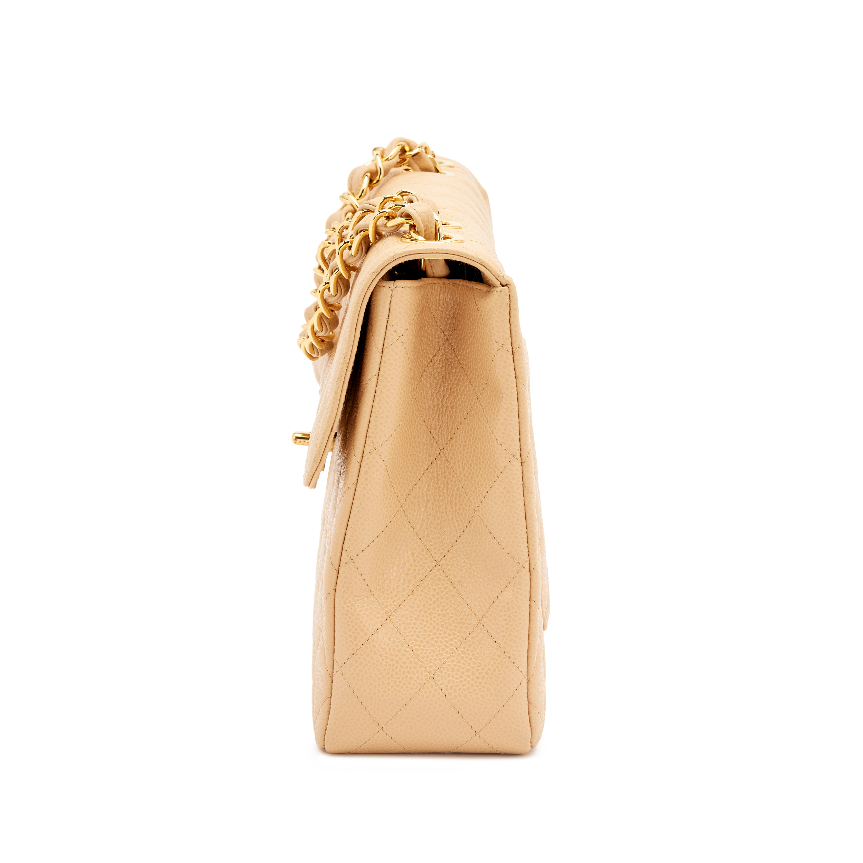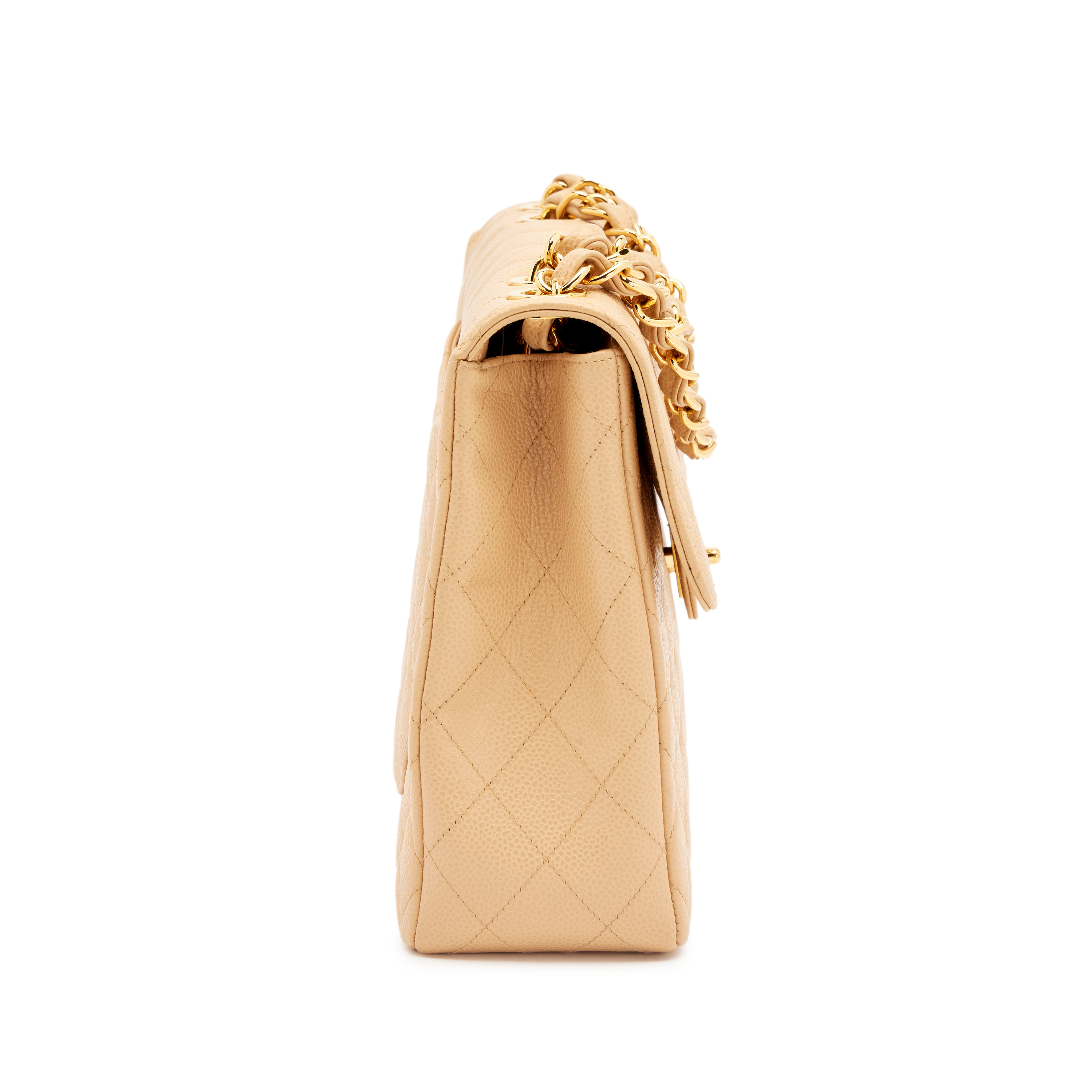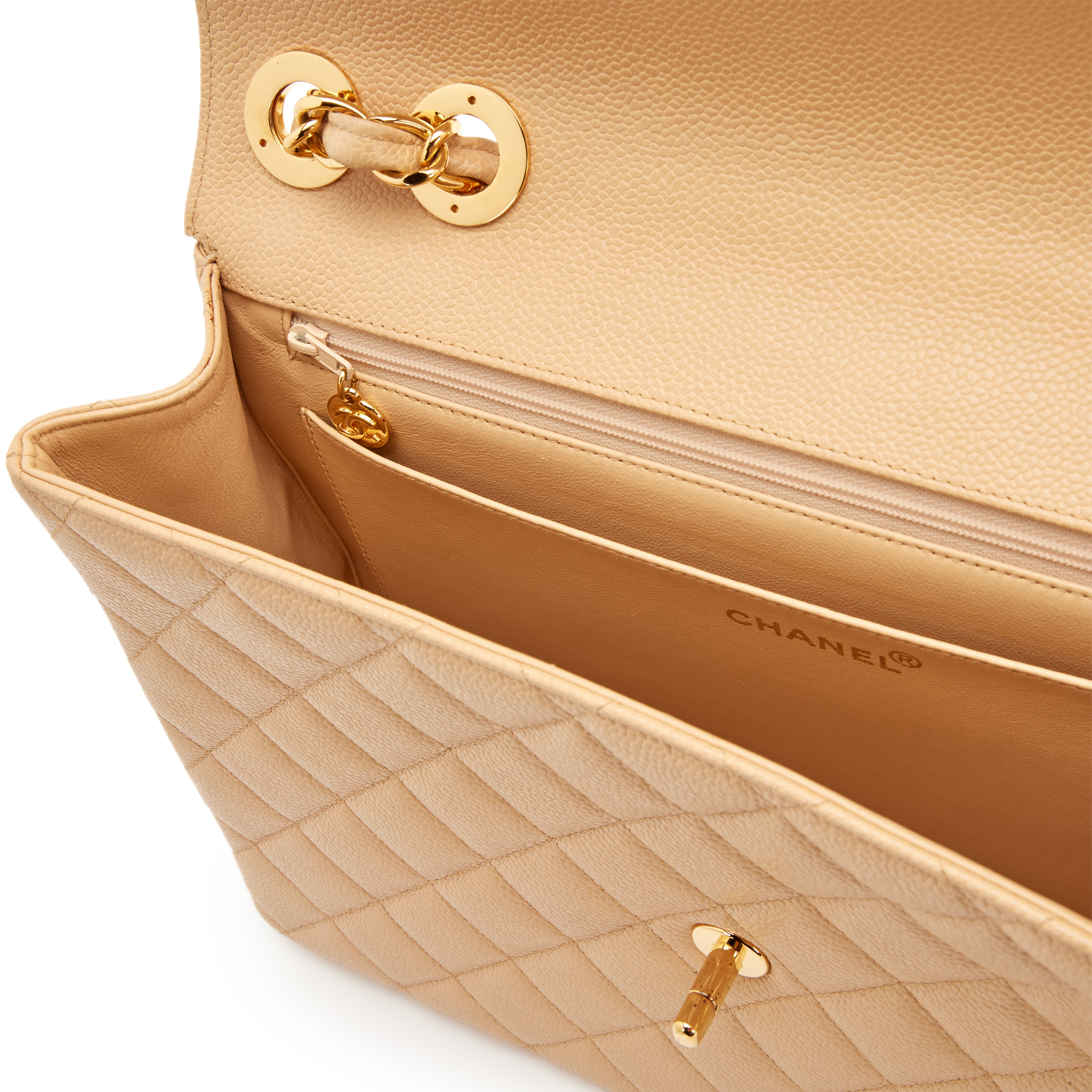 Chanel Light Beige Quilted Caviar Square Classic Jumbo Flap Bag Gold Hardware, 1997-1999The interior is lined in a tonal leatherIncludes authenticity card and dust bagThis item is final sale and not eligible for return