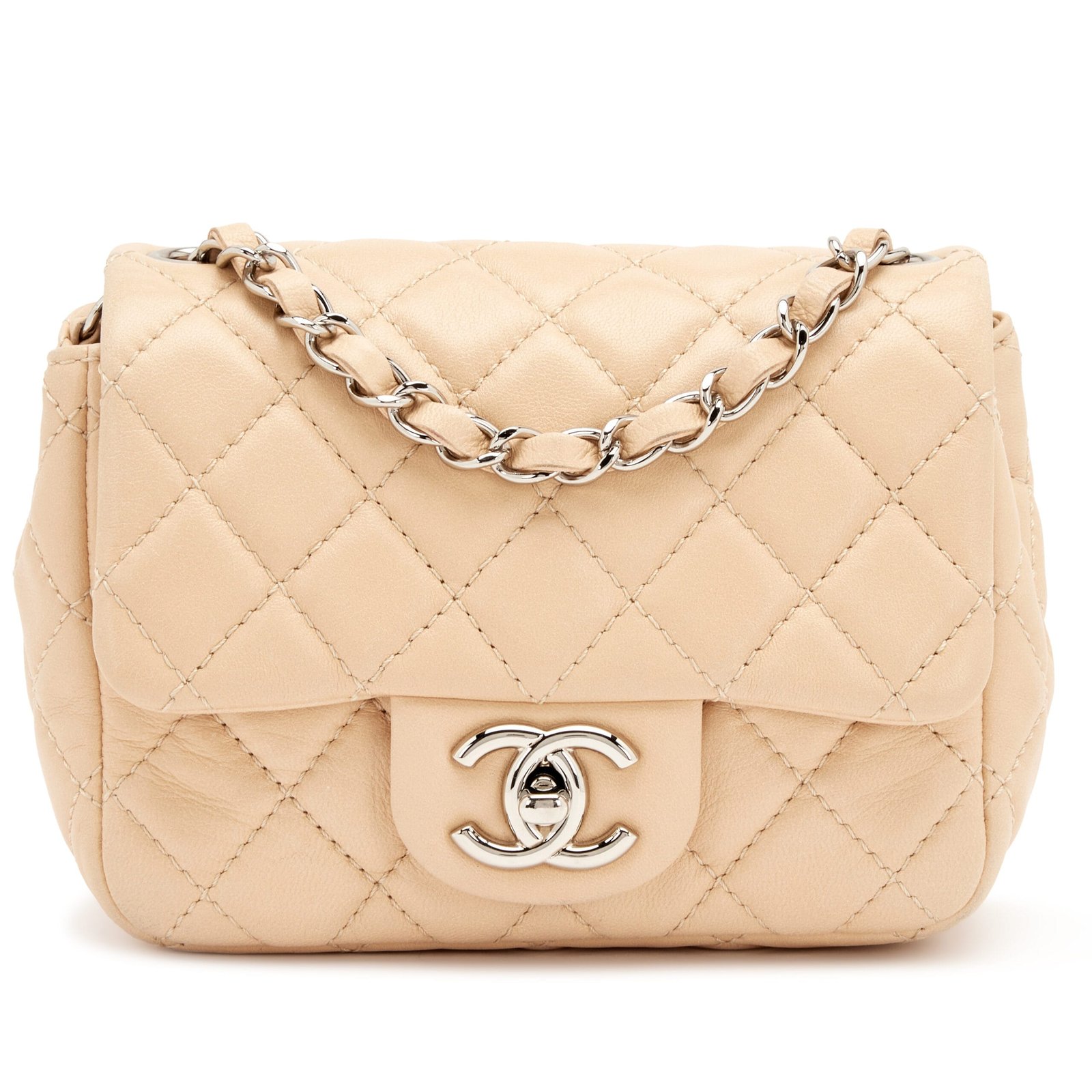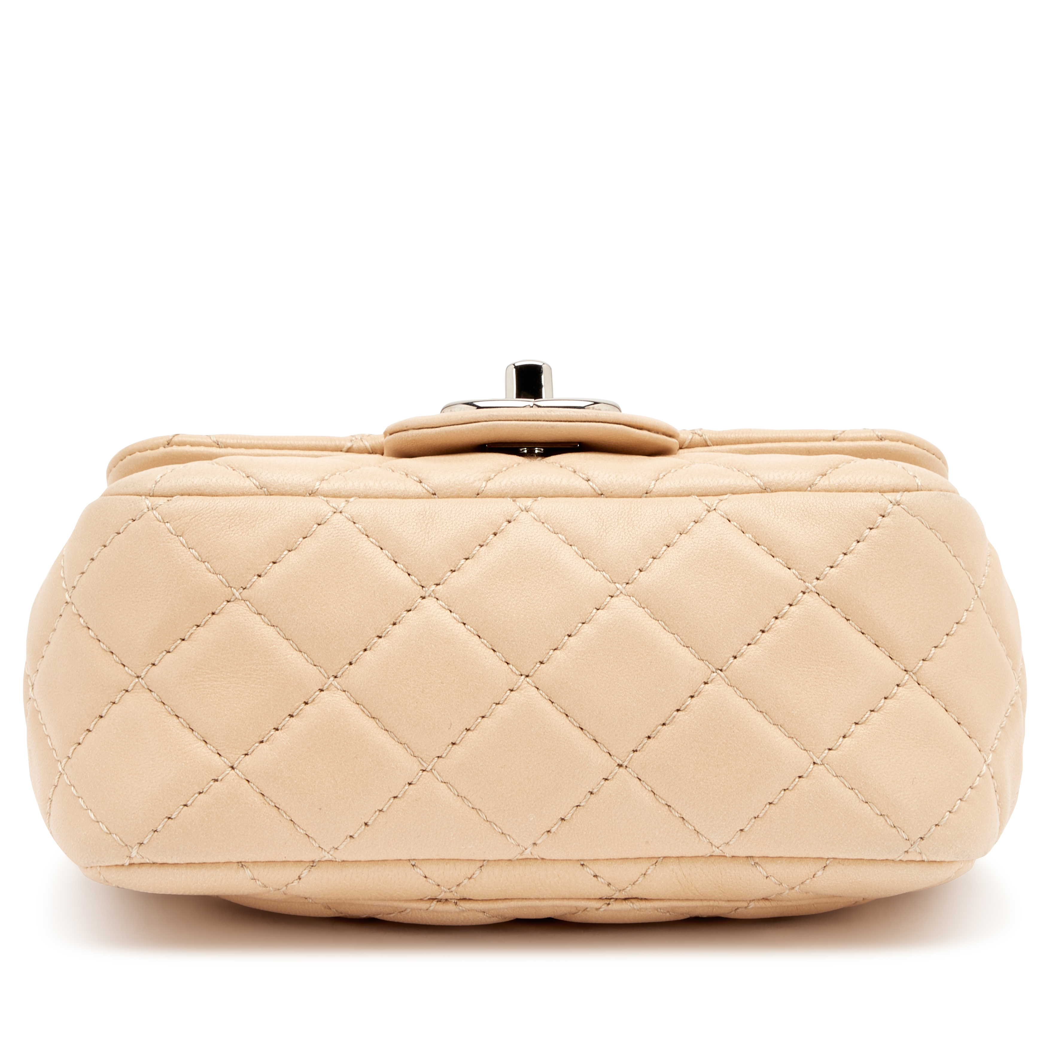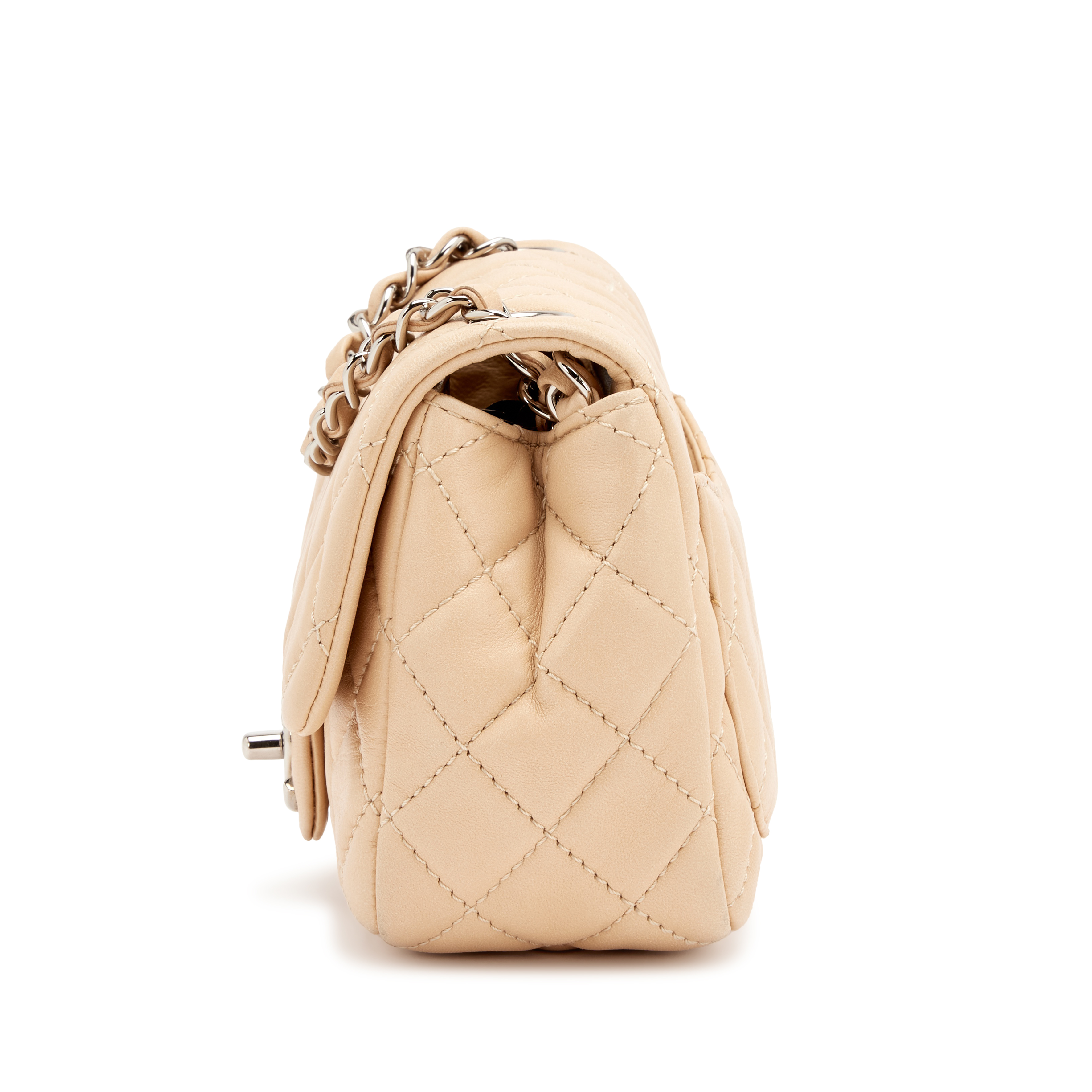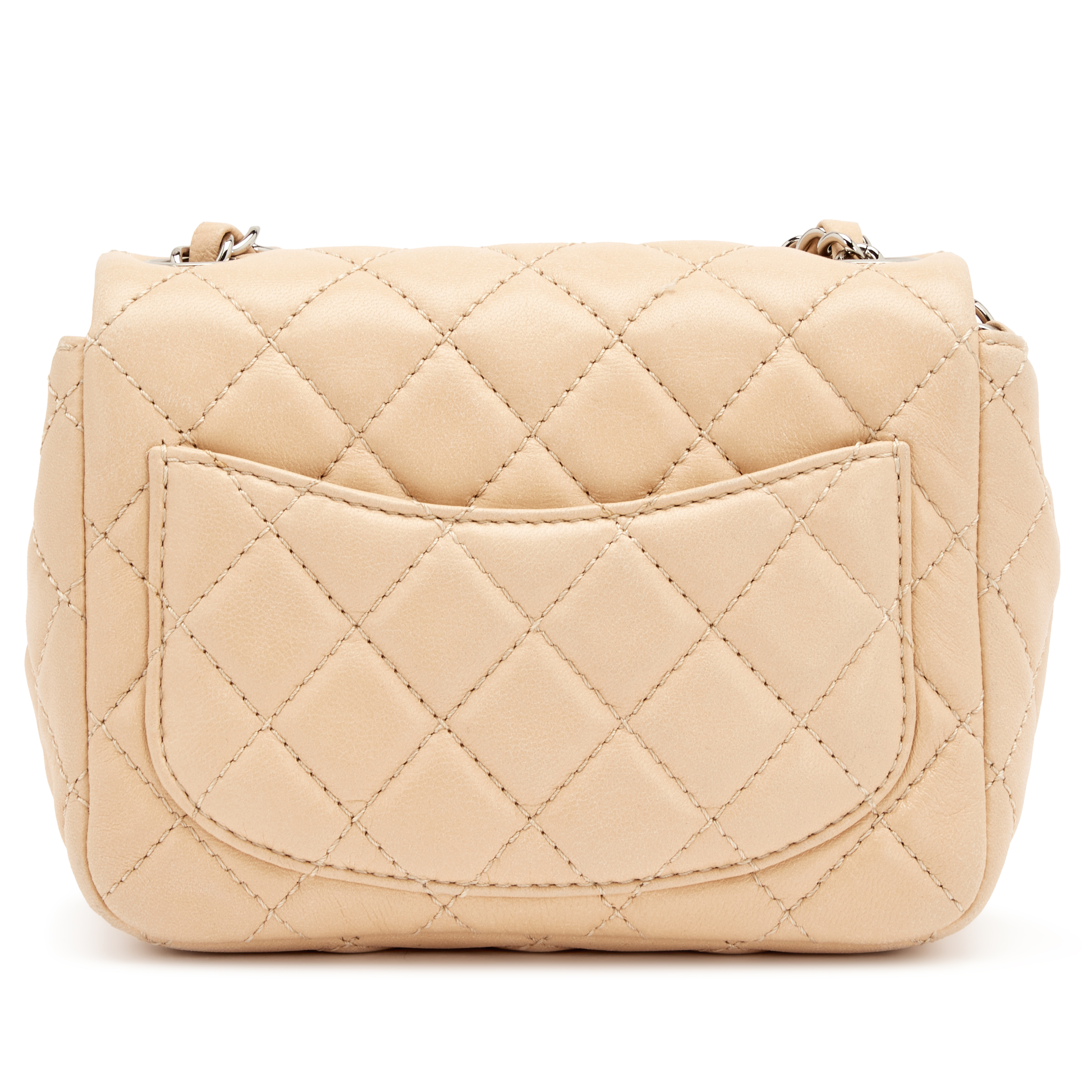 Chanel Light Beige Quilted Lambskin Mini Square Classic Single Flap Silver Hardware, 2008-2009