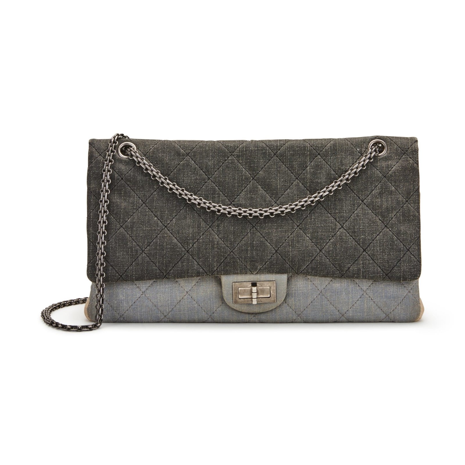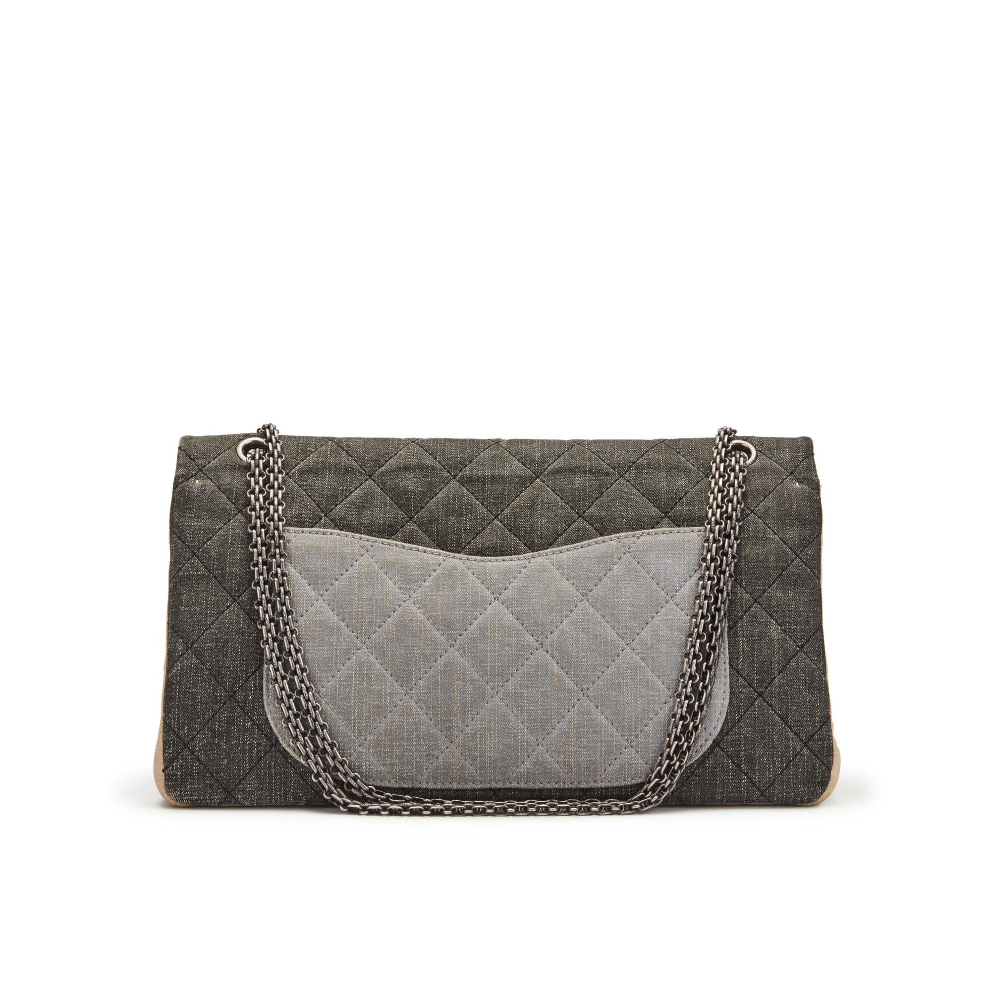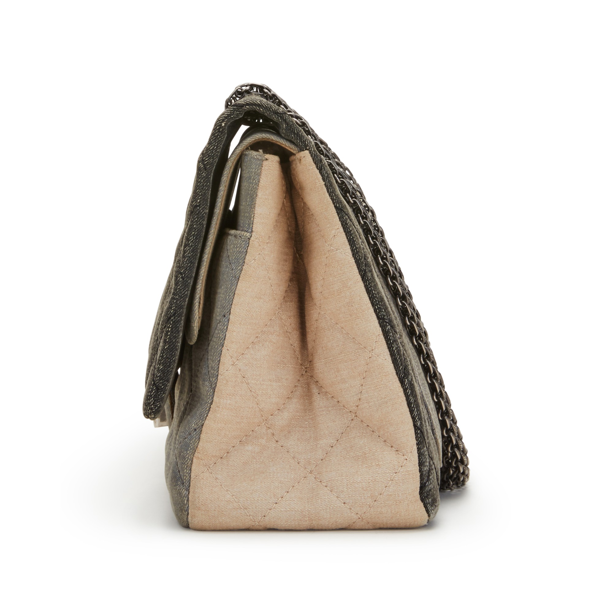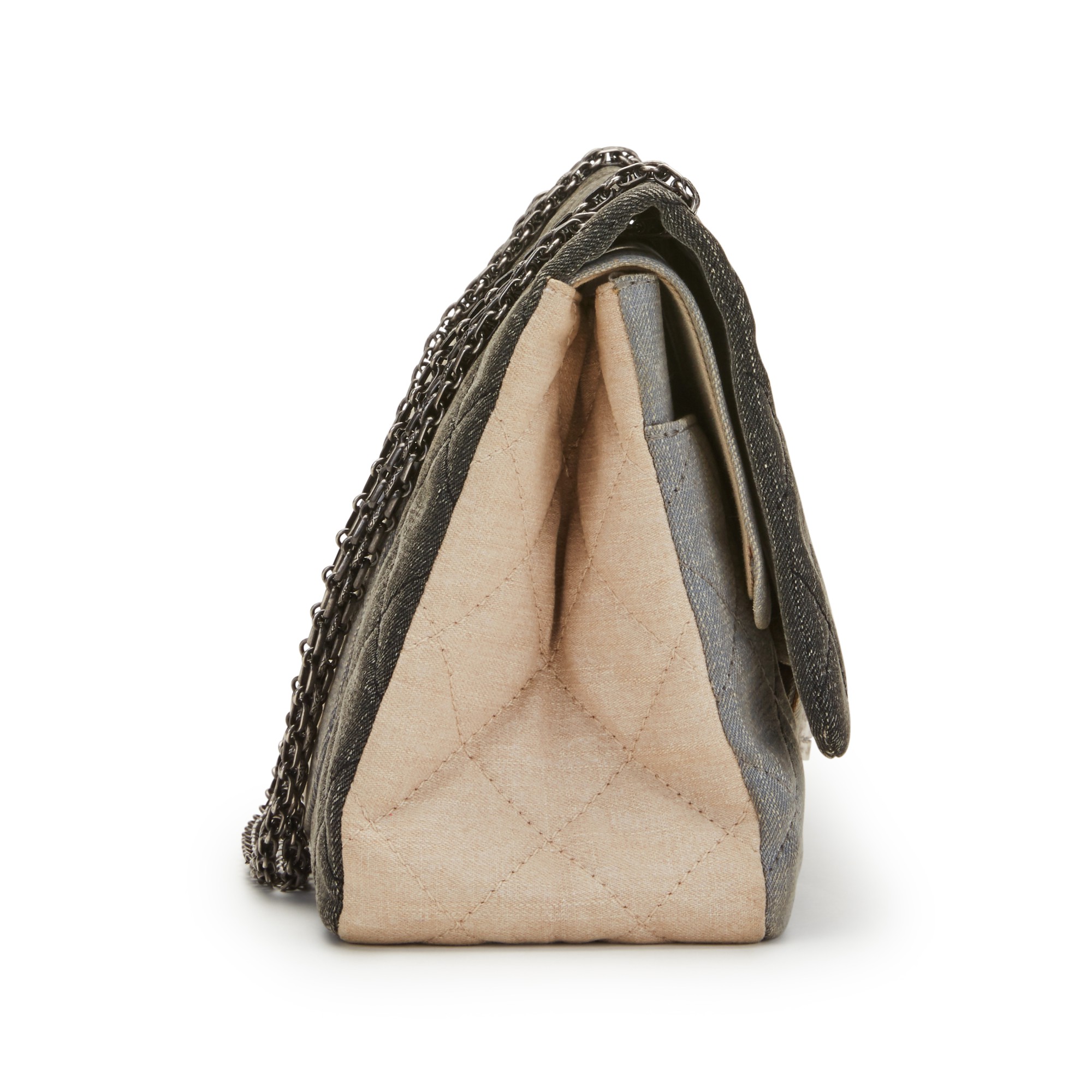 Chanel Light Blue, Dark Grey, & Beige Quilted Denim Double Flap 2.55 Reissue 228 Ruthenium Hardware, 2009/2010The interior is lined with canvasThis item is final sale and not eligible for return