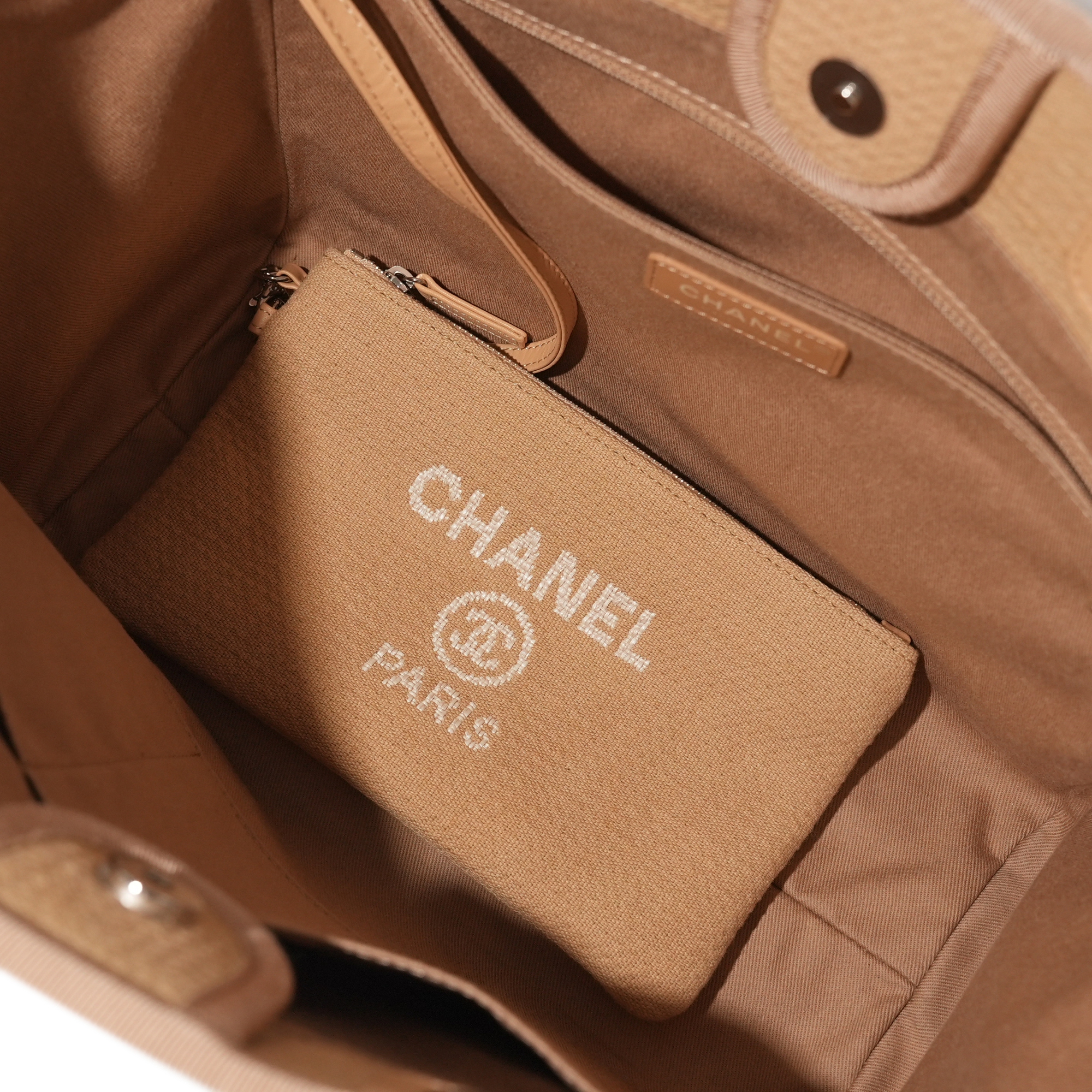 Chanel Light Brown Canvas Deauville Tote Silver Hardware, 2021The interior is lined in tonal textile materialIncludes dust bag and boxThis item is final sale and not eligible for return