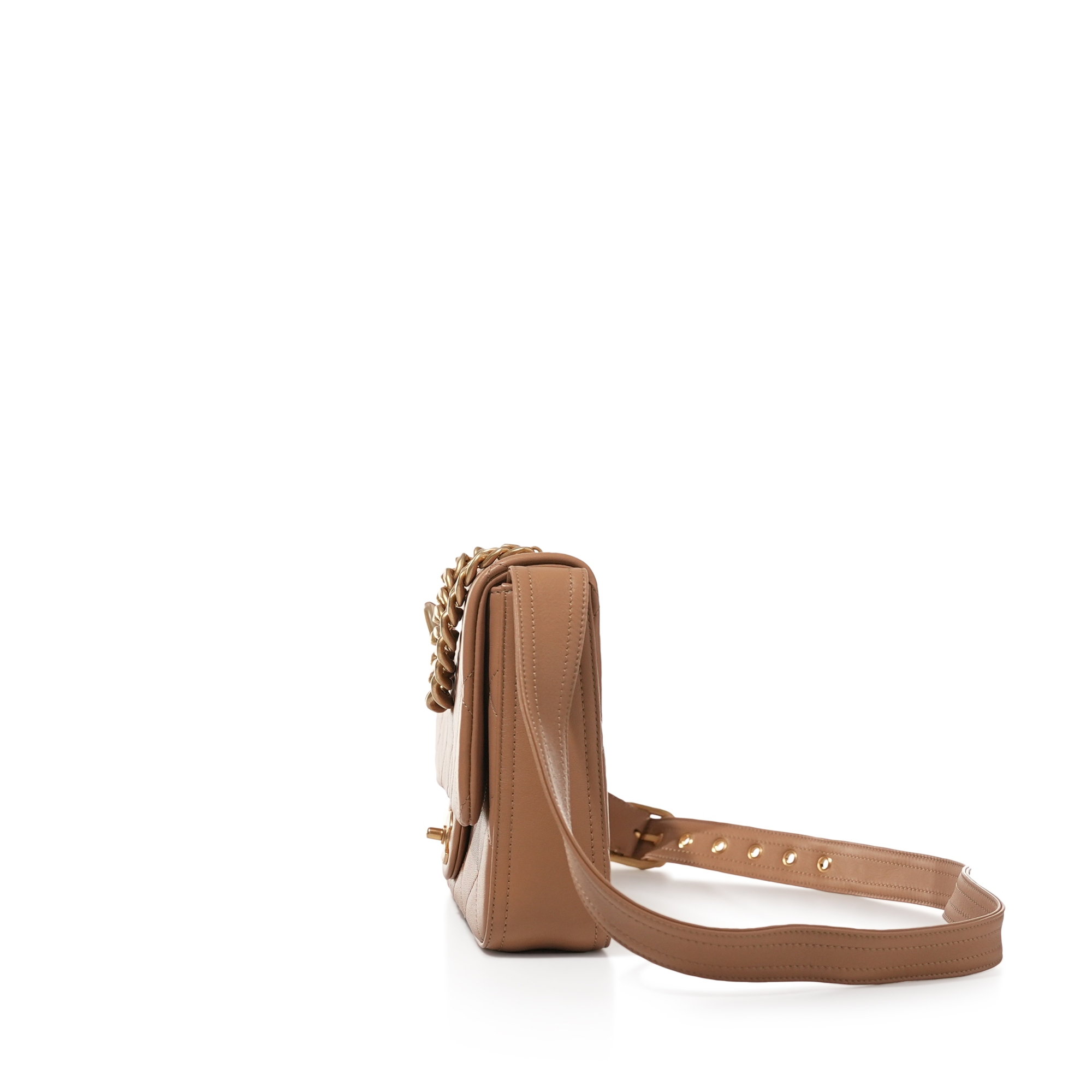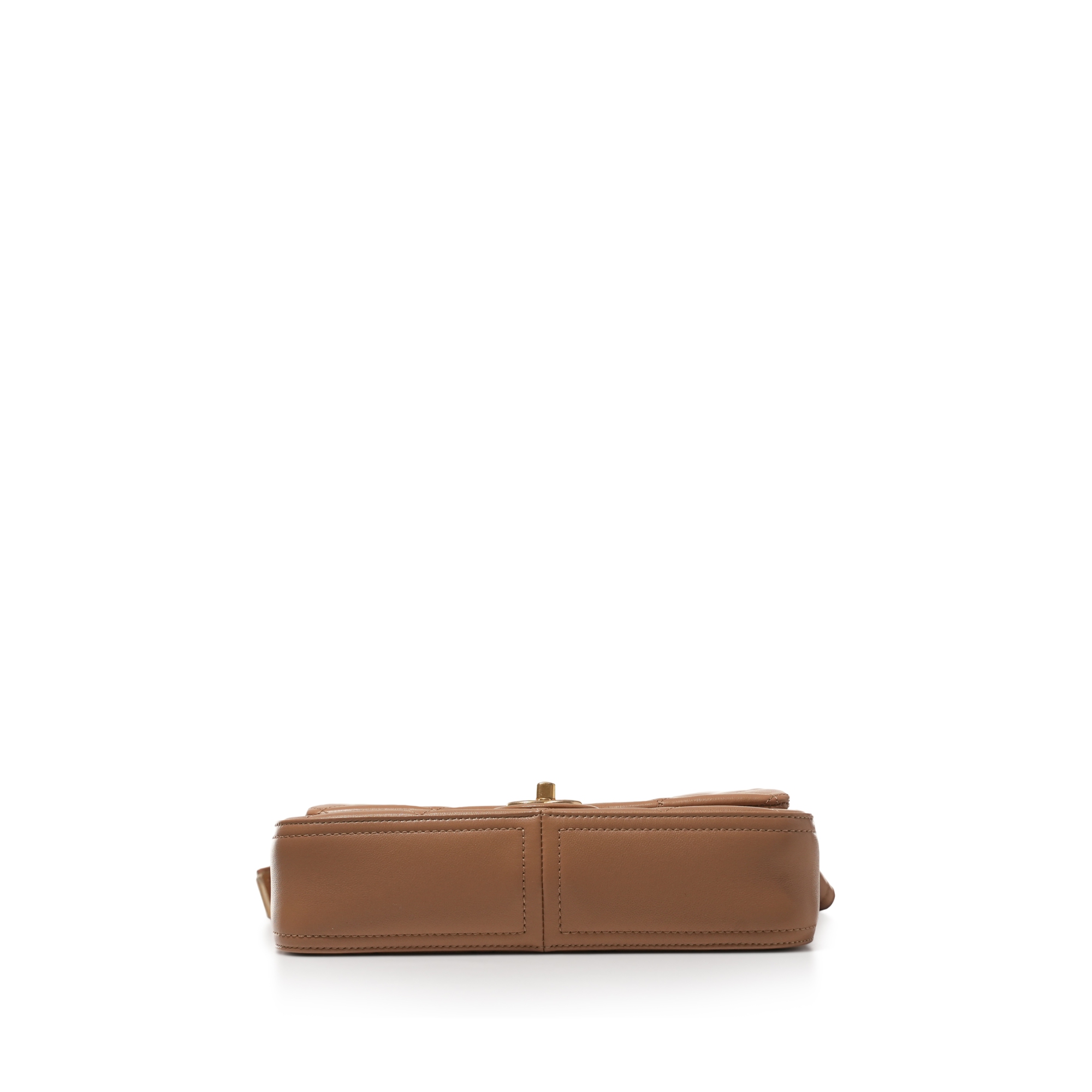 Light Brown Quilted Lambskin Crossbody Flap Bag Aged Gold Hardware