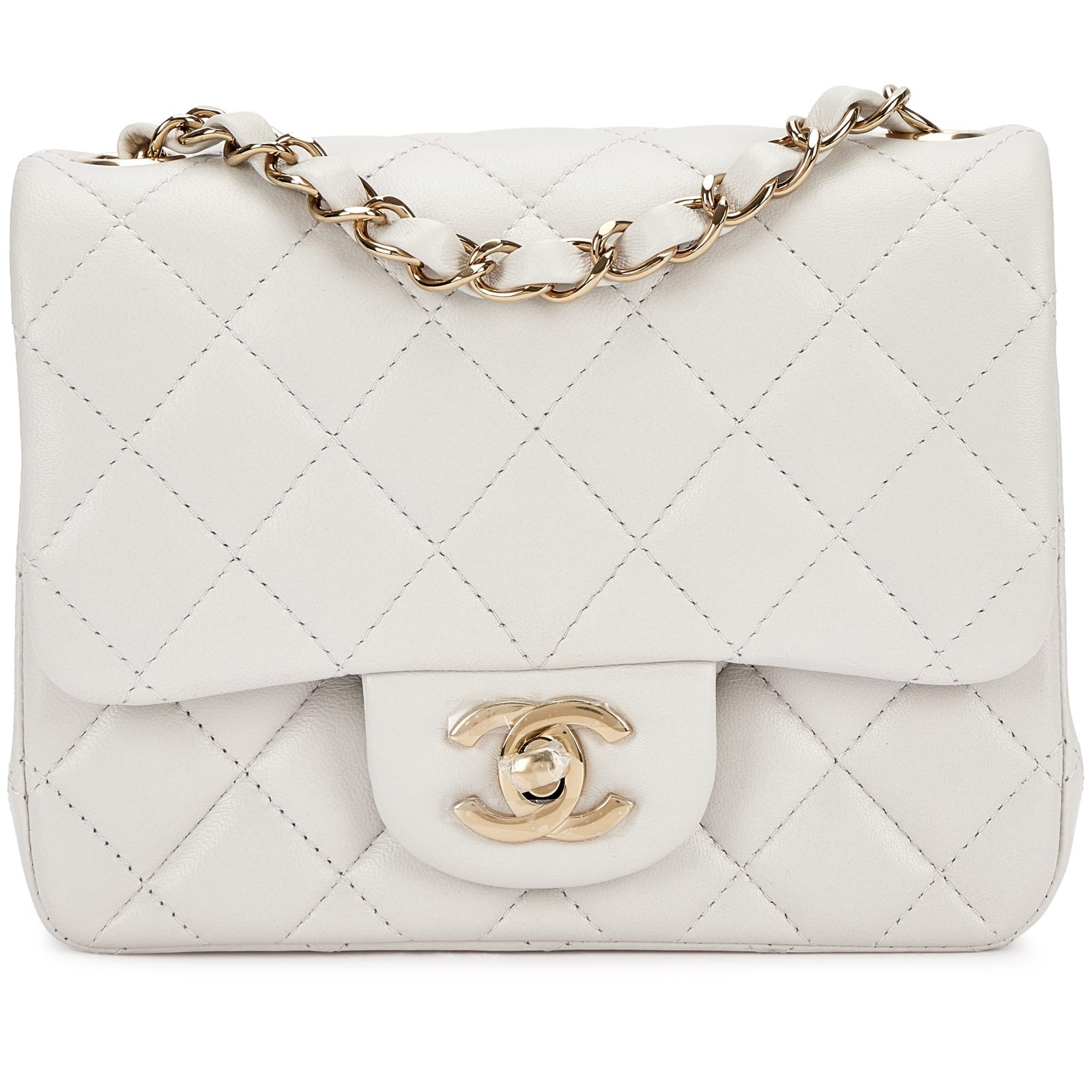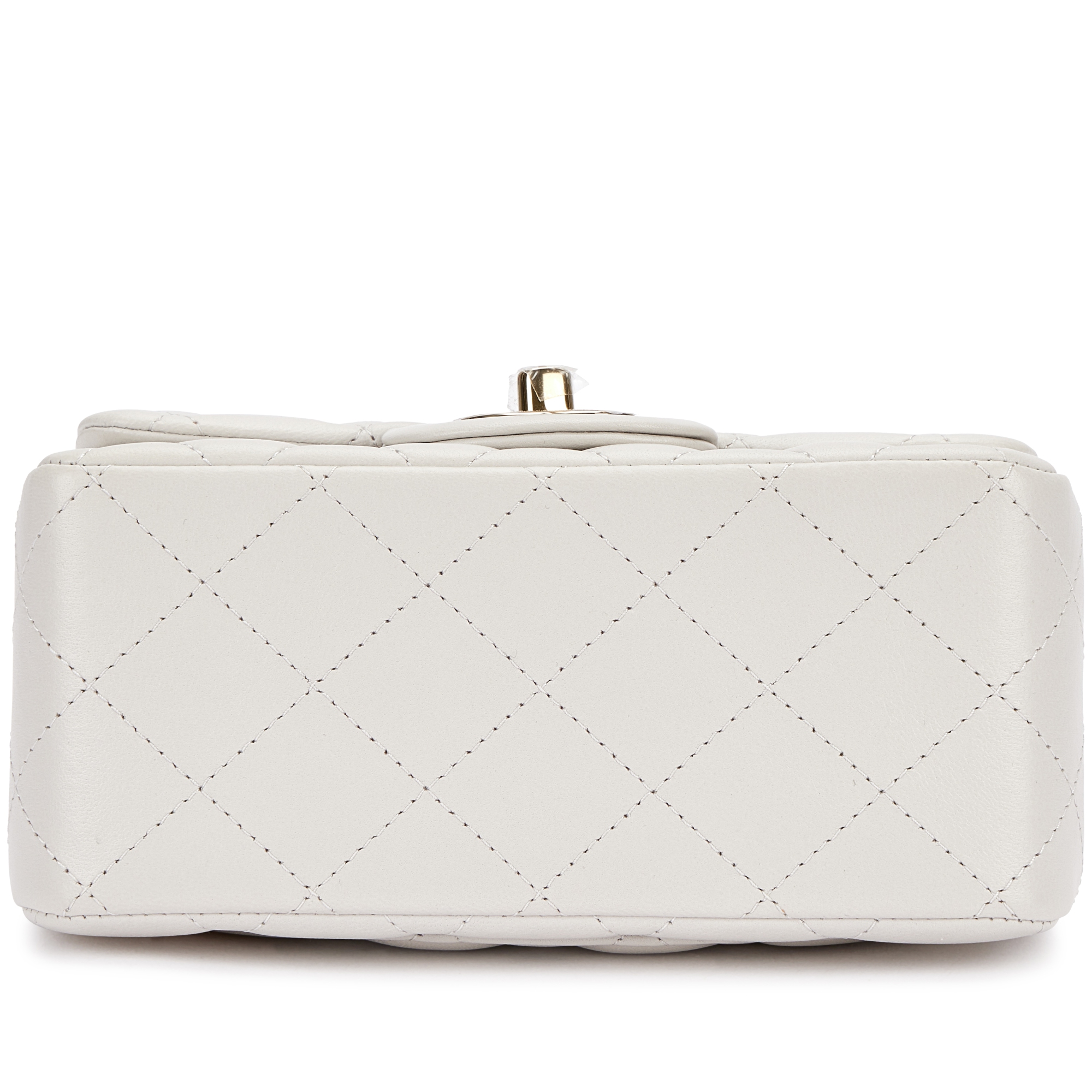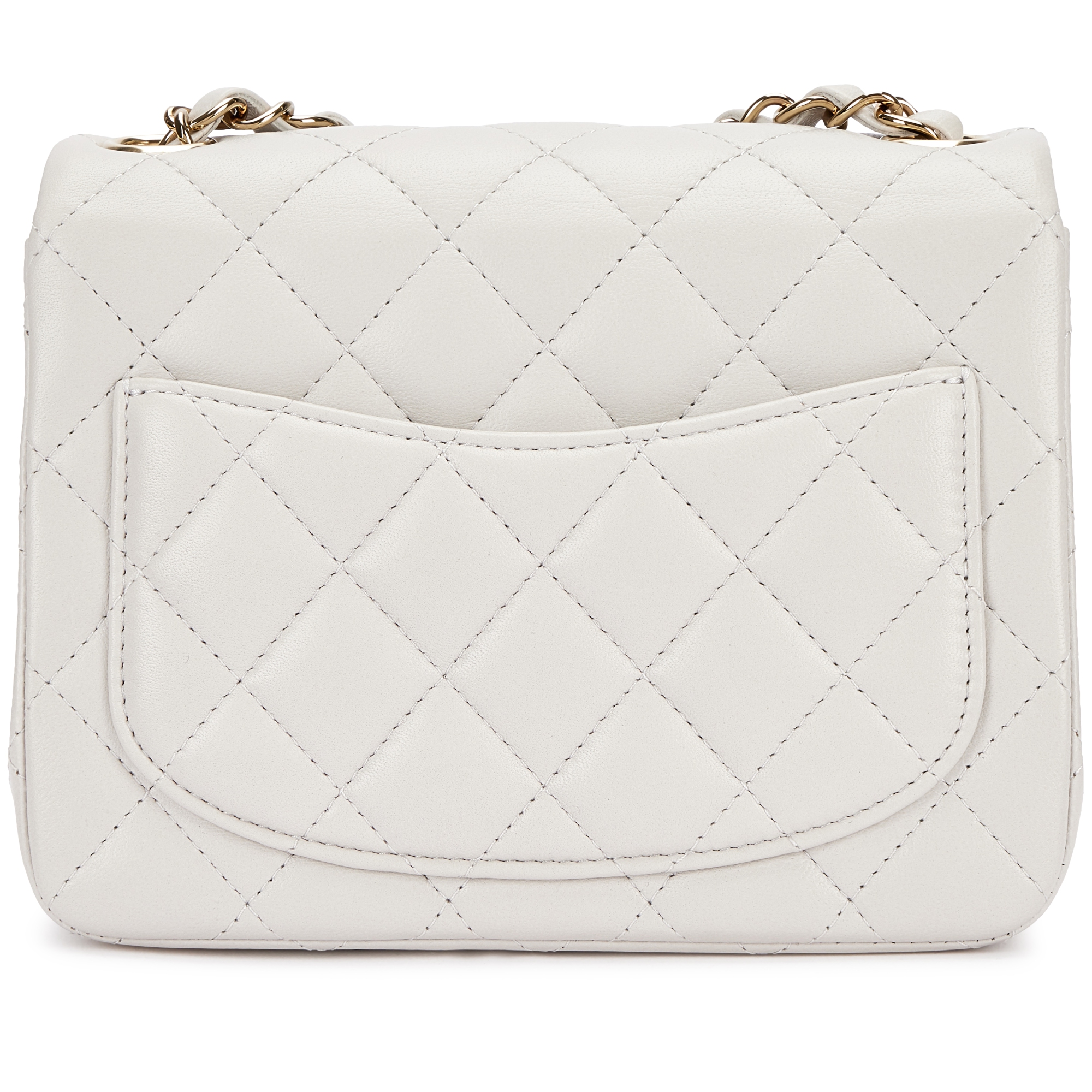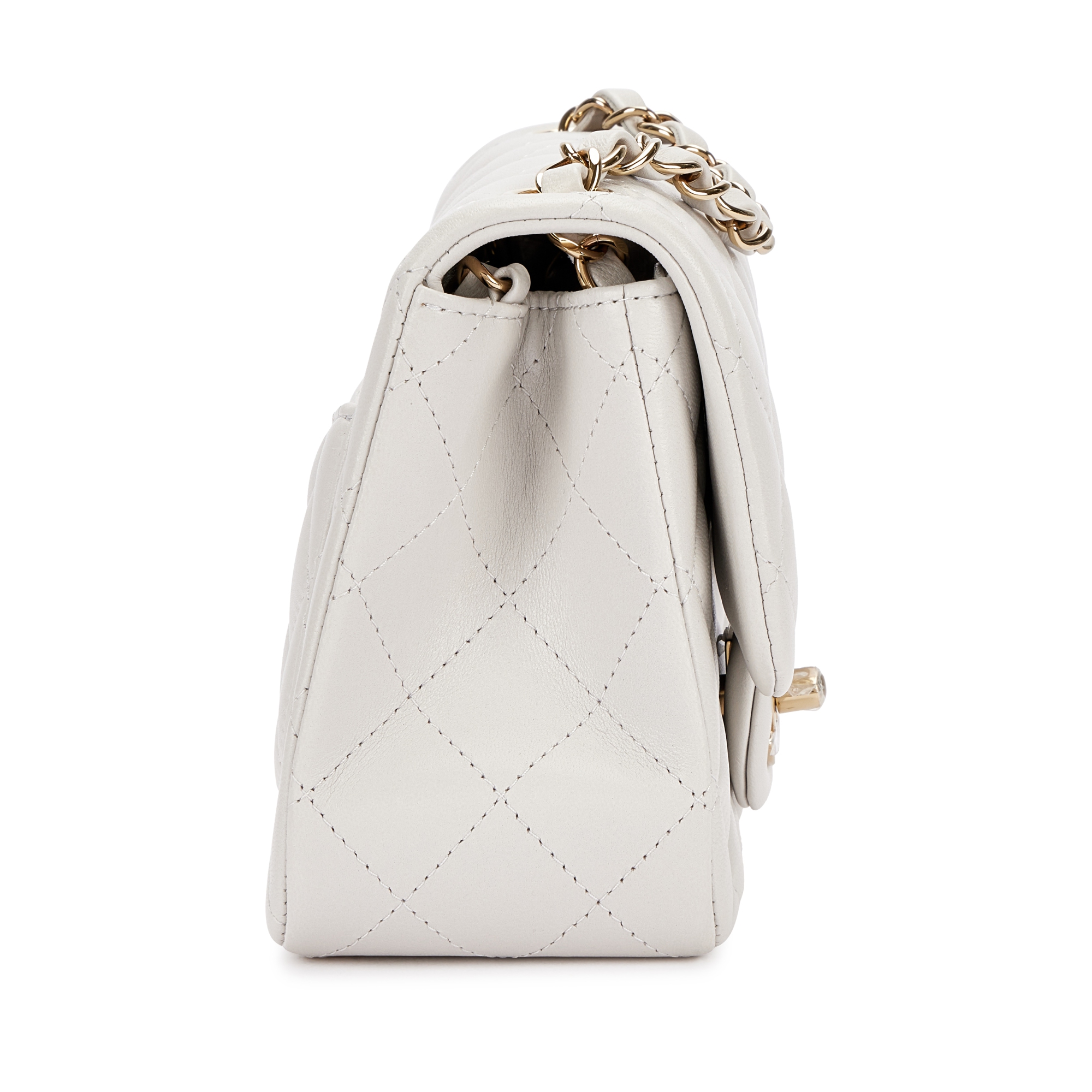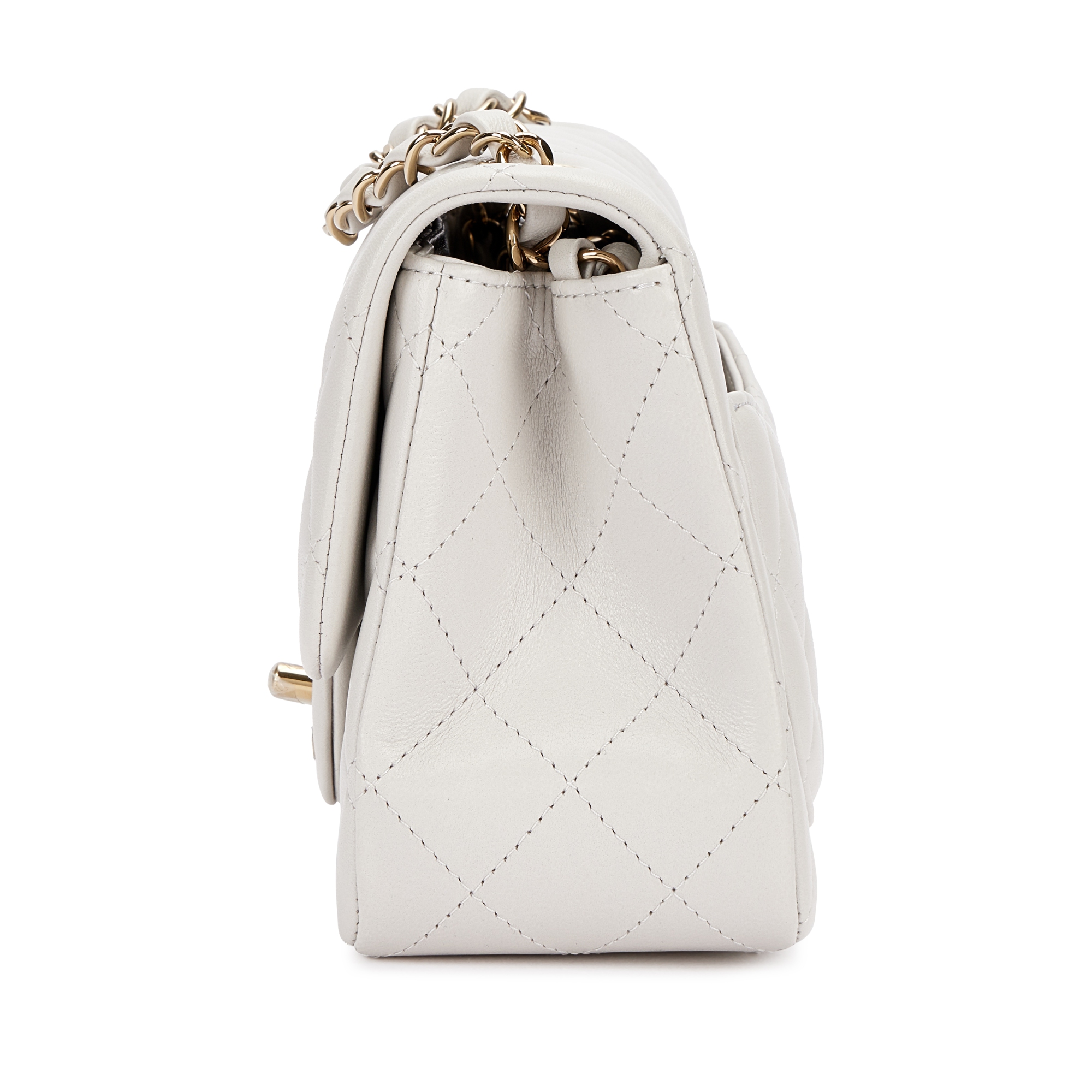 Chanel Light Grey Quilted Lambskin Flap Bag Pale Gold HardwareThe interior is lined in tonal leatherIncludes felt, dust bag and boxThis item is final sale and not eligible for return