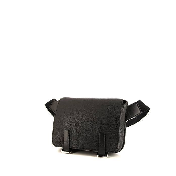 Chic Loewe Military bumbag clutch-belt in black grained leather, hardware in silver metal, one adjustable belt in black leather allowing the clutch to be adjust to the waist.