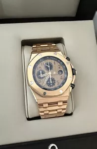 Gorgeous men’s all solid 18k rose gold Audemars Piguet Royal Oak Offshore chronograph aka “The Brick”. This watch is known as one of the heaviest men’s all gold watches in the market hence the name The Brick. Watch is gorgeous and keeping accurate running time. $90,400 MSRP!