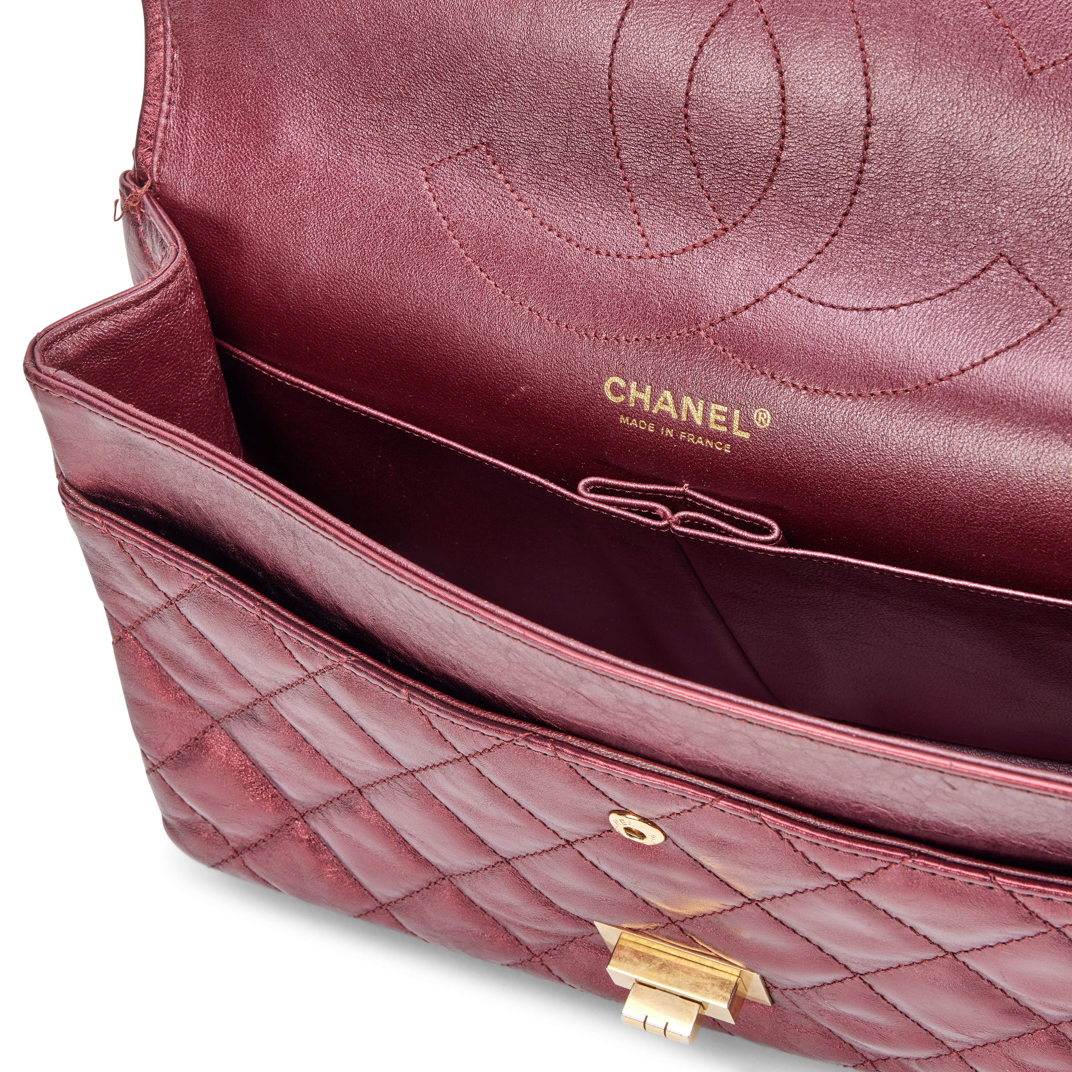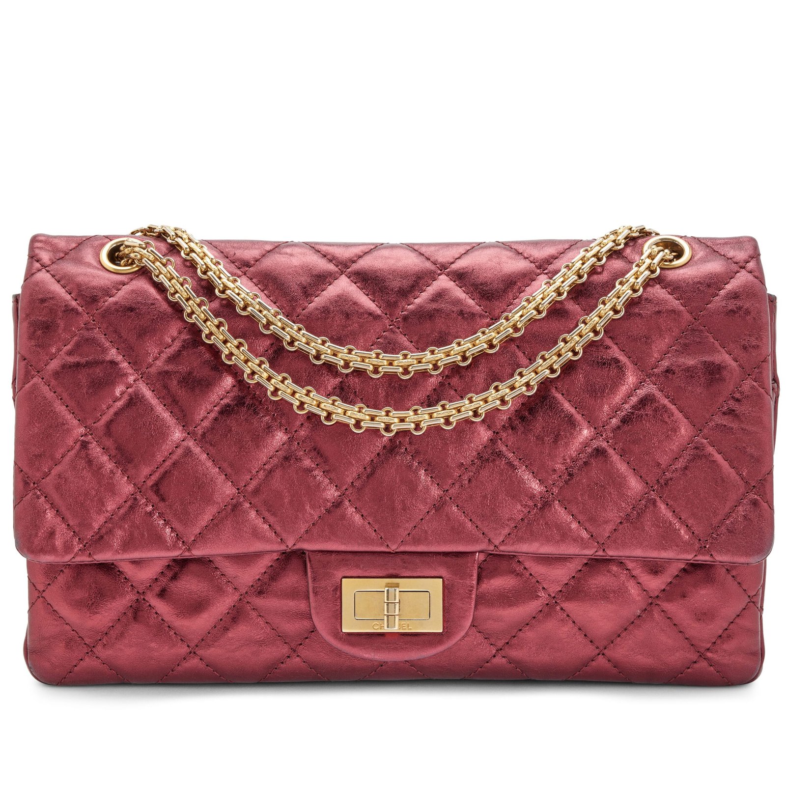 Chanel Metallic Burgundy Quilted Calfskin Reissue 2.55 227 Double Flap Bag Gold Hardware, 2009Interior is lined in a tonal lambskinThis item is final sale and not eligible for return.