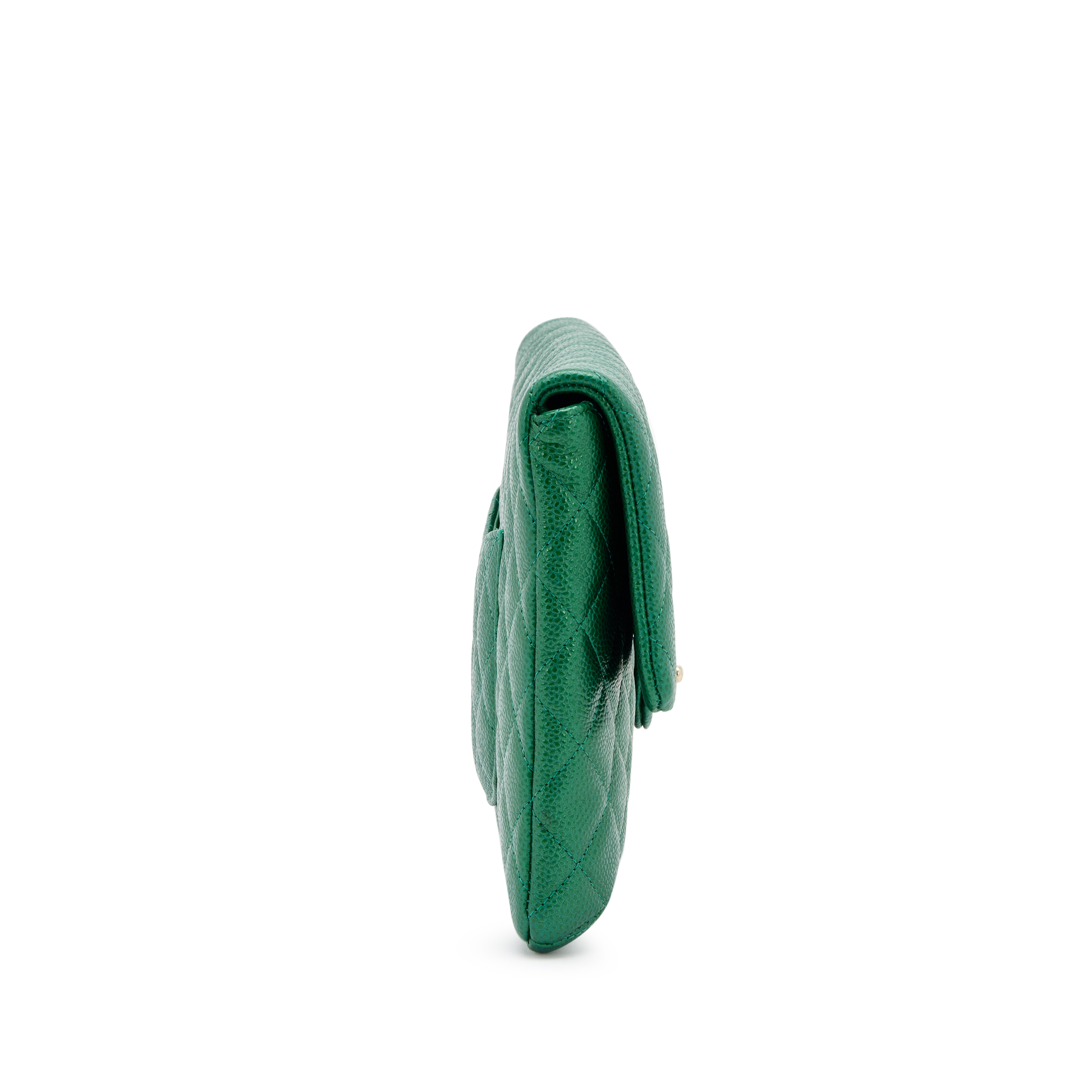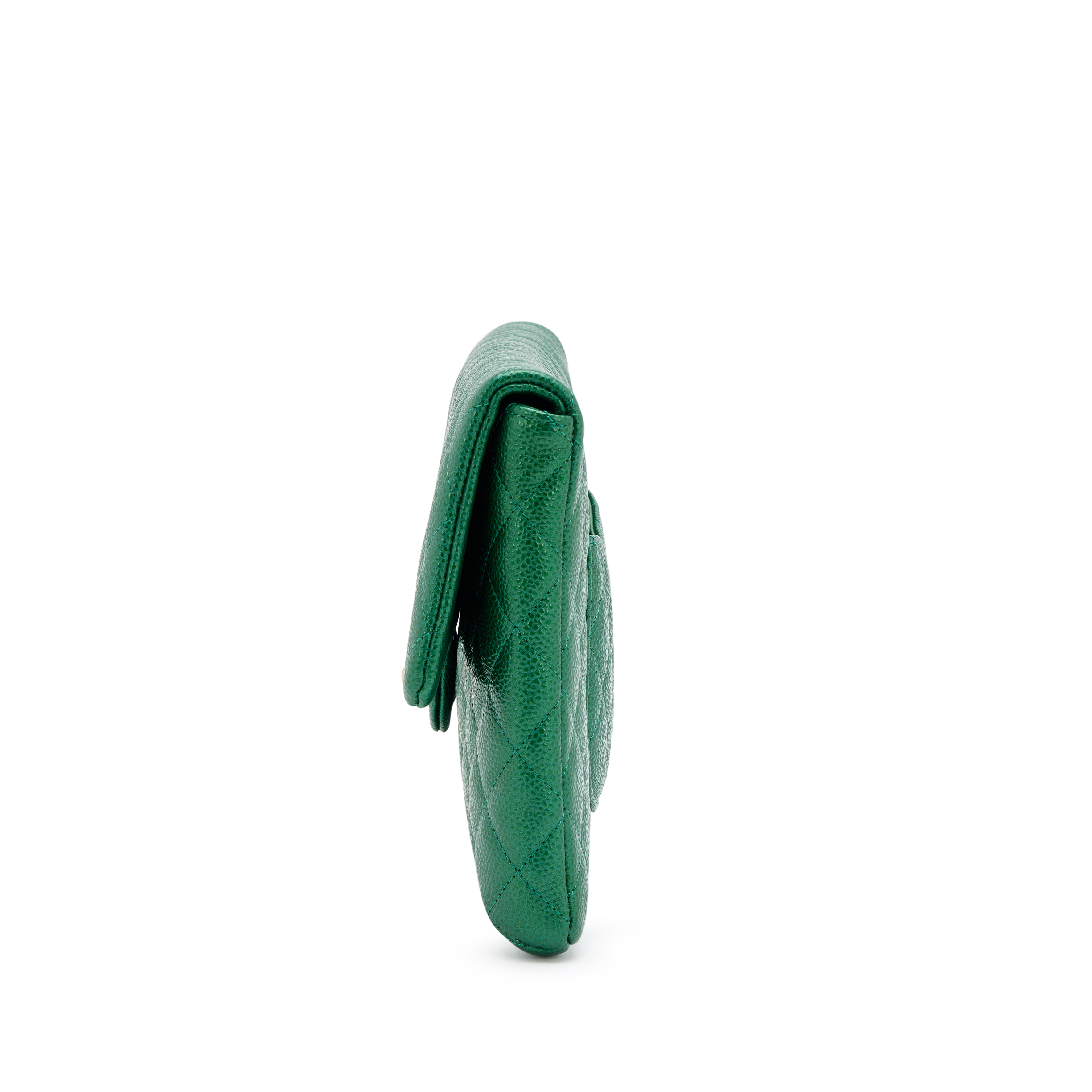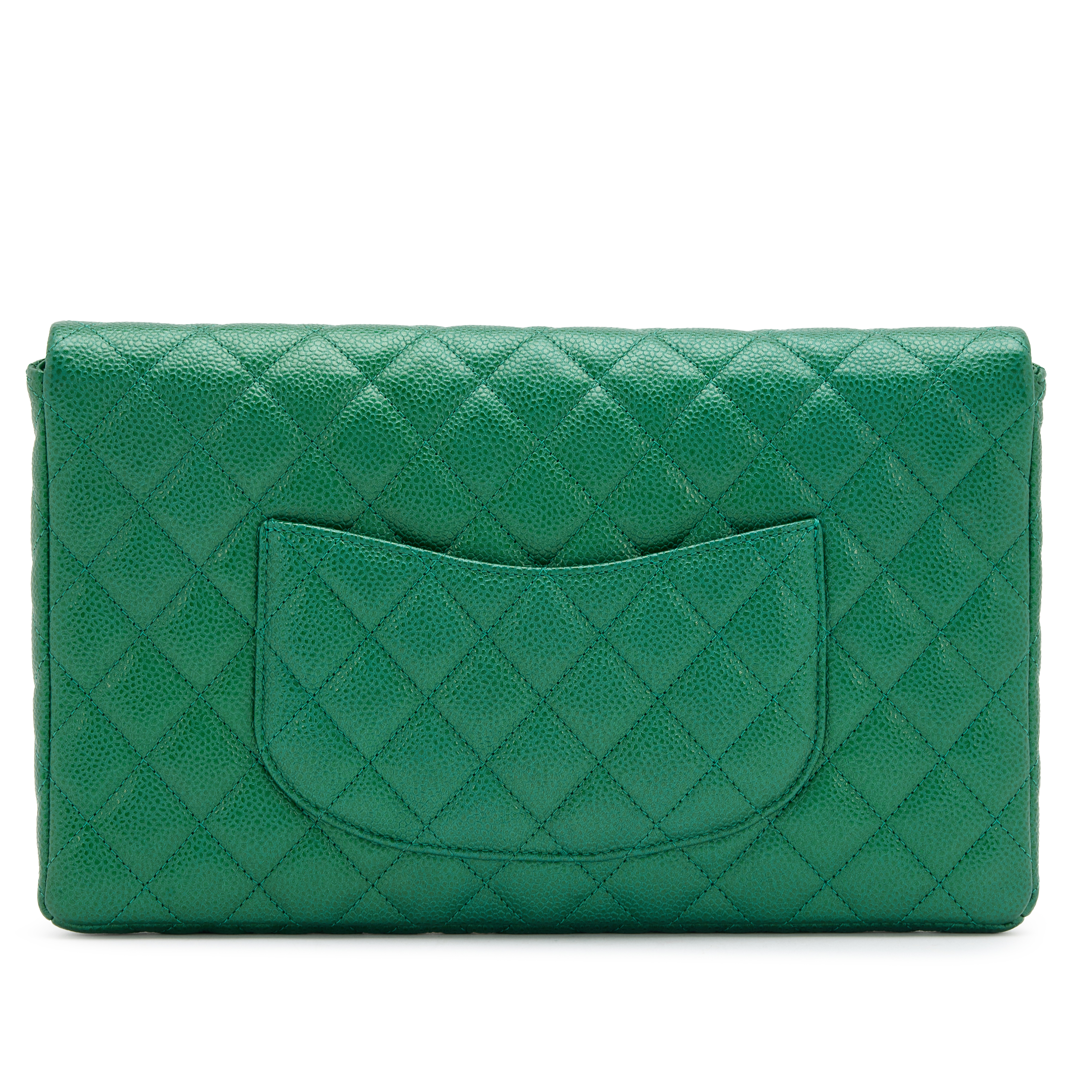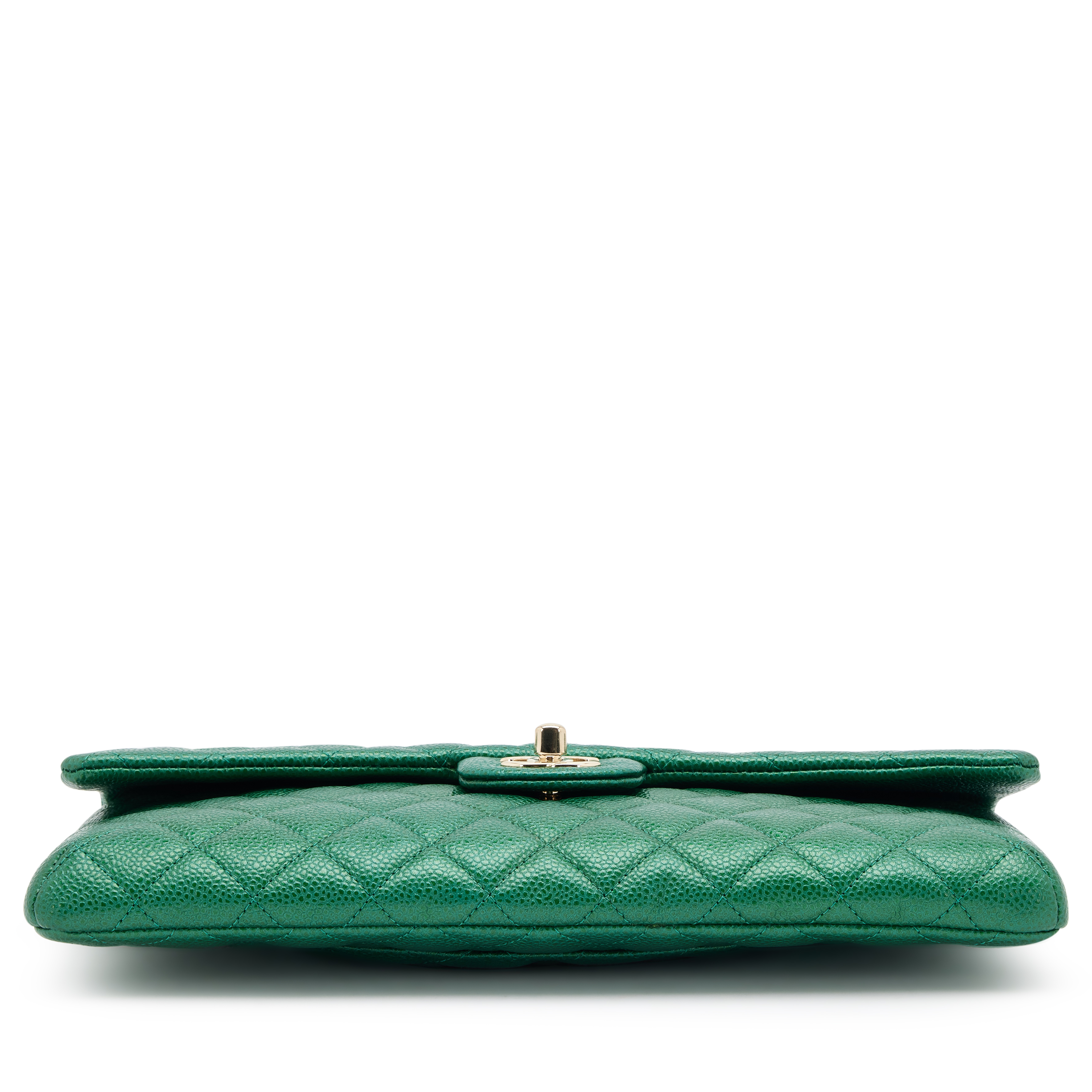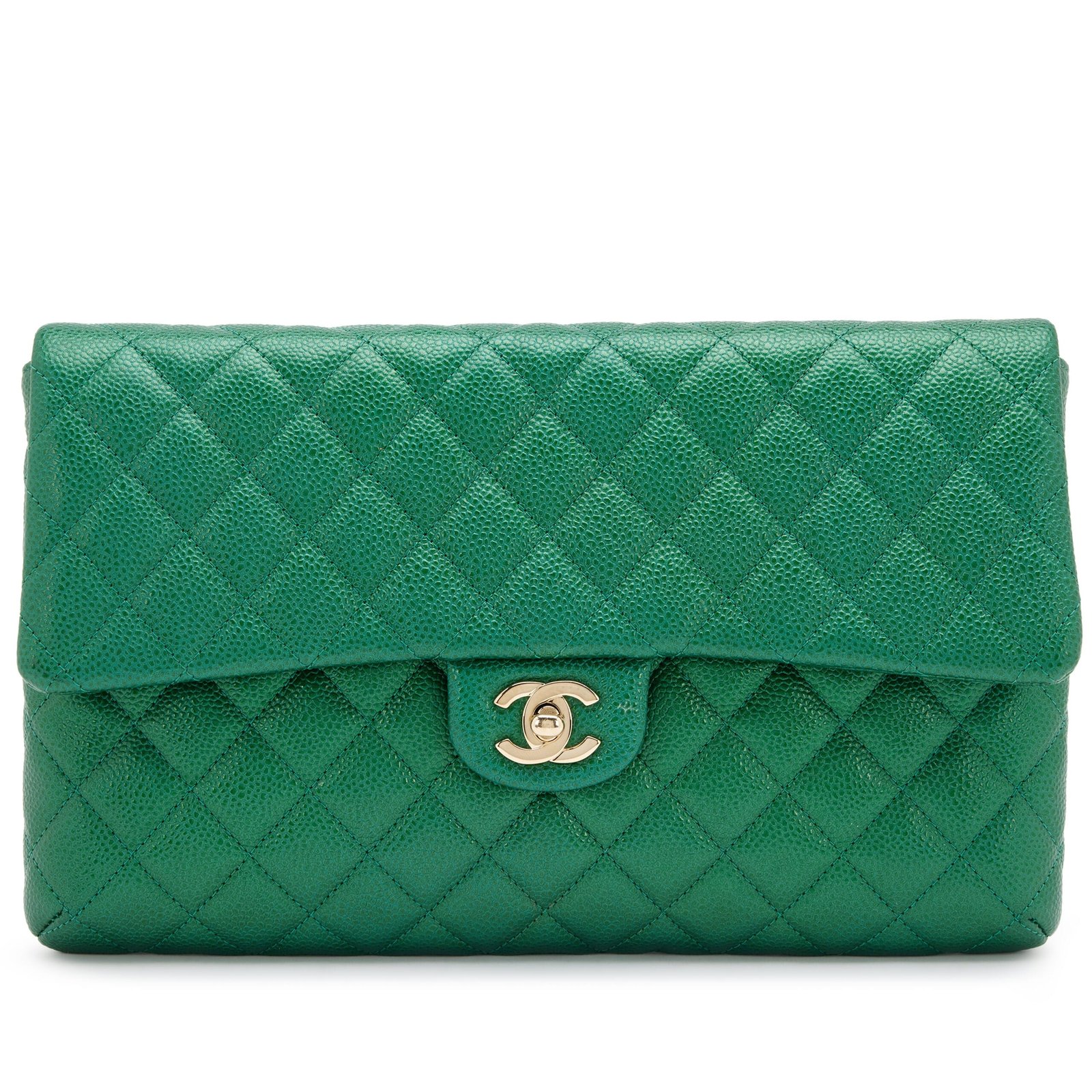 Metallic Pearly Green Quilted Caviar Classic Clutch Gold Hardware, 2018