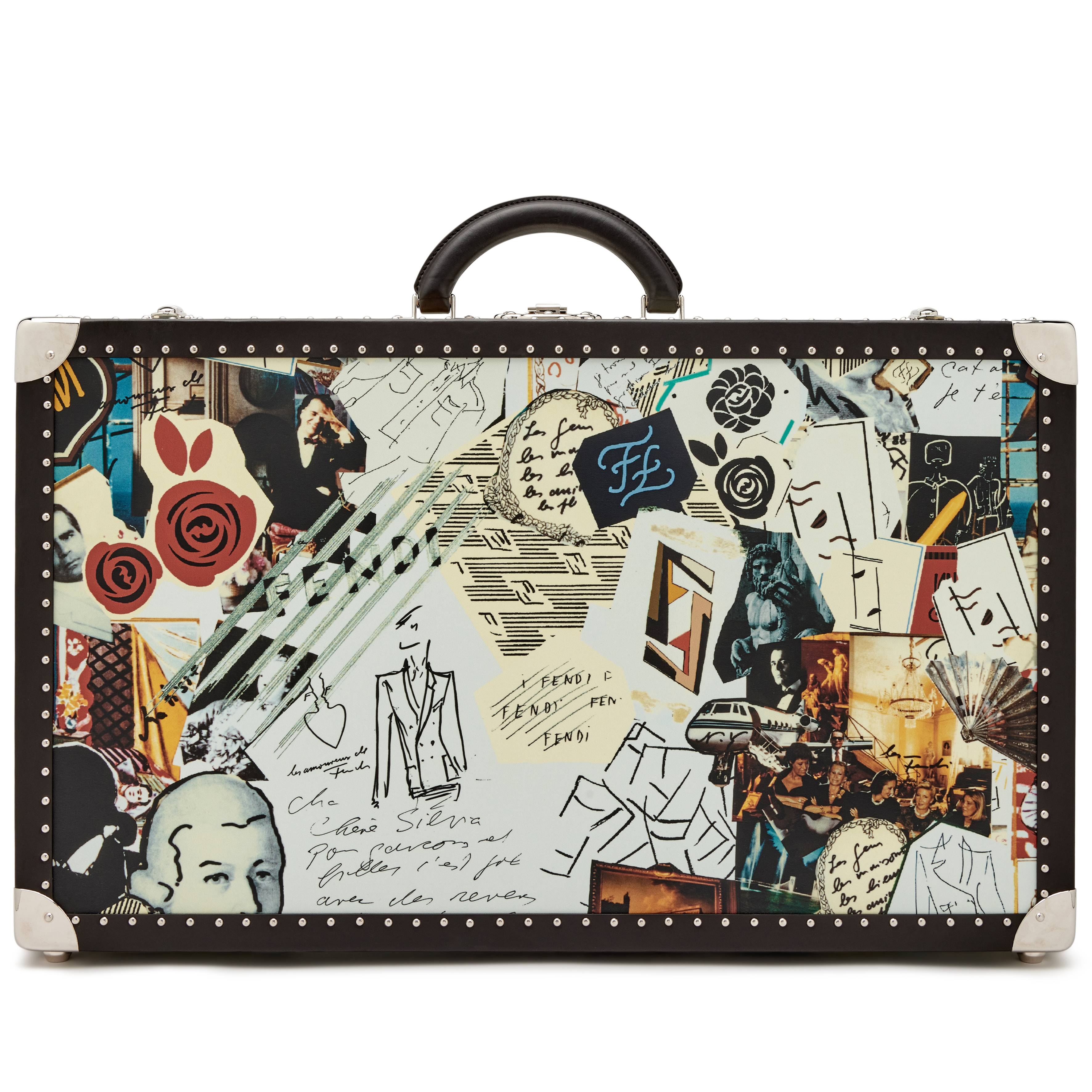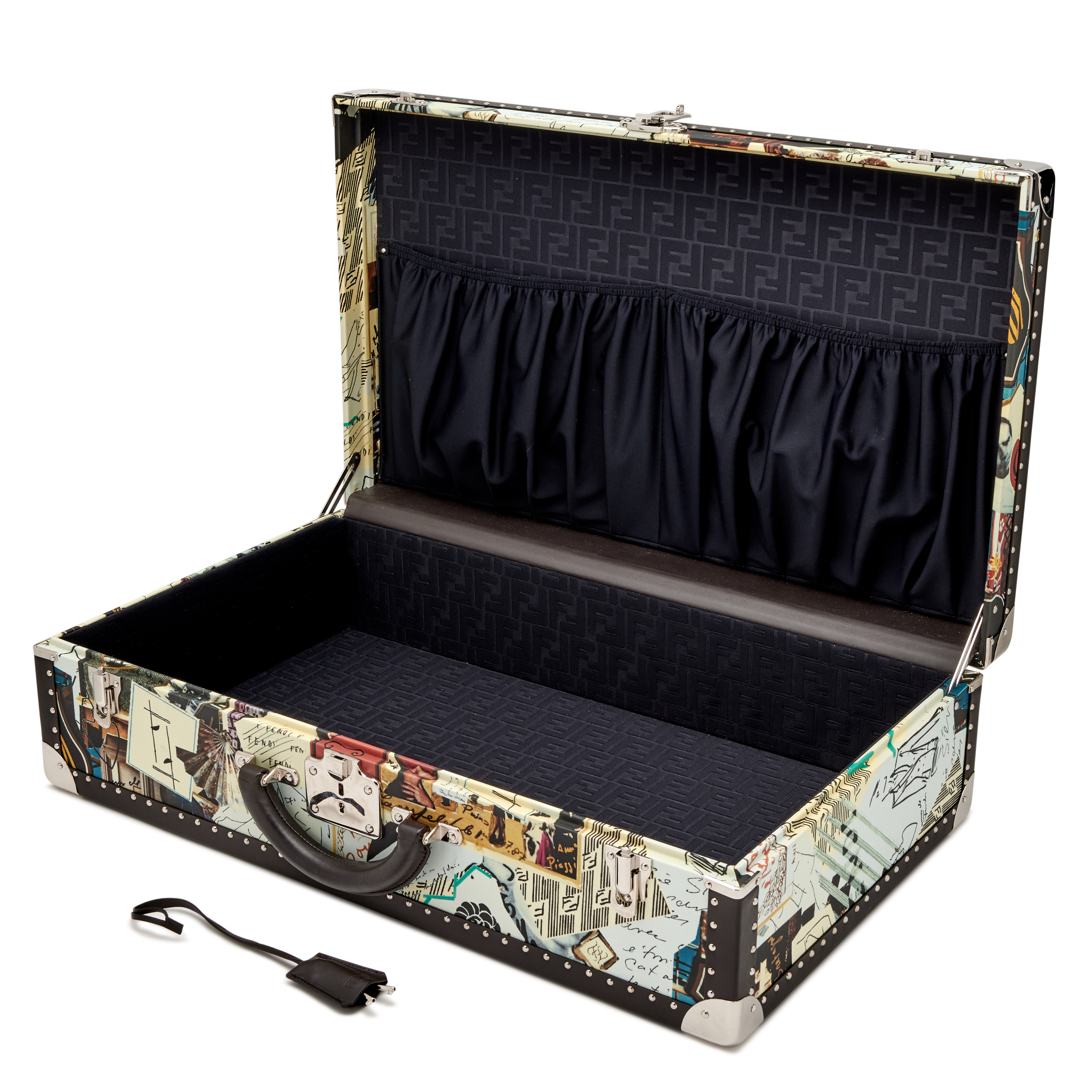 Fendi Multicolor Karl Kollage Travel Trunk Silver Hardware, 2019The interior is lined in a black monogram textileIncludes clochette, care booklet, and dust bagThis item is final sale and not eligible for return