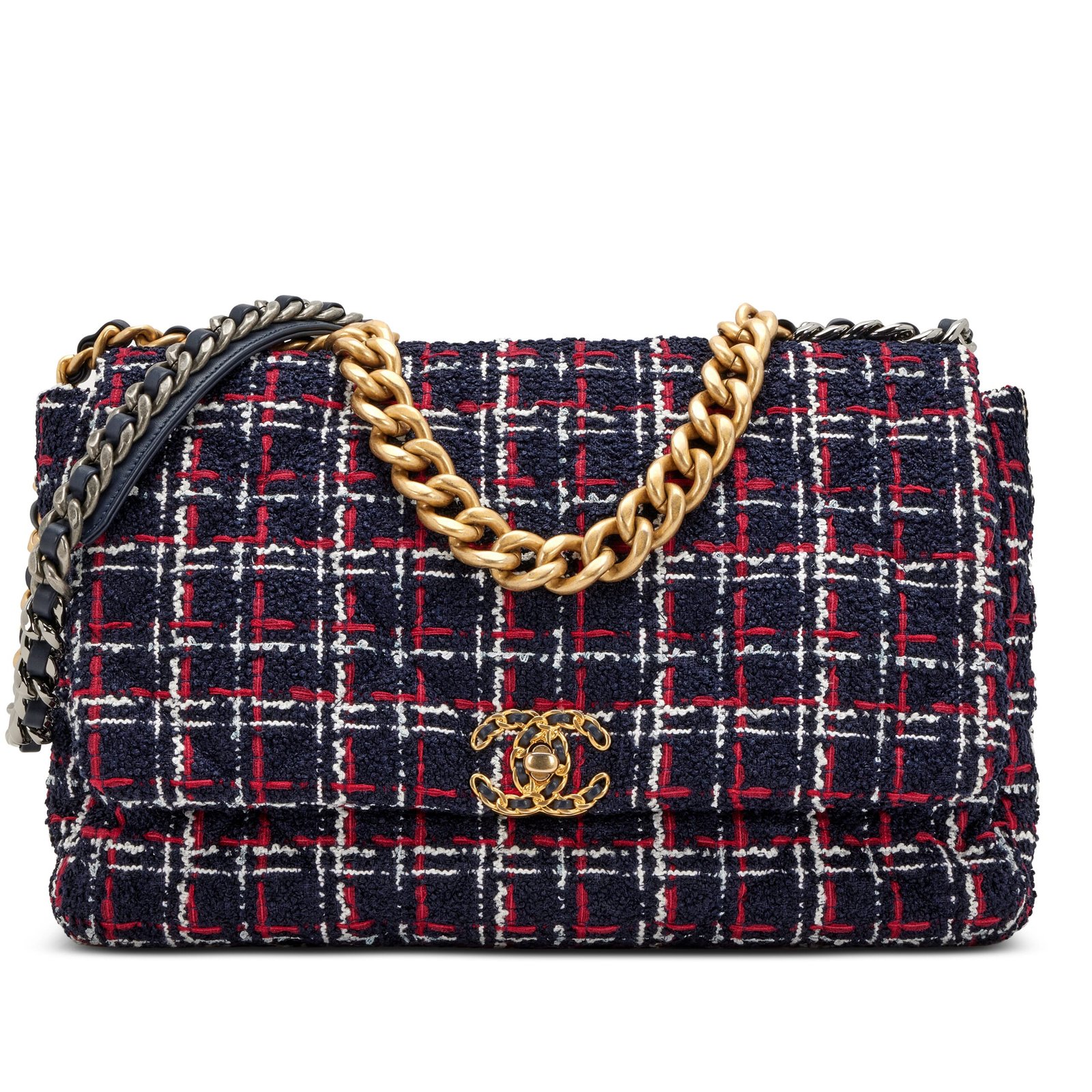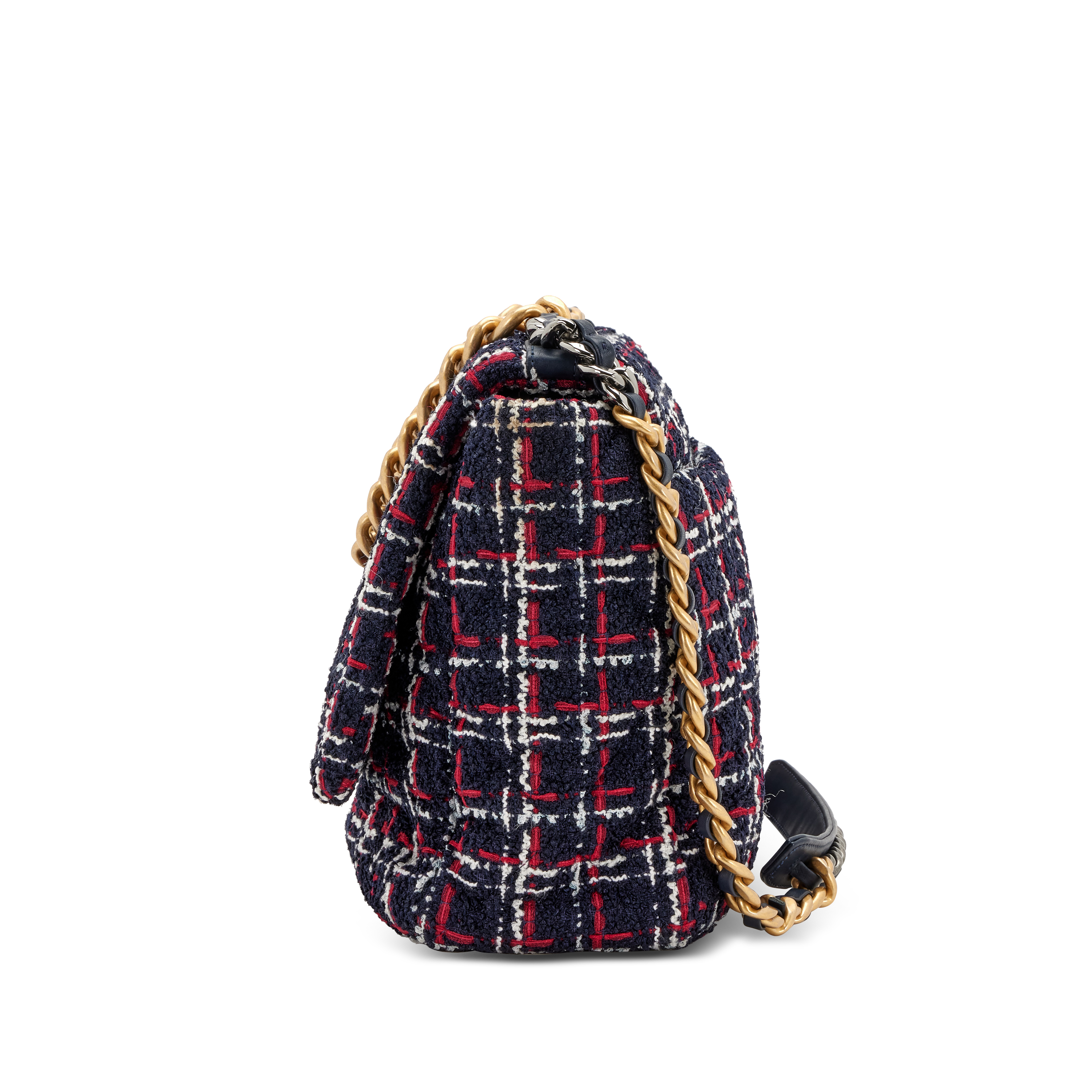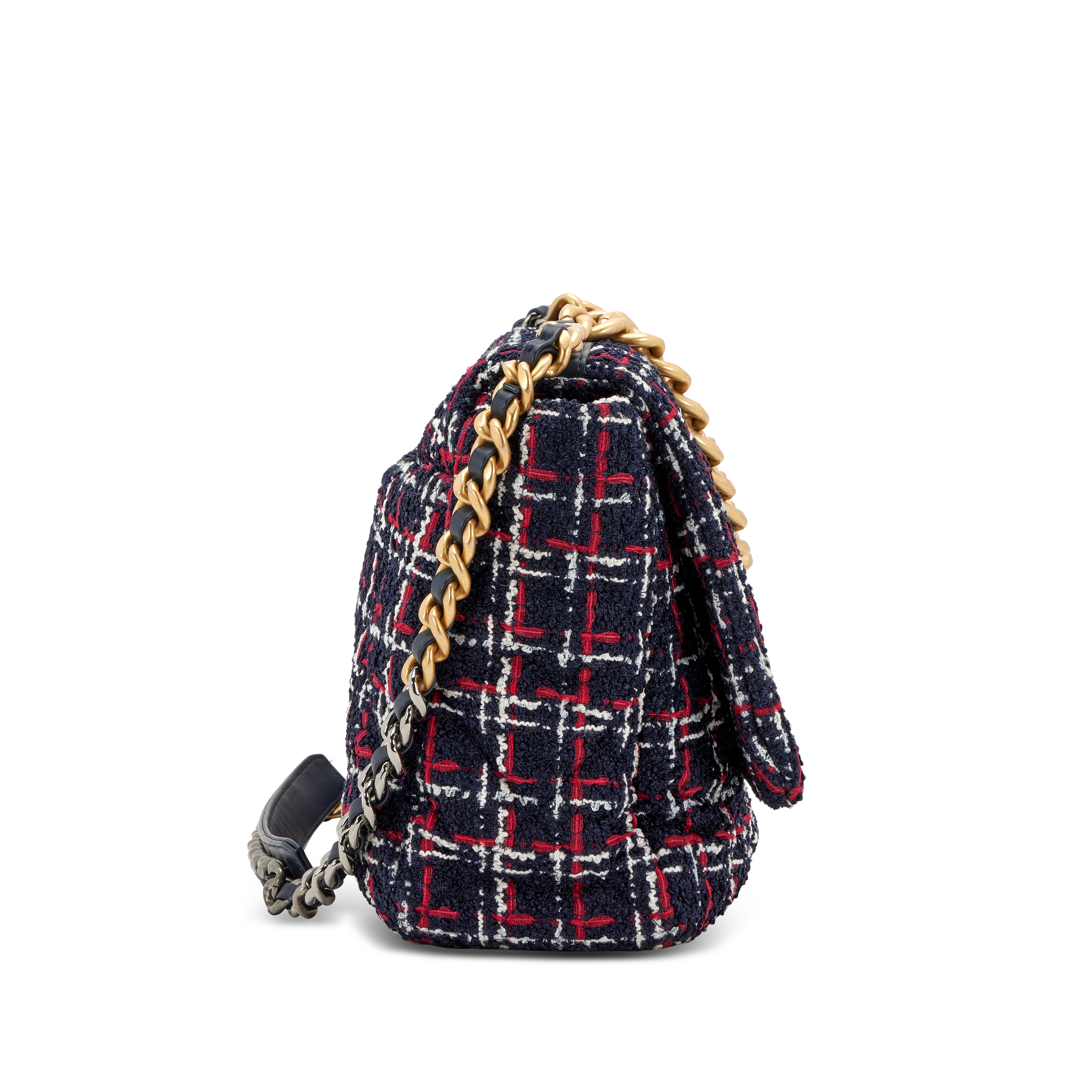 Chanel Multicolor Quilted Tweed Large Chanel 19 Flap Aged Gold, Ruthenium, and Silver Hardware, 2019The interior is lined in a red textile materialAged Gold and Ruthenium finish to hardware is inherent to the designThis item is final sale and not eligible for return