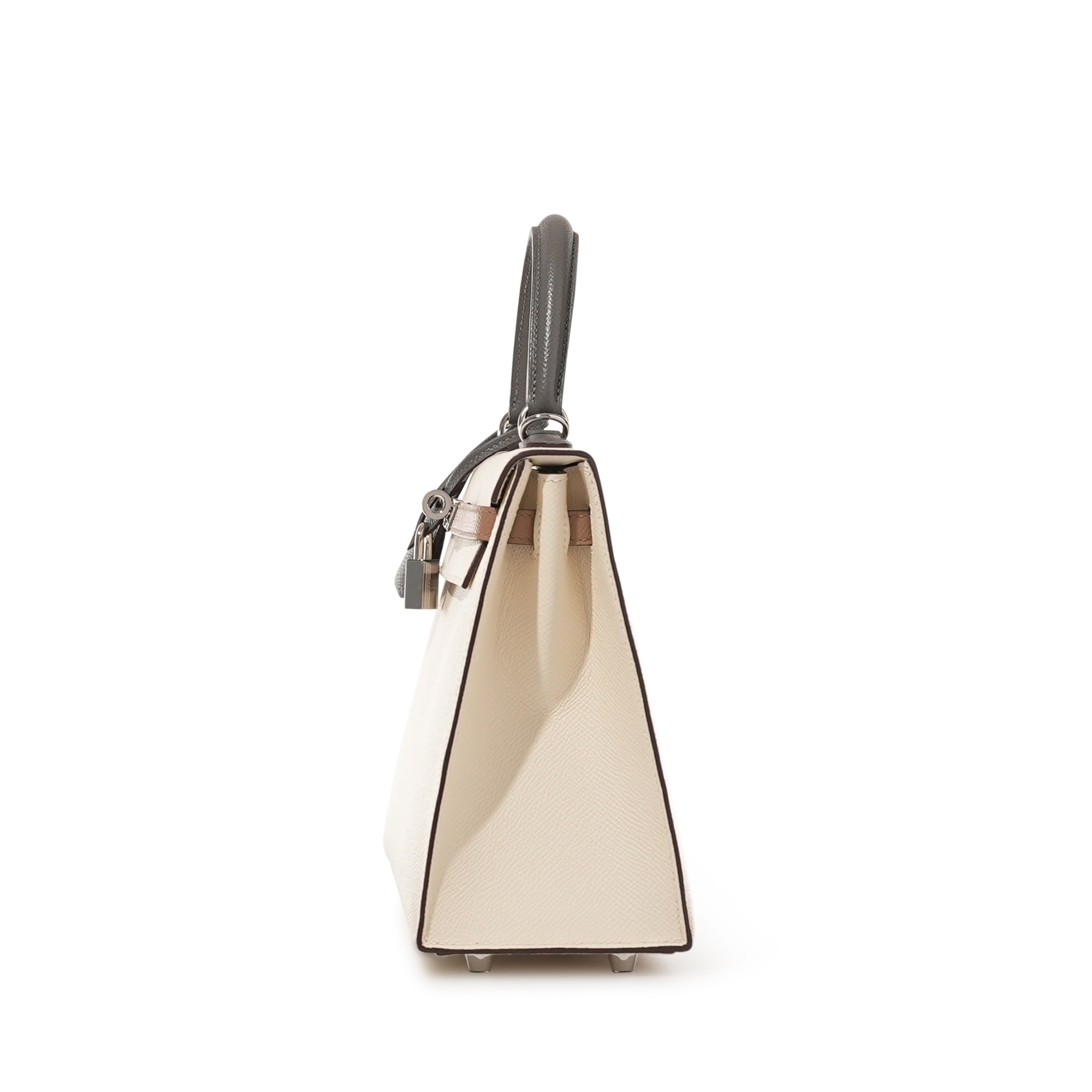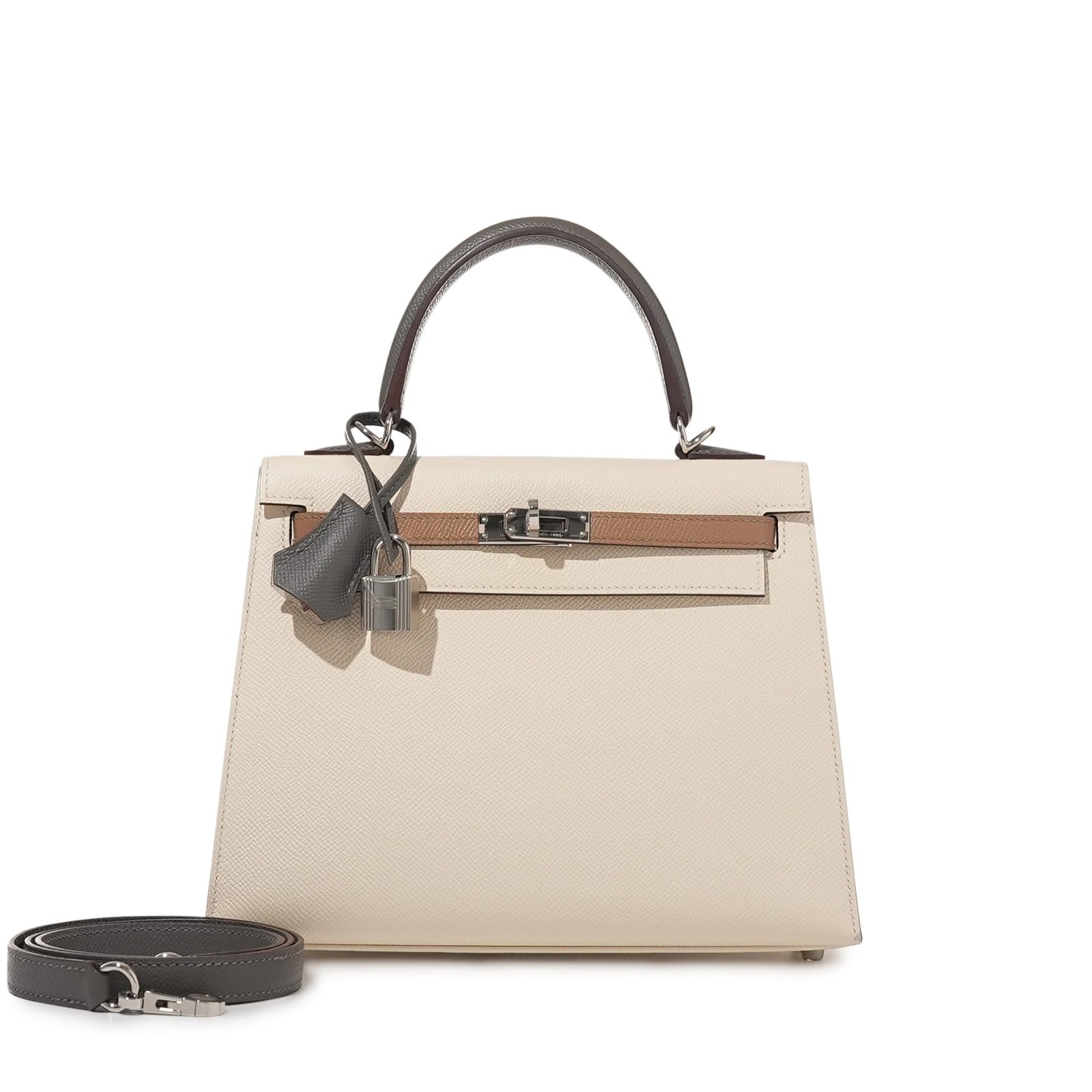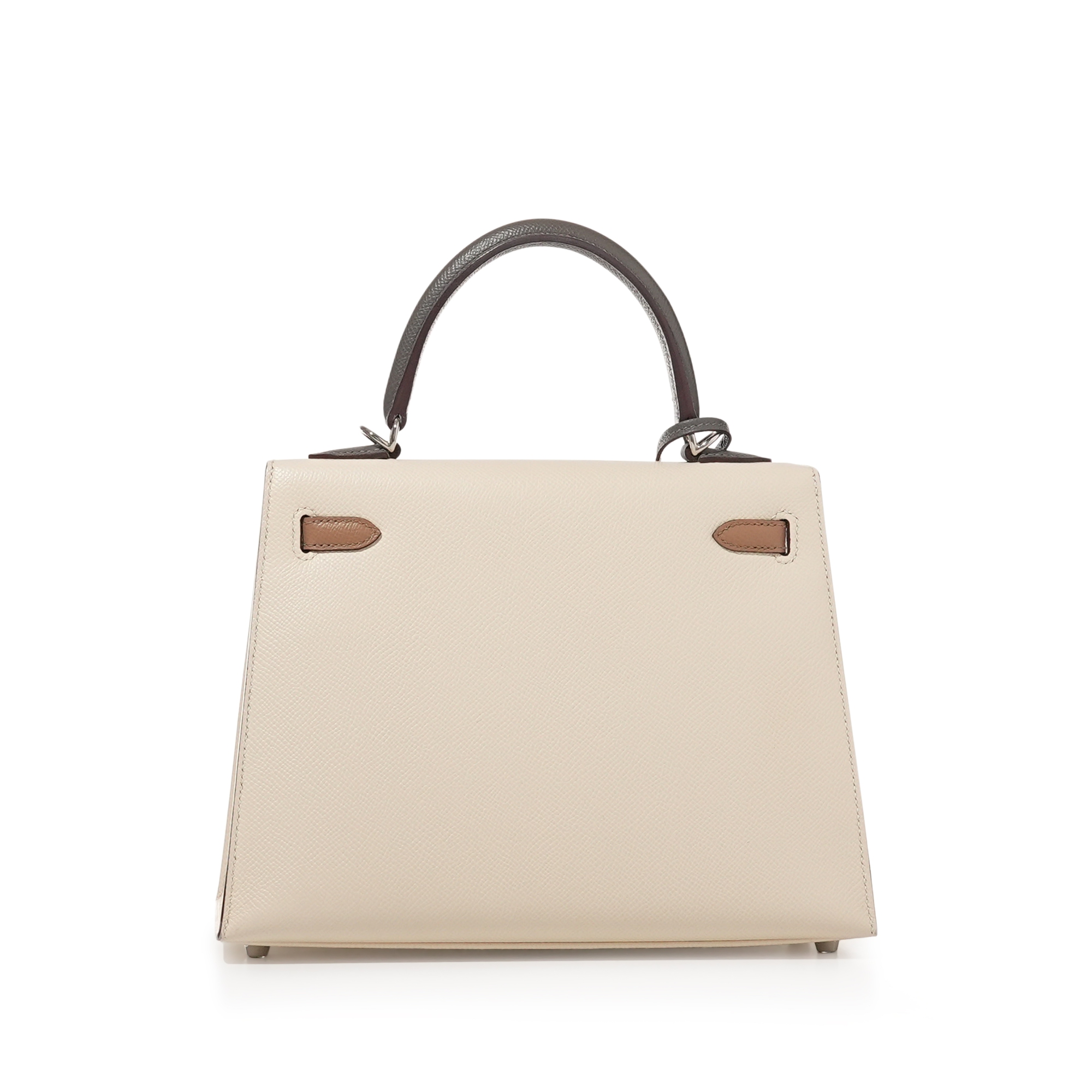 Hermés Nata, Gris Meyer, and Chai Epsom Tri-Color Kelly 25 Sellier Palladium Hardware, 2022