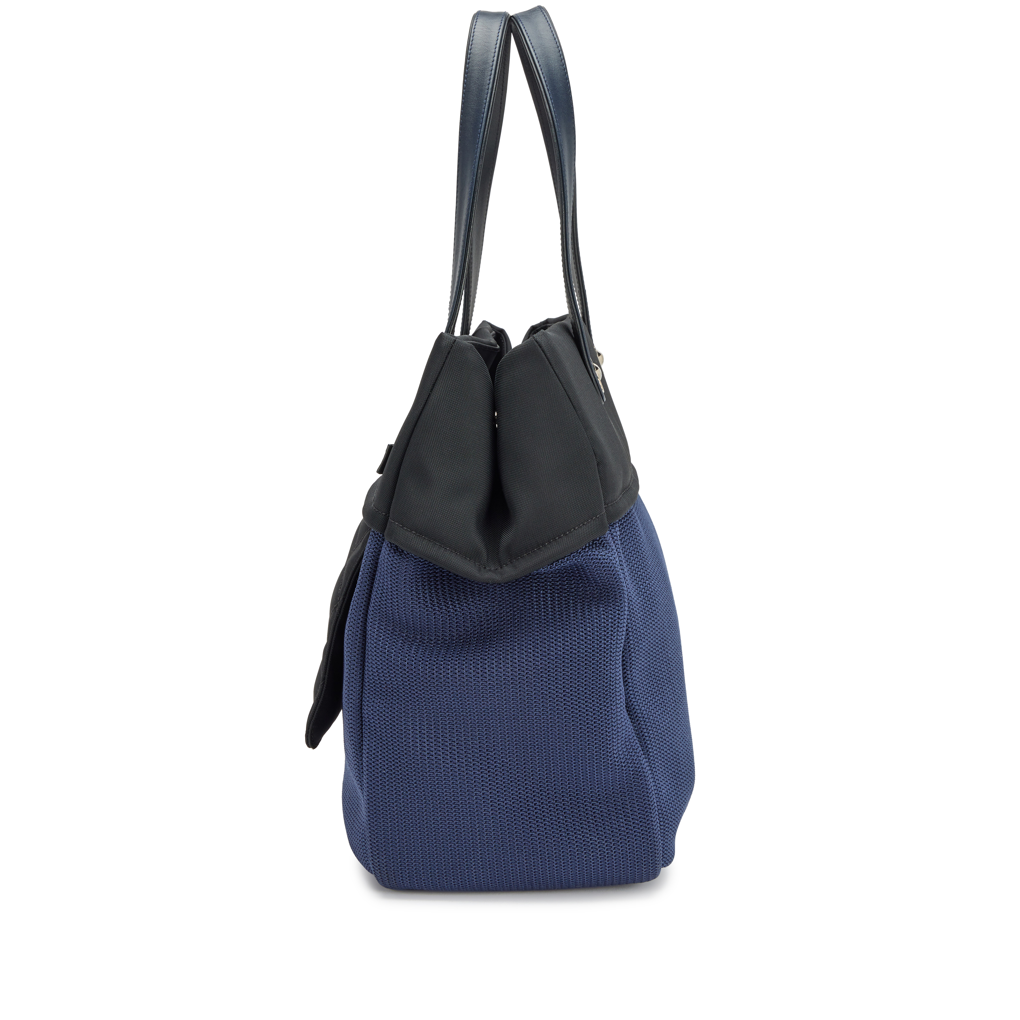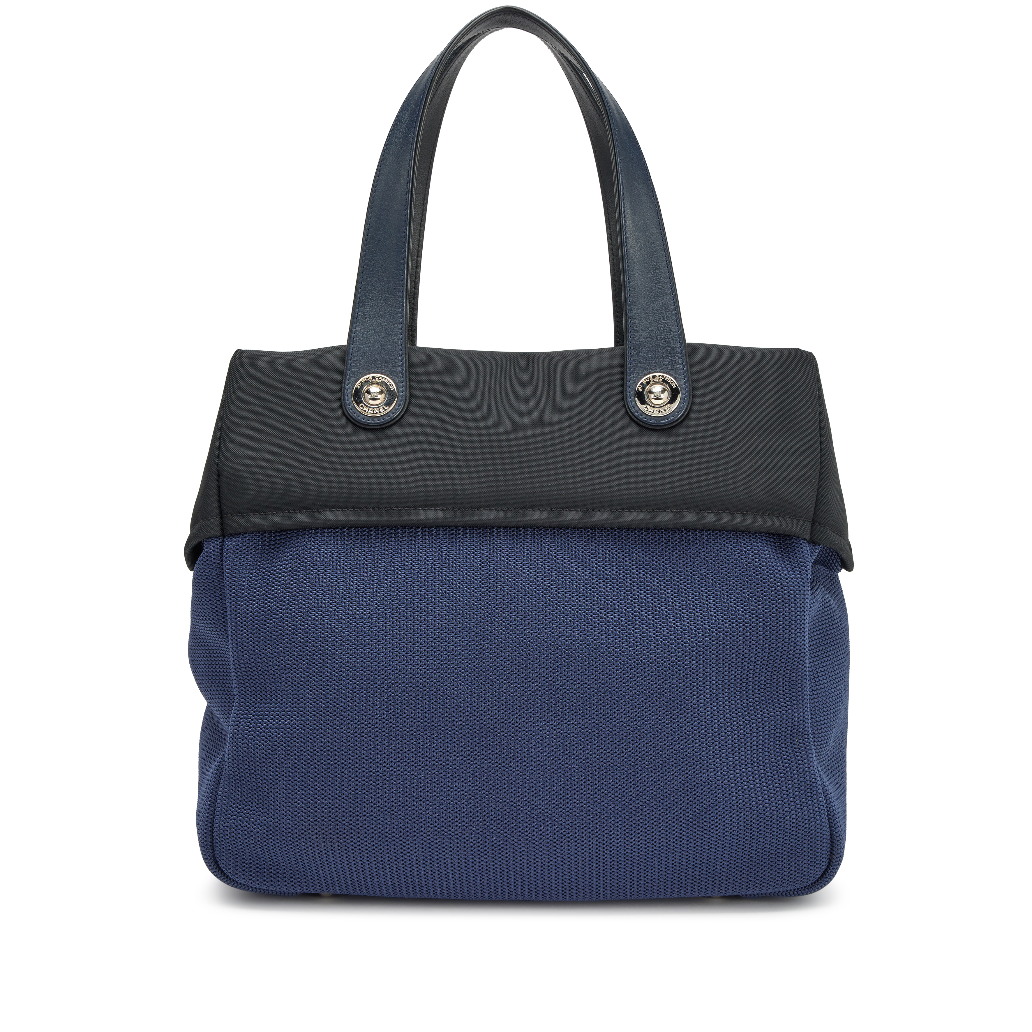 Navy Blue and Black Quilted Rue Cambon Shopping Tote Silver Hardware, 2013-2014