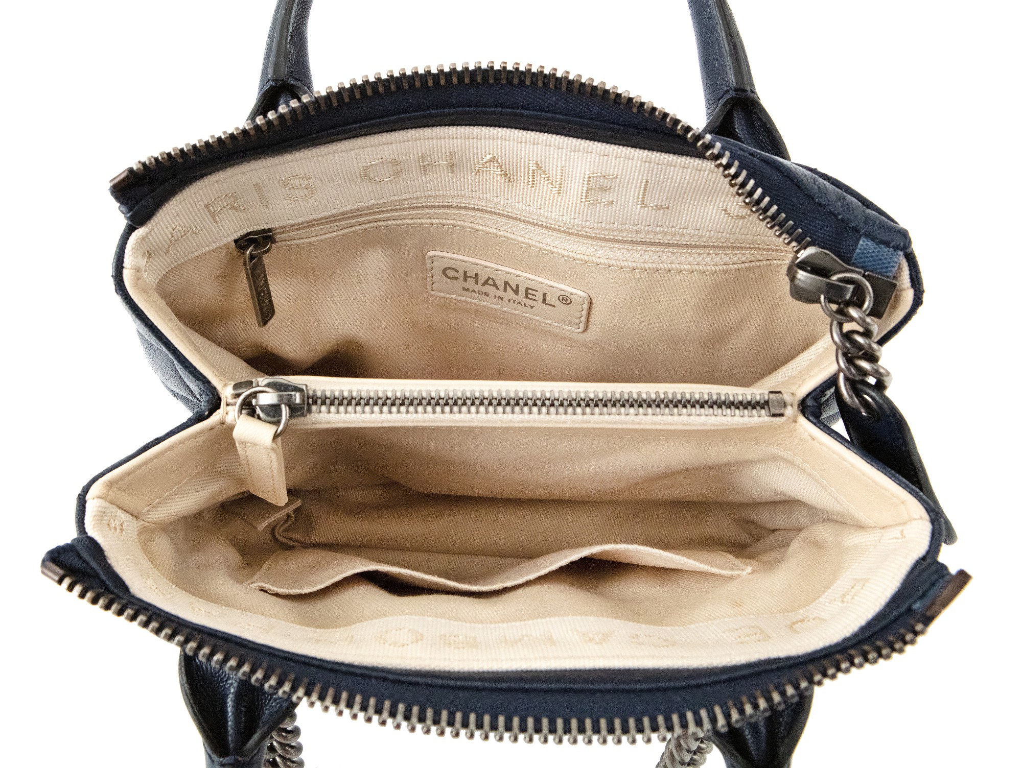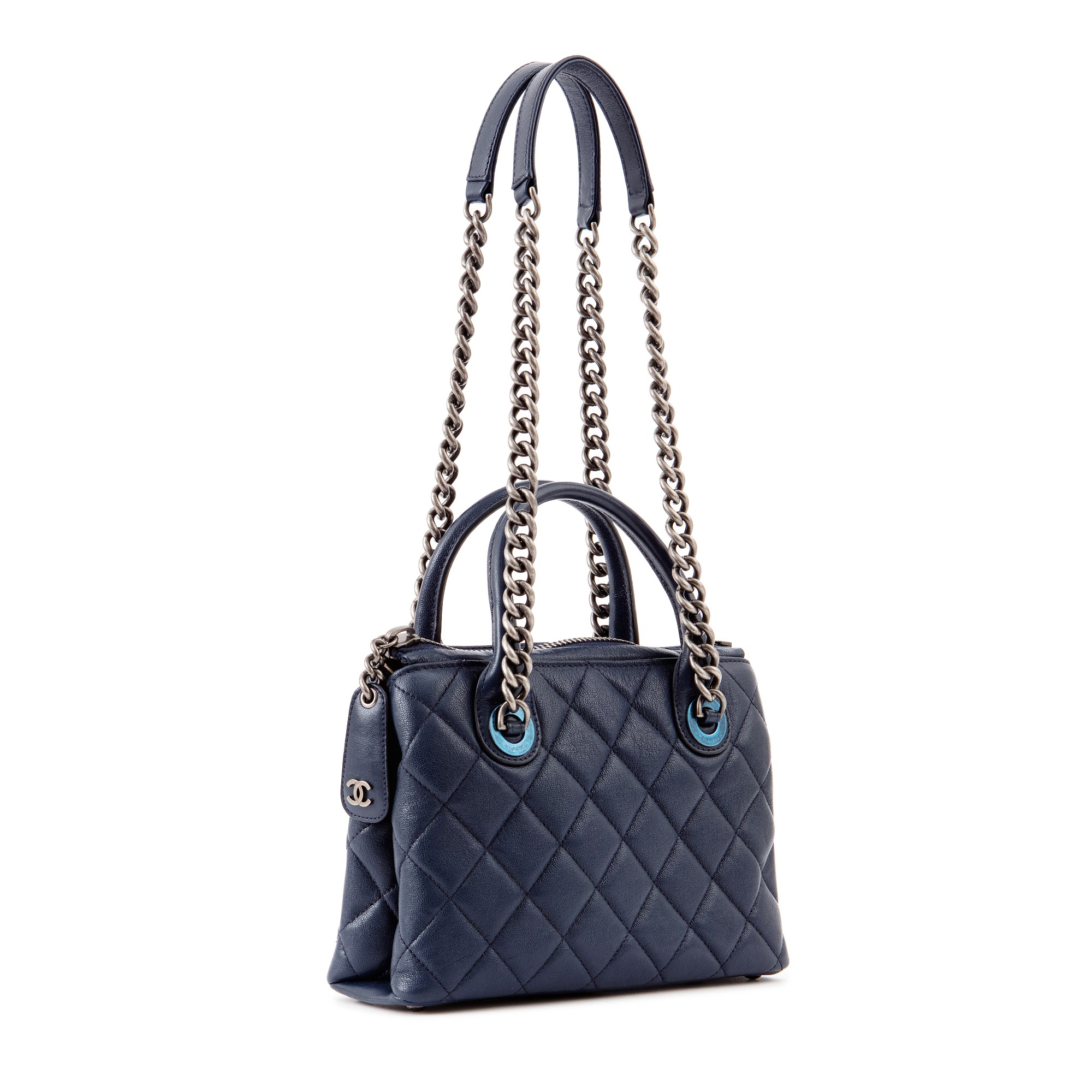 Chanel Navy Quilted Goatskin Leather Small Boy Tote Ruthenium Hardware, 2015The interior is lined in beige textile materialThis piece was featured in the Fall/Winter 2015 Act I collectionIncludes authenticity card and care cardThis item is final sale and not eligible for return